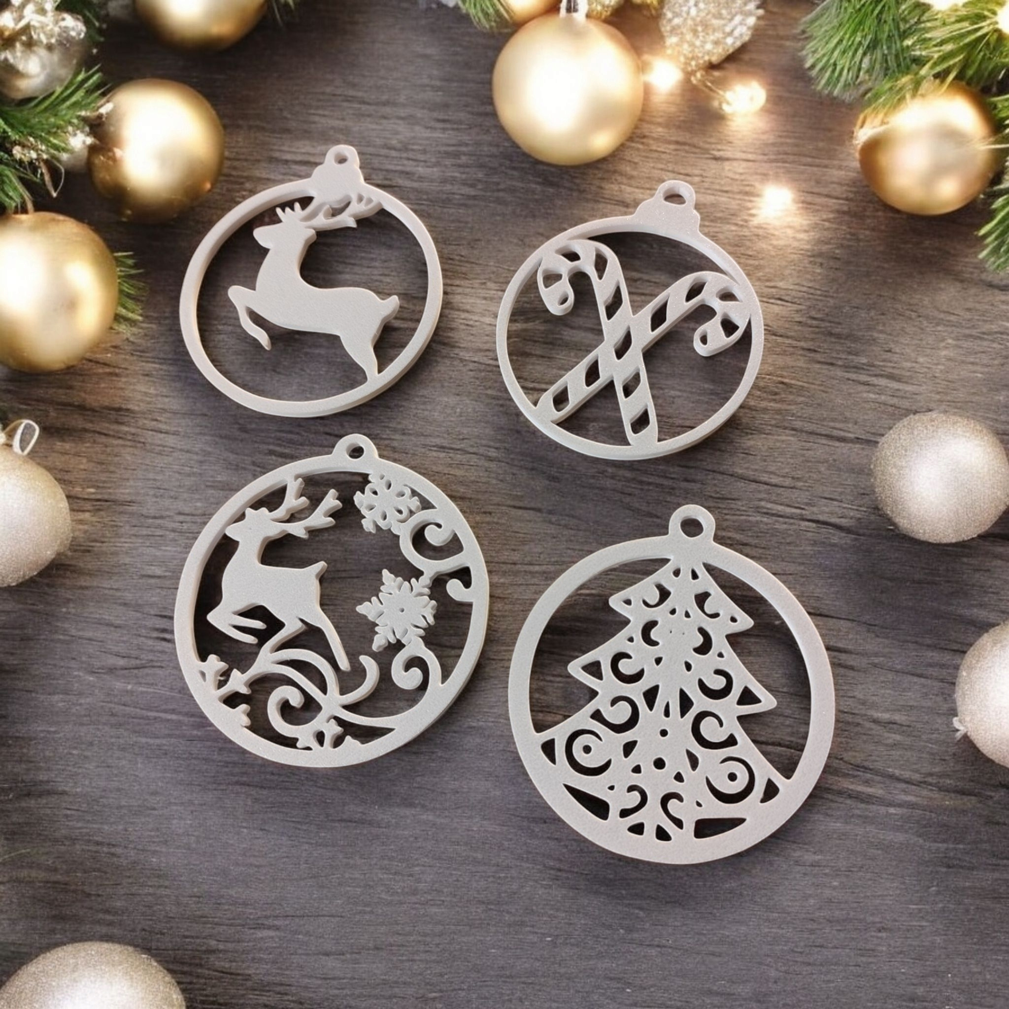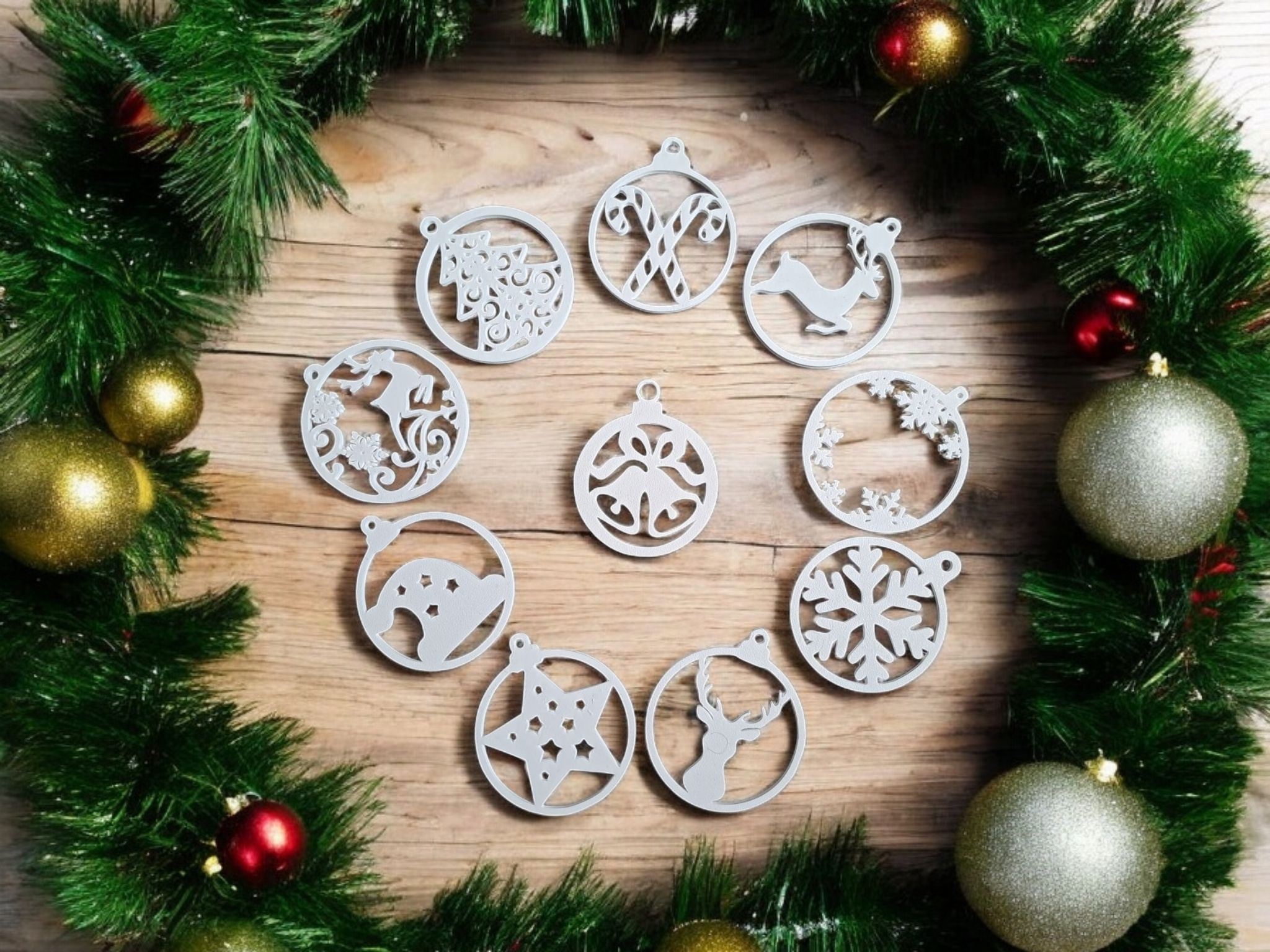 Dieses 10‑teilige Weihnachtsbaum‑Anhänger‑Set bietet eine einfache und stilvolle Möglichkeit, Ihren Baumschmuck zu erneuern. Jeder Anhänger hat einen Durchmesser von Ø80 mm und eine Stärke von 3 mm. Die fertigen, 3D gedruckten Anhänger sind leicht, aber stabil und eignen sich gleichermaßen für Weihnachtsbäume, Kränze, Girlanden oder als dekorative Anhänger an Geschenken. Sie sind sofort einsatzbereit und passen zu handelsüblichen Aufhängehaken oder Bändern. Ein unaufdringliches, vielseitiges Set für eine moderne und stimmige Festdekoration.