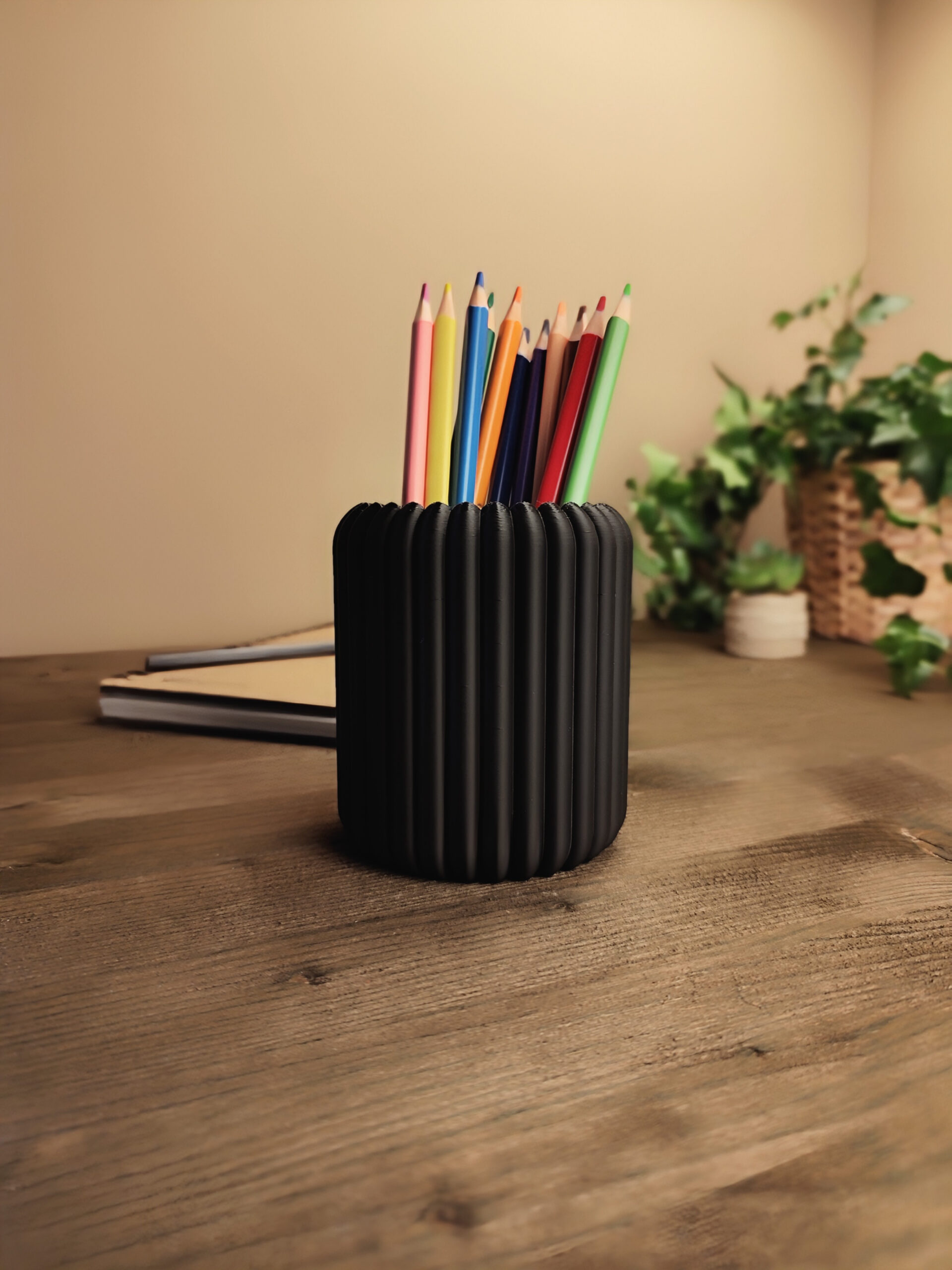 Dieser moderne Stiftehalter zeichnet sich durch ein geripptes Design aus vielen abgerundeten Stegen aus und fügt sich dezent in jeden Schreibtisch ein. Mit einer Höhe von 95 mm und einem Durchmesser von 83 mm bietet er ausreichend Platz für Stifte, Marker, Pinsel und andere Schreibgeräte, bleibt dabei jedoch kompakt und platzsparend. Das stehende Design sorgt für einfachen Zugriff auf Ihre Utensilien. Der Stiftehalter ist pflegeleicht und lässt sich leicht reinigen. Durch seine zeitgemäße Optik eignet er sich sowohl für das Homeoffice als auch für Arbeitsplätze in Büro und Studio. Produktabmessungen: 95 mm (H) × Ø 83 mm.