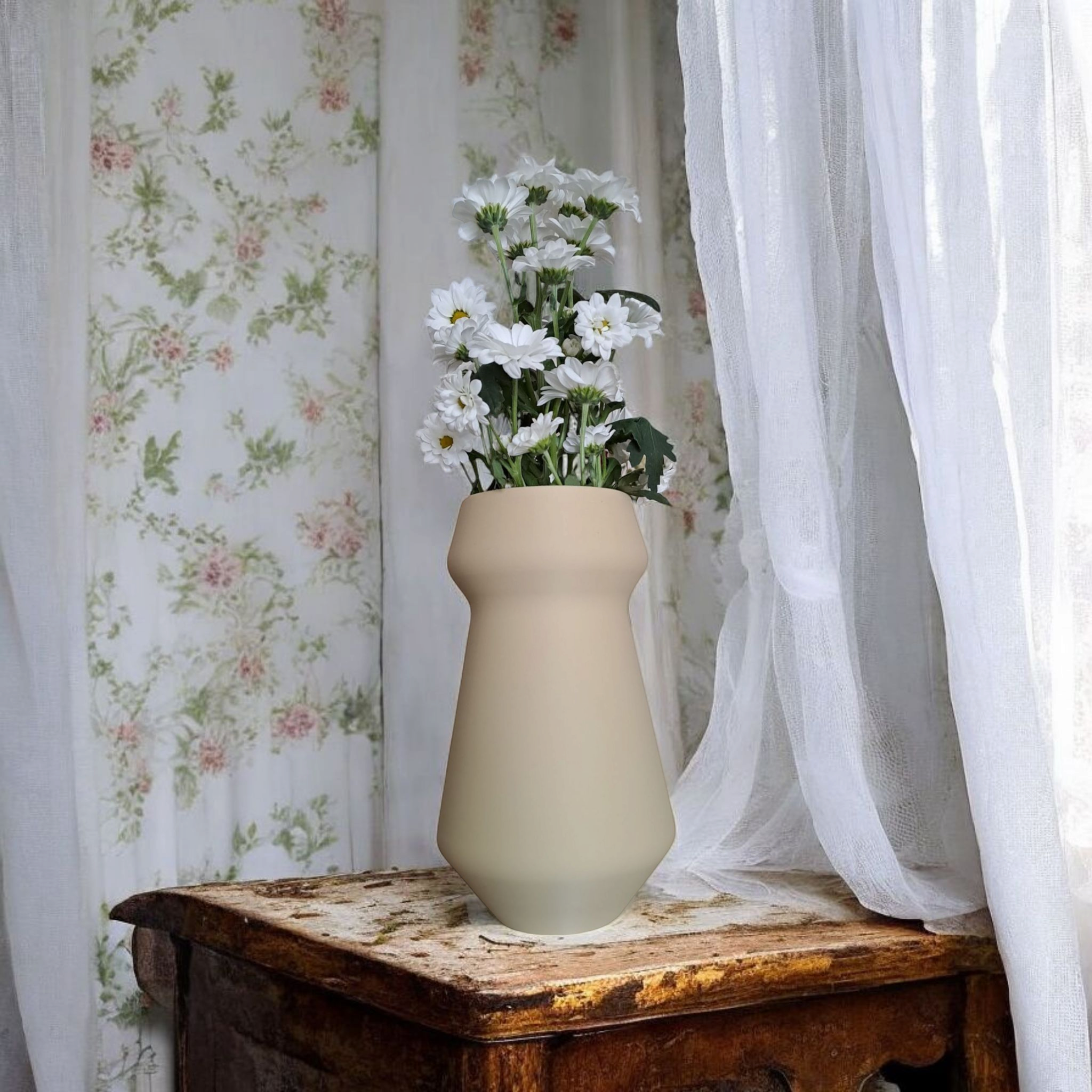 Die Athen Kegelvase besticht durch klare Linien und ausgewogene Proportionen, die an klassische Architektur erinnern. Ihr schlichtes, aber prägnantes Erscheinungsbild fügt sich dezent in mediterrane, skandinavische und minimalistische Einrichtungsstile ein und verleiht jedem Raum eine zurückhaltende Eleganz. In der Größe 200 × 116 × 116 mm ist die Vase perfekt ausbalanciert und eignet sich hervorragend als dekoratives Element auf Regal, Nachttisch oder Sideboard. Ebenso praktisch ist sie als Stiftehalter oder zur Präsentation getrockneter Zweige und Blumen.