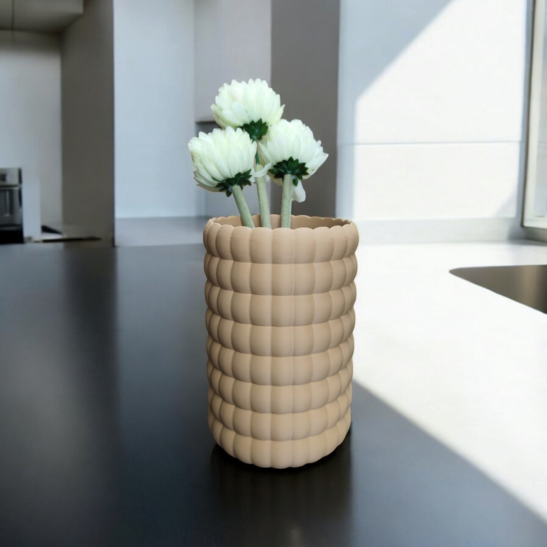 Das „Bubble Bloom“ ist ein dekoratives, 3D gedrucktes Deko‑Objekt, das skandinavische Schlichtheit mit einem Hauch Boho‑Charme verbindet. Die markante, kugelige Oberfläche erzeugt einen attraktiven 3D‑Effekt und setzt in Regal, Sideboard oder auf dem Fensterbrett stilvolle Akzente.