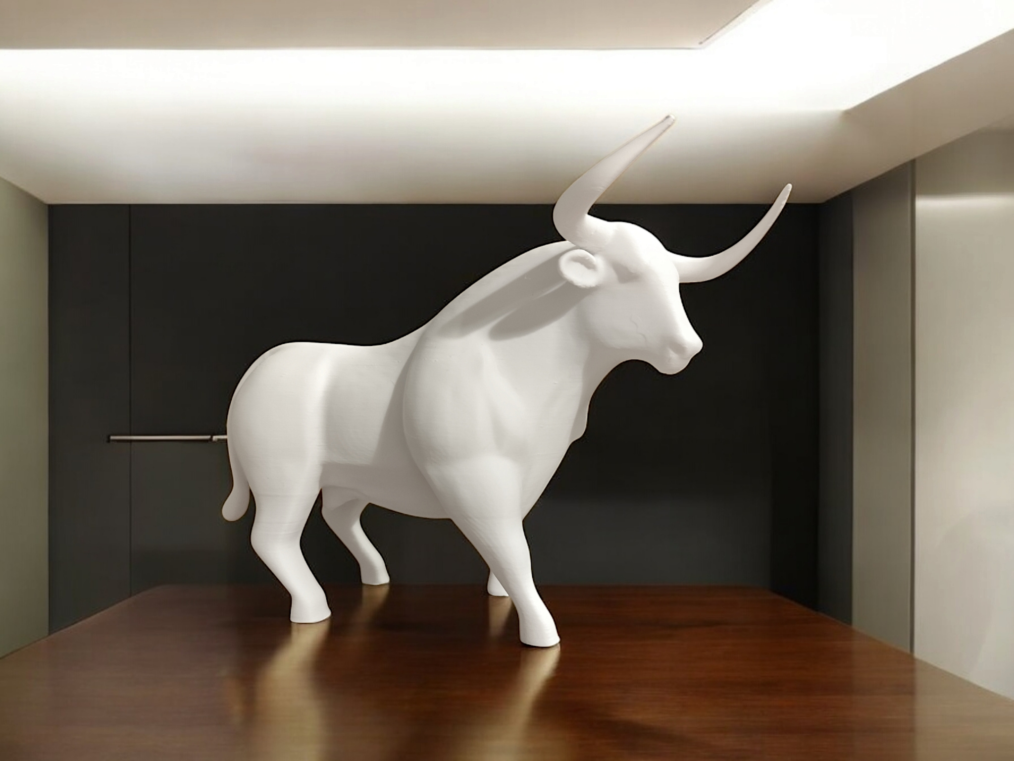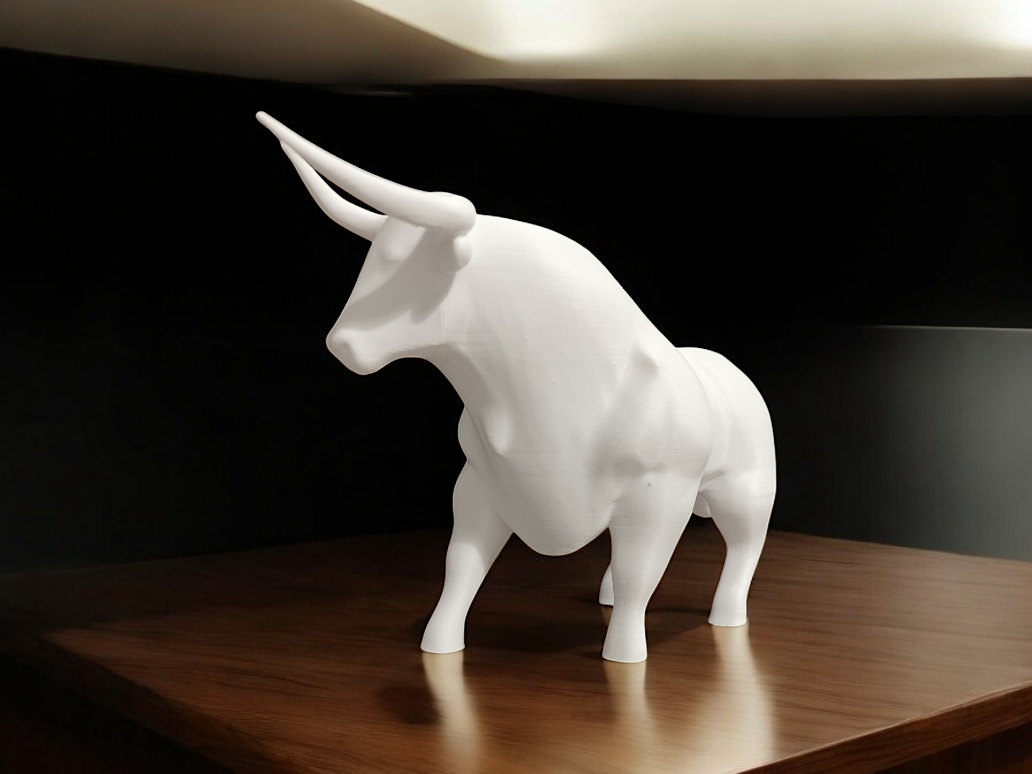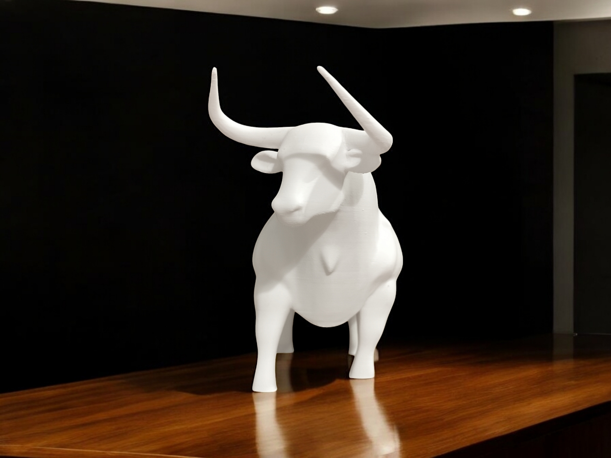 Diese dekorative Stier-Skulptur wurde im FDM 3D-Druckverfahren gefertigt und als fertiges Objekt geliefert. Die Standardabmessungen betragen 151 × 117 × 81 mm, sodass sie sich gut auf Regalen, Sideboards oder Schreibtischen platzieren lässt. Gedruckt wurde weißes PLA-Filament (Farbe wie auf Produktbild).