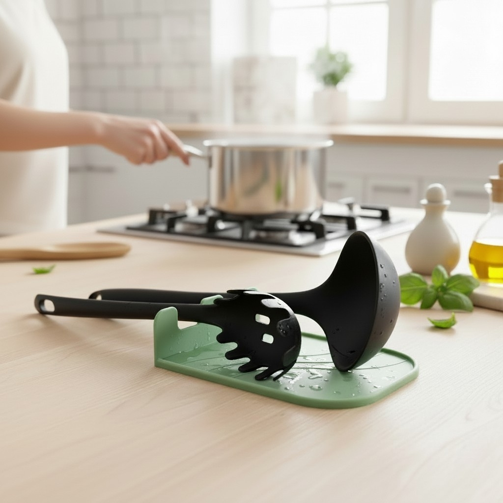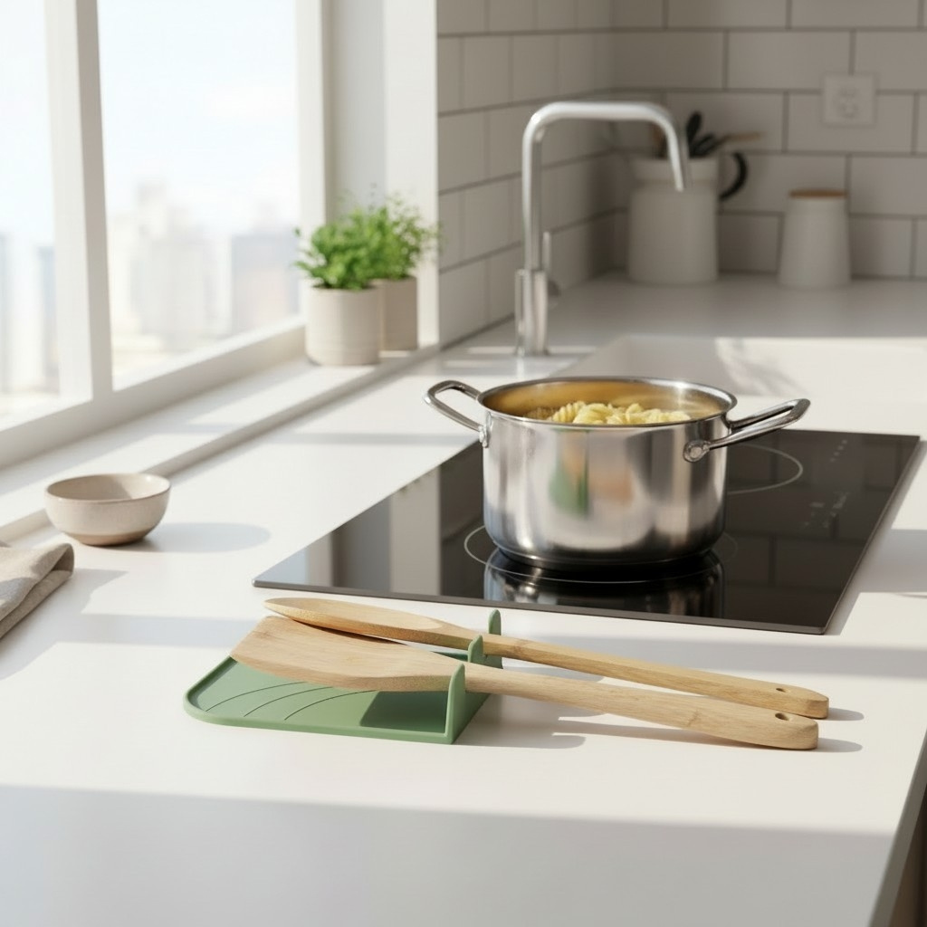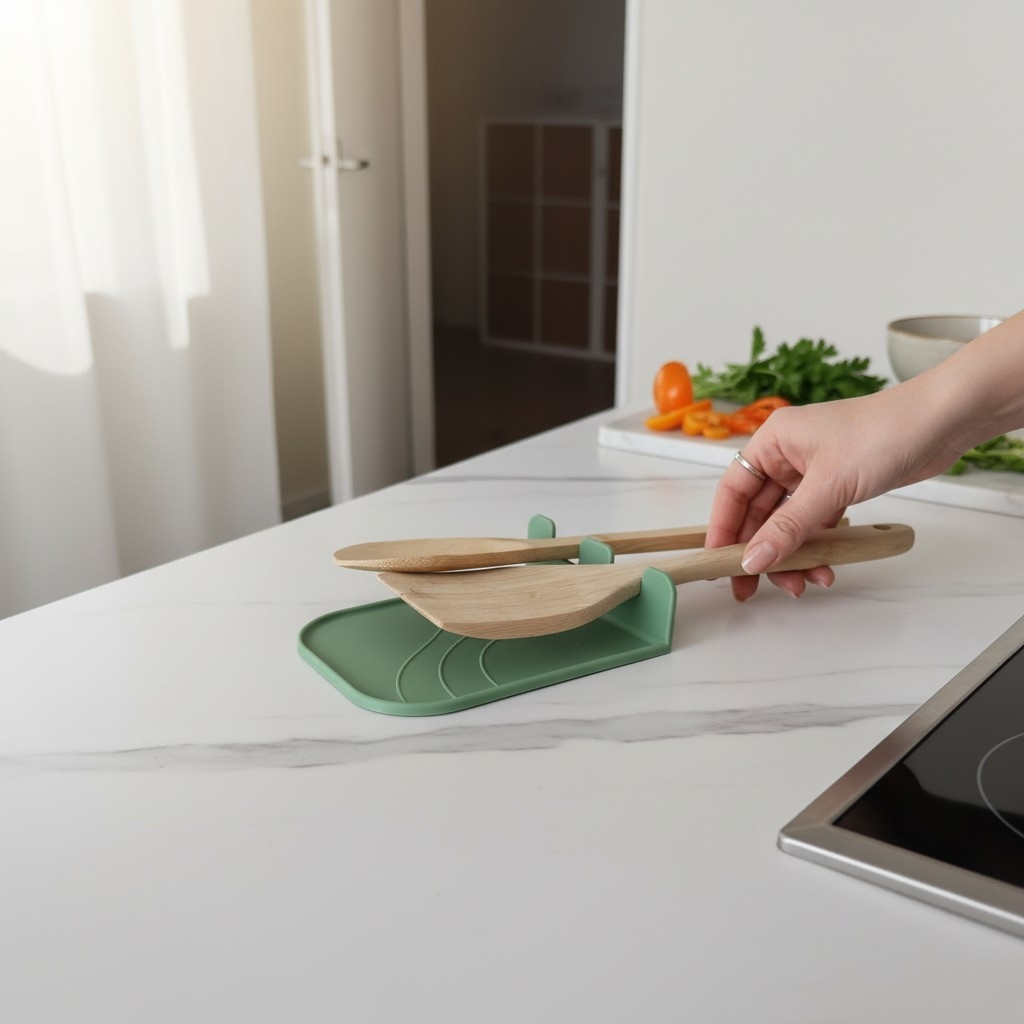 Ideal zum kurzfristigen Ablegen von Kochlöffeln, Pfannenwendern oder Schneebesen während des Kochens. Ein einfaches, praktisches und intuitives Küchenhilfsmittel, das Ordnung am Herd schafft.