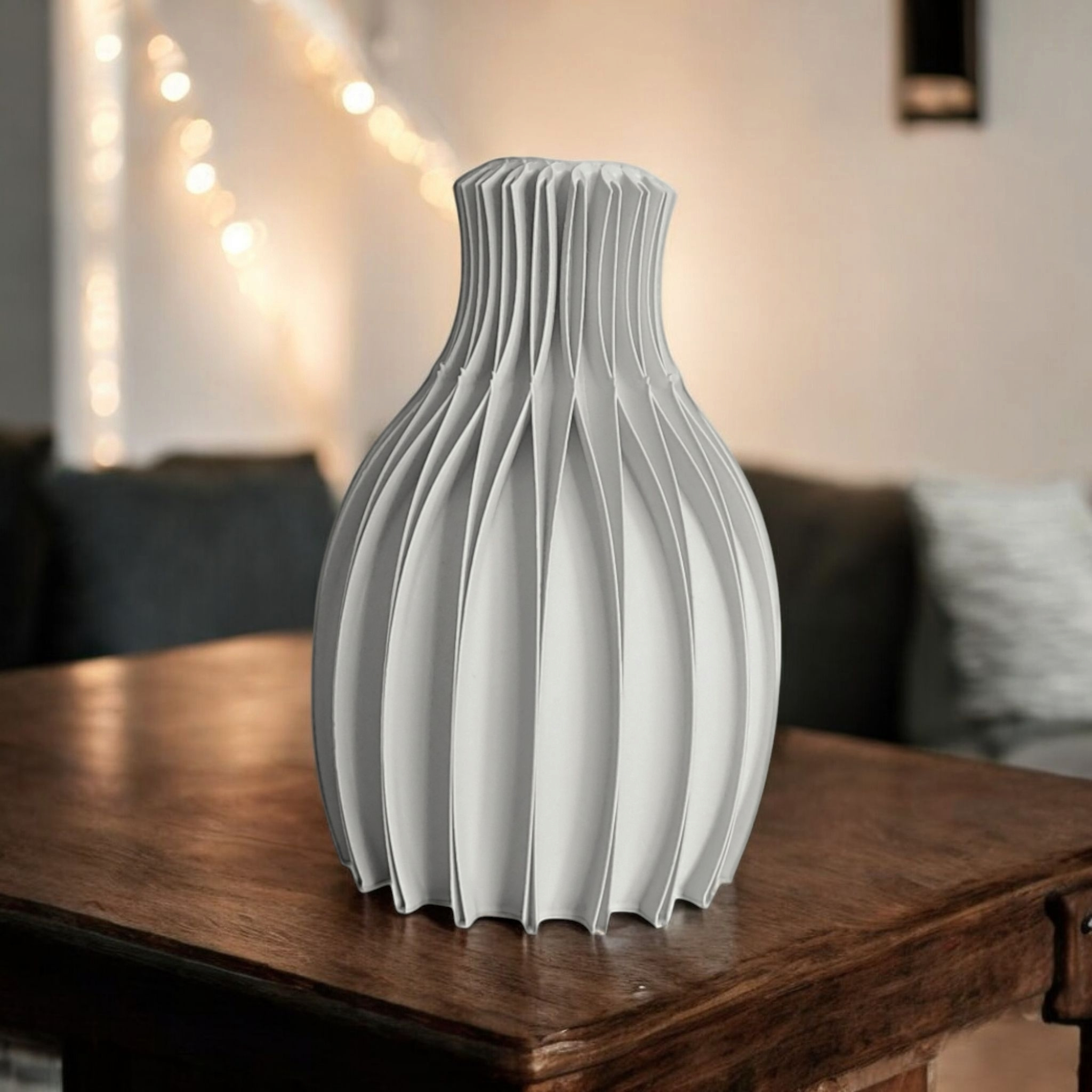 FDM-Hinweis: Die Vase wurde im FDM 3D‑Druck hergestellt. Dadurch sind feine Schichtrückstände, minimale Unebenheiten oder kleine Oberflächenunterschiede möglich. Diese typischen Merkmale sind kein Reklamationsgrund, sondern Ausdruck des Herstellungsverfahrens.