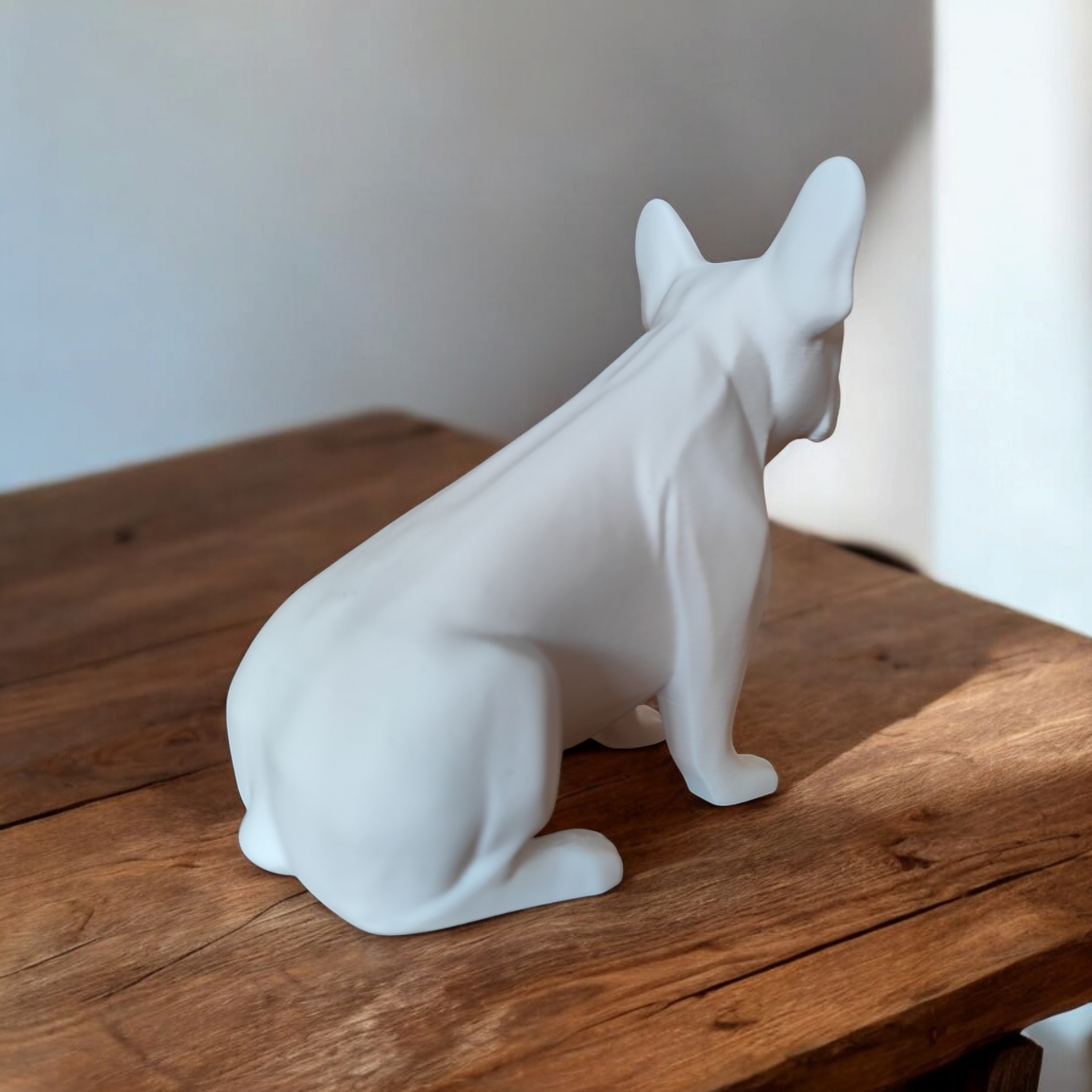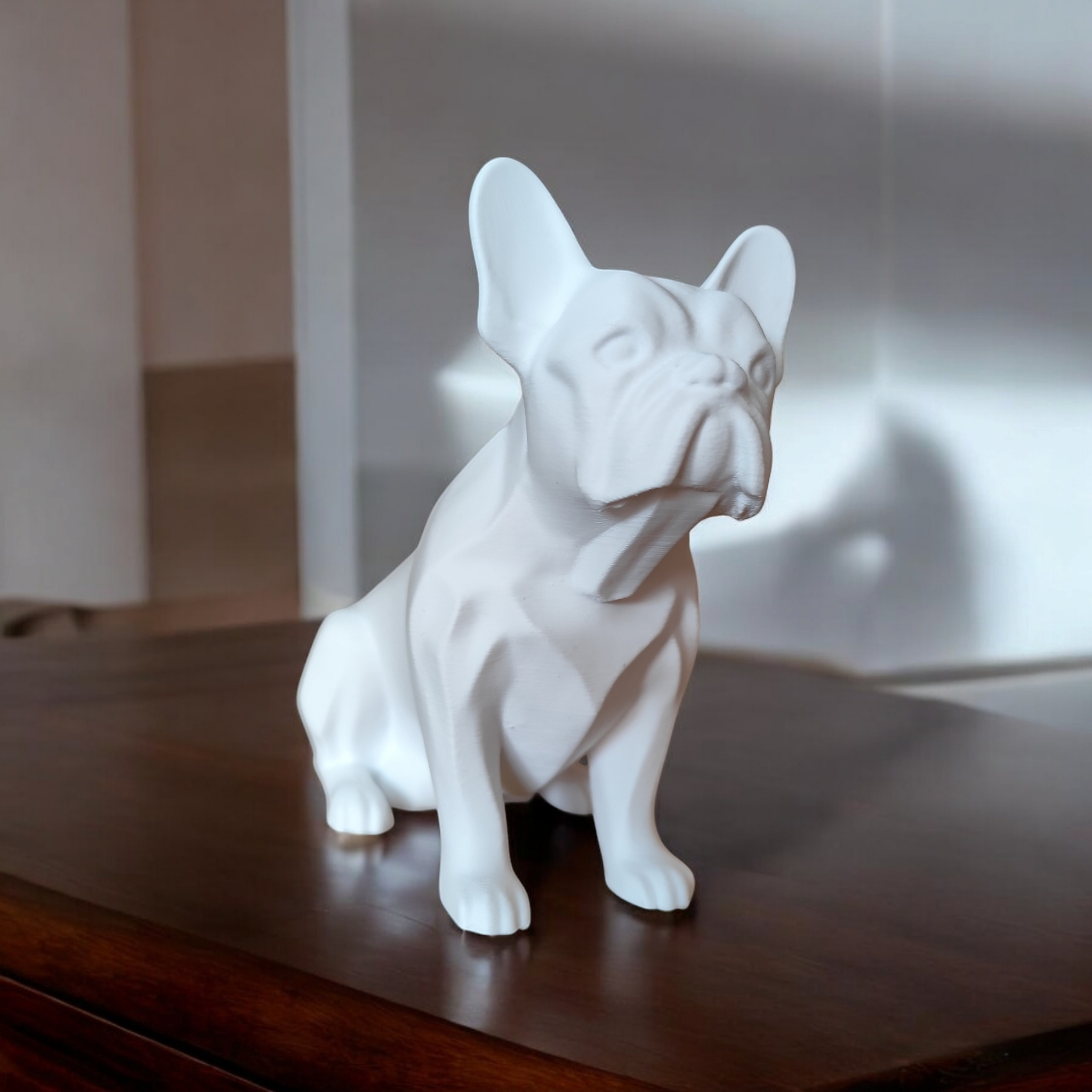 Diese Skulptur einer Französischen Bulldogge vereint minimalistisches Design mit einem dezenten, lebendigen Ausdruck. Die reduzierten Formen betonen die charakteristische Silhouette, sodass die Figur elegant wirkt und sich unaufdringlich in moderne Einrichtungen einfügt.