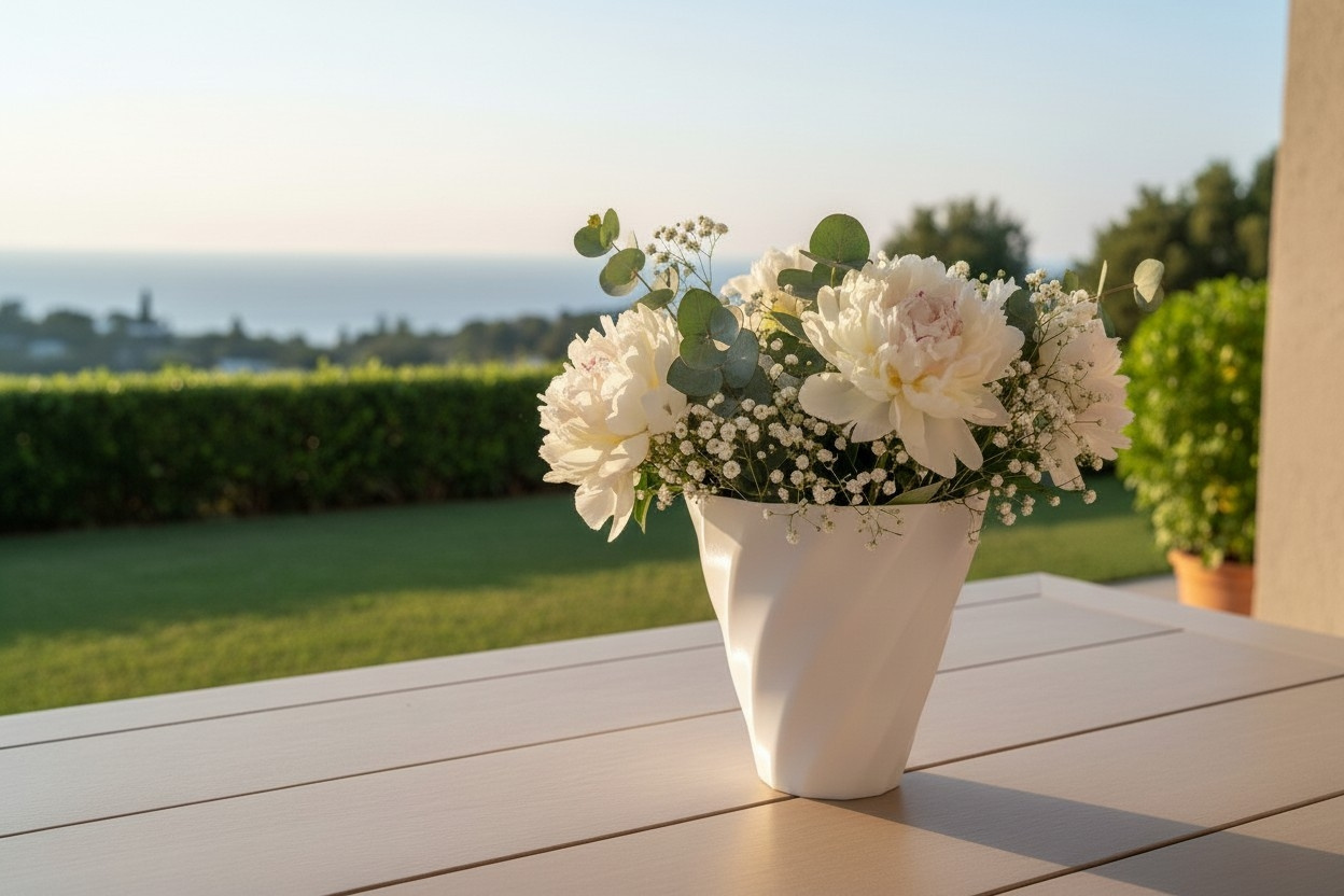 – Beispiele auf den Produktfotos wurden in PET (weiß) bzw. PLA (latte-braun) gedruckt. Die tatsächliche Farbe des angebotenen Produkts entnehmen Sie bitte den Bildern. PET ist gegenüber Witterung und UV-Licht etwas beständiger; PLA kann bei direkter Sonneneinstrahlung und hoher Hitze weicher werden – daher empfehlen wir, die Vase vor starker UV-Einstrahlung und hohen Temperaturen zu schützen.