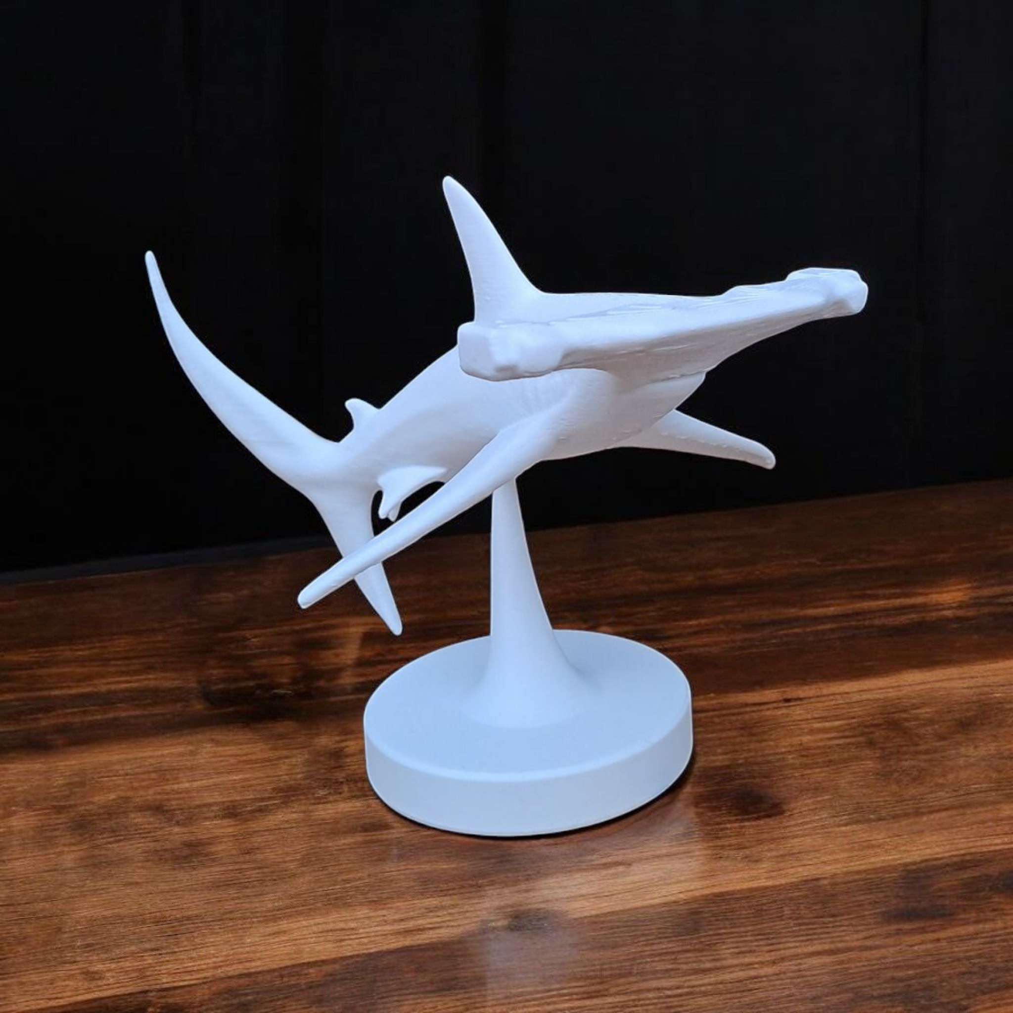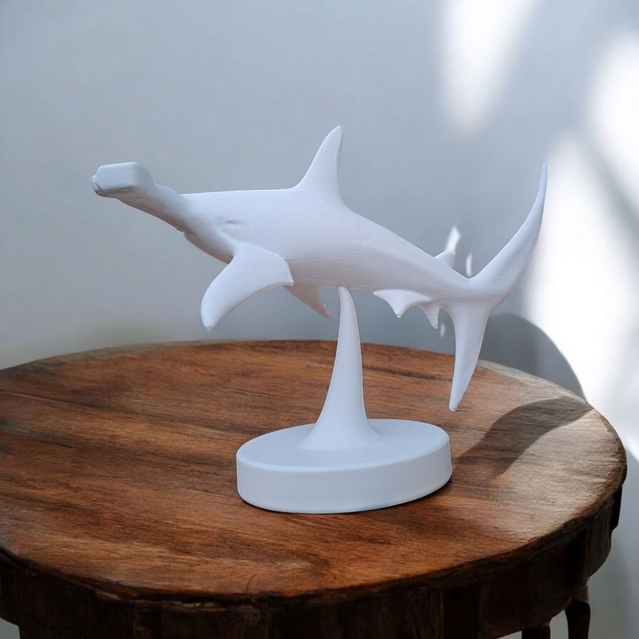 Diese detailreiche Hammerhai‑Skulptur wurde im FDM‑3D‑Druck gefertigt und fängt die geschwungene, schwerelose Schwimmhaltung des Tieres ein. Ausgearbeitete Kiemen und fein modellierte Flossen betonen die organische Form und verleihen dem Dekorobjekt eine naturgetreue Wirkung. Das fertige Produkt hat die Abmessungen 190 × 151 × 154 mm und wird als gebrauchsfertige Skulptur geliefert. Die dargestellte Farbe entnehmen Sie bitte den Produktbildern. Hinweis: Durch das FDM‑Druckverfahren können feine Schichtlinien oder kleine Unregelmäßigkeiten entstehen; dies ist verfahrensbedingt und kein Reklamationsgrund. Ideal als maritime Dekoration für Wohnraum, Büro oder Vitrine.