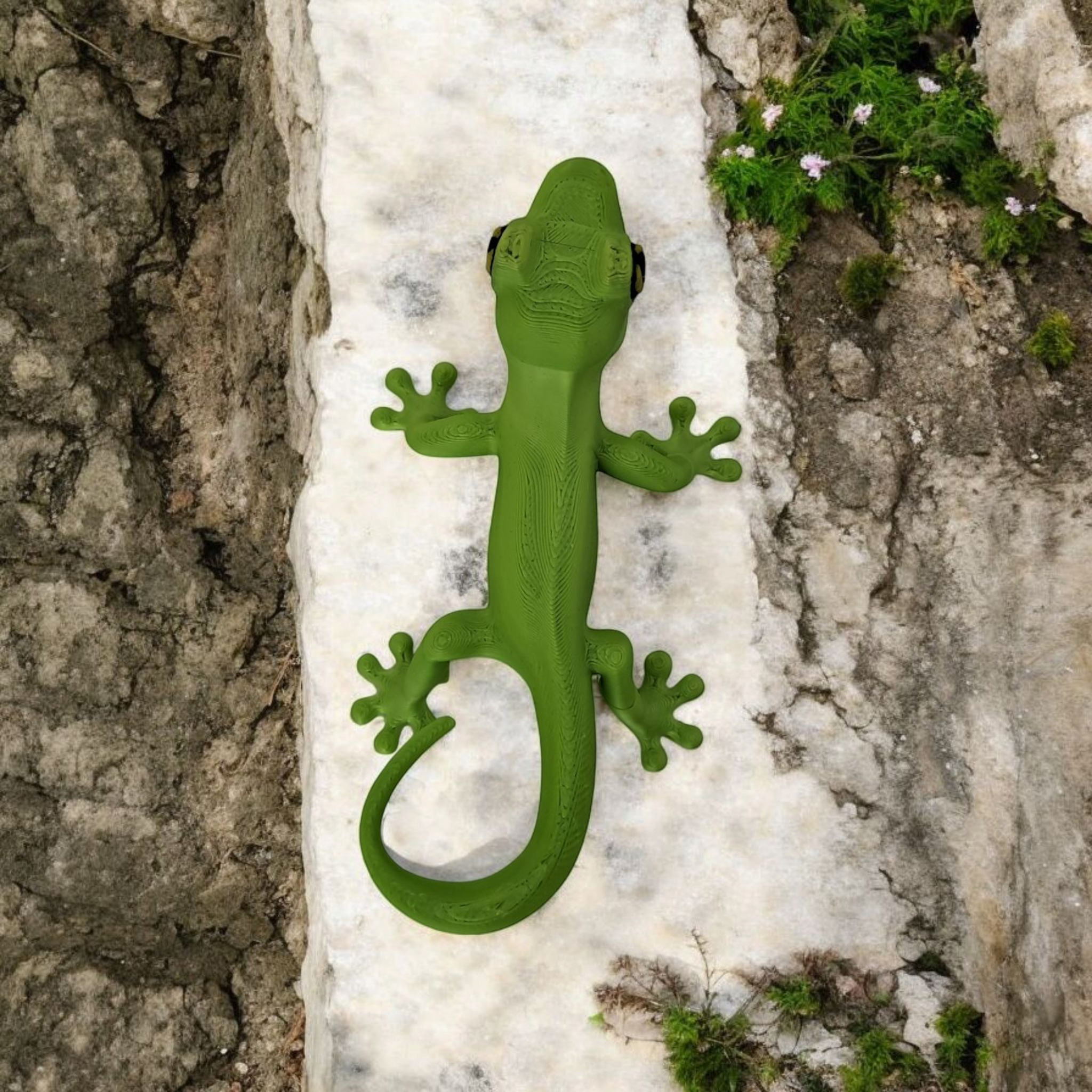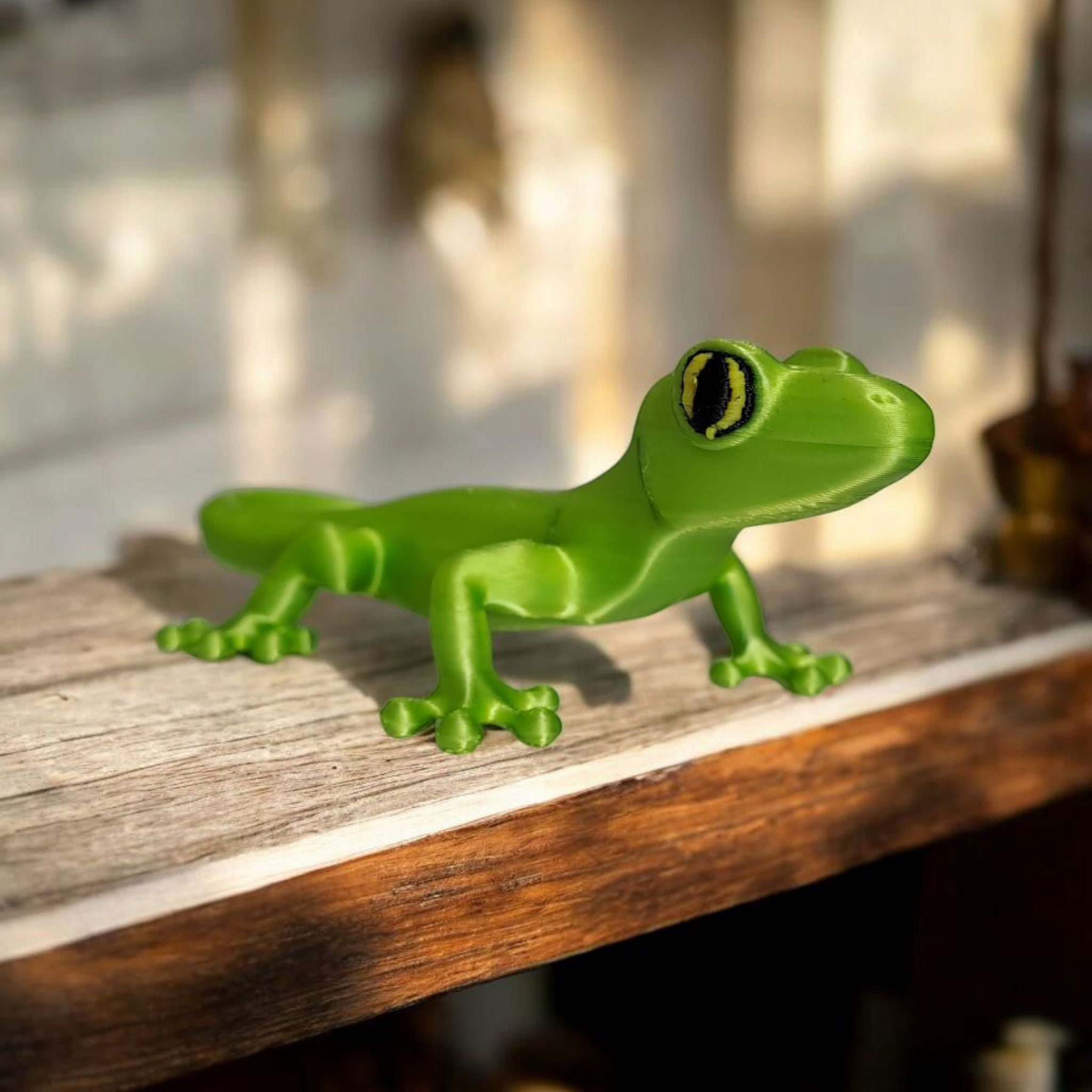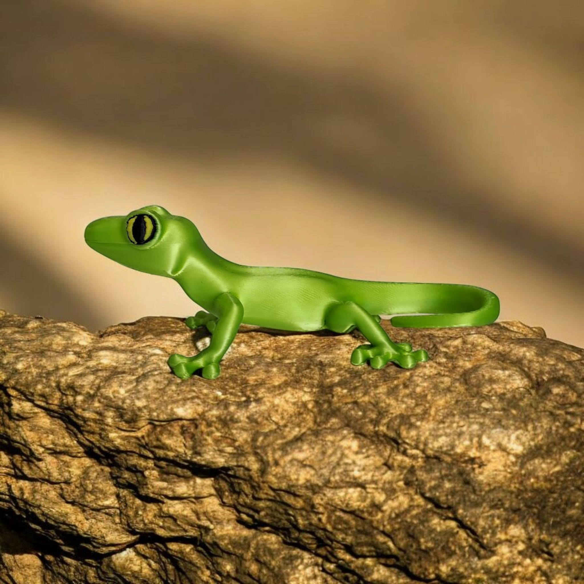 Diese detailreiche Gecko-Figur bringt Charakter und Charme in jeden Raum. Das Modell hat die Standardabmessungen 199 × 111 × 69 mm; auf einigen Fotos ist die gezeigte Version im Maßstab 50 % dargestellt. Die Figur wurde im FDM-3D-Druck hergestellt – dadurch sind feine Schichtlinien und kleine Unregelmäßigkeiten möglich, was kein Reklamationsgrund ist.