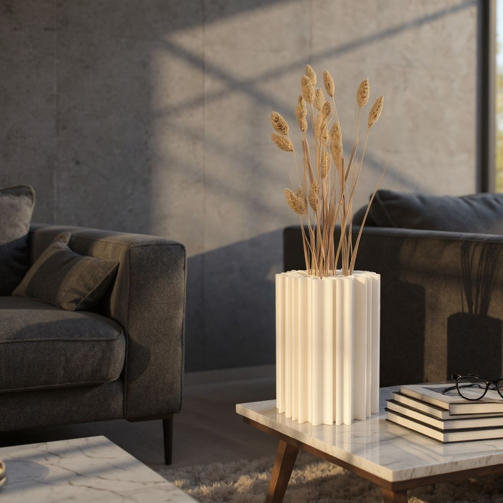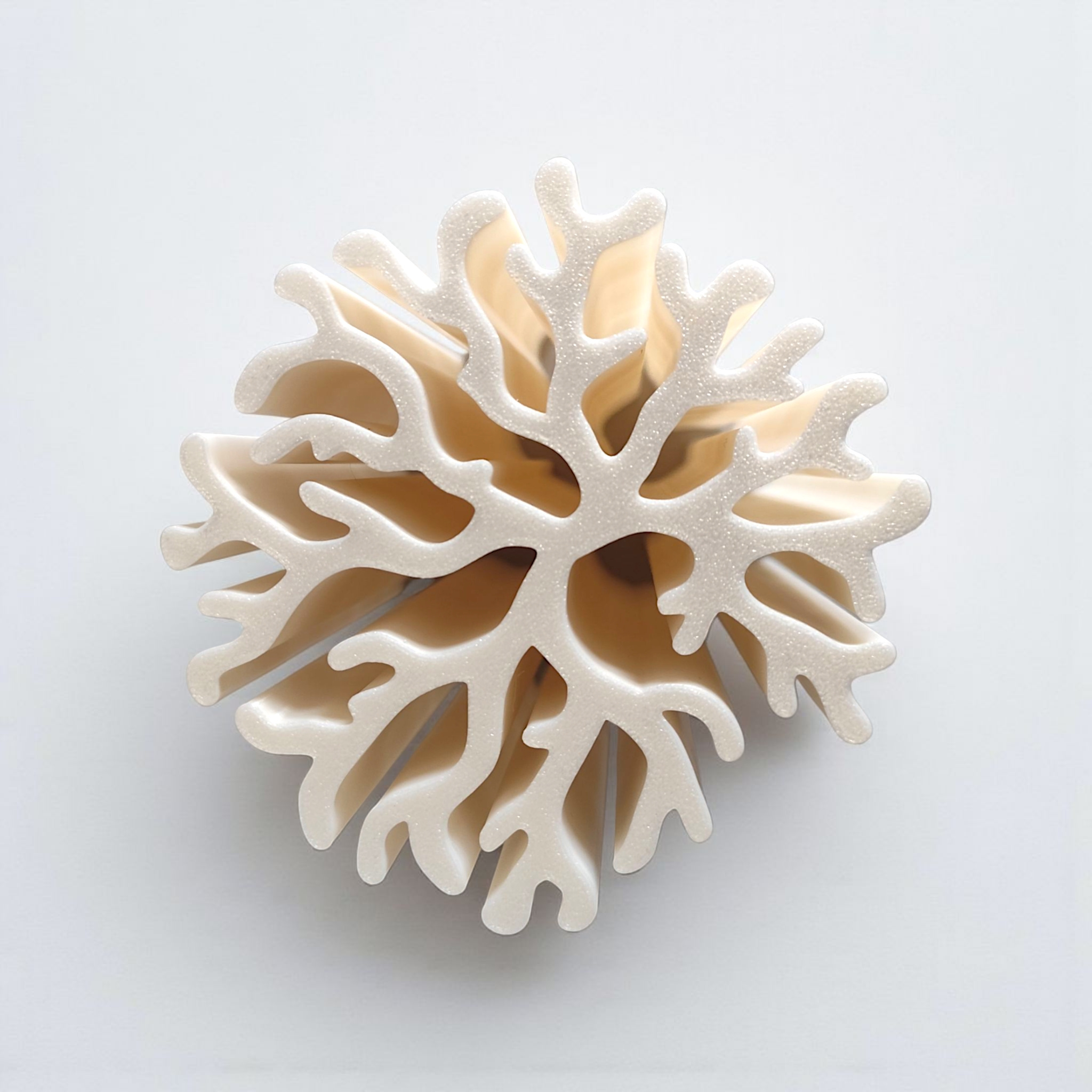 Diese Vase besticht durch ihre organische, korallenähnliche Form und fügt sich als dezentes, zugleich markantes Dekoelement in unterschiedliche Einrichtungsstile ein. Die klare Silhouette wirkt aus der Entfernung zurückhaltend; aus der Nähe offenbart die Oberfläche ihre feinen Konturen und Texturen.