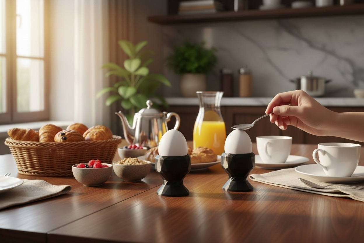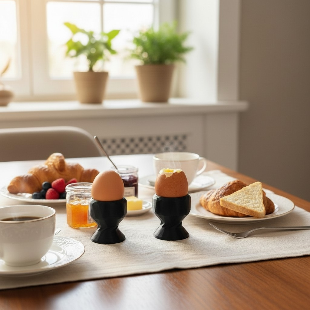 Eleganter Low‑Poly‑Eierbecher, fertig 3D‑gedruckt im FDM‑Verfahren. Das kompakte, facettierte Design wirkt modern und ist gleichzeitig stabil genug für den täglichen Gebrauch am Frühstückstisch. Standardmaße: 55 × 53 × 53 mm.