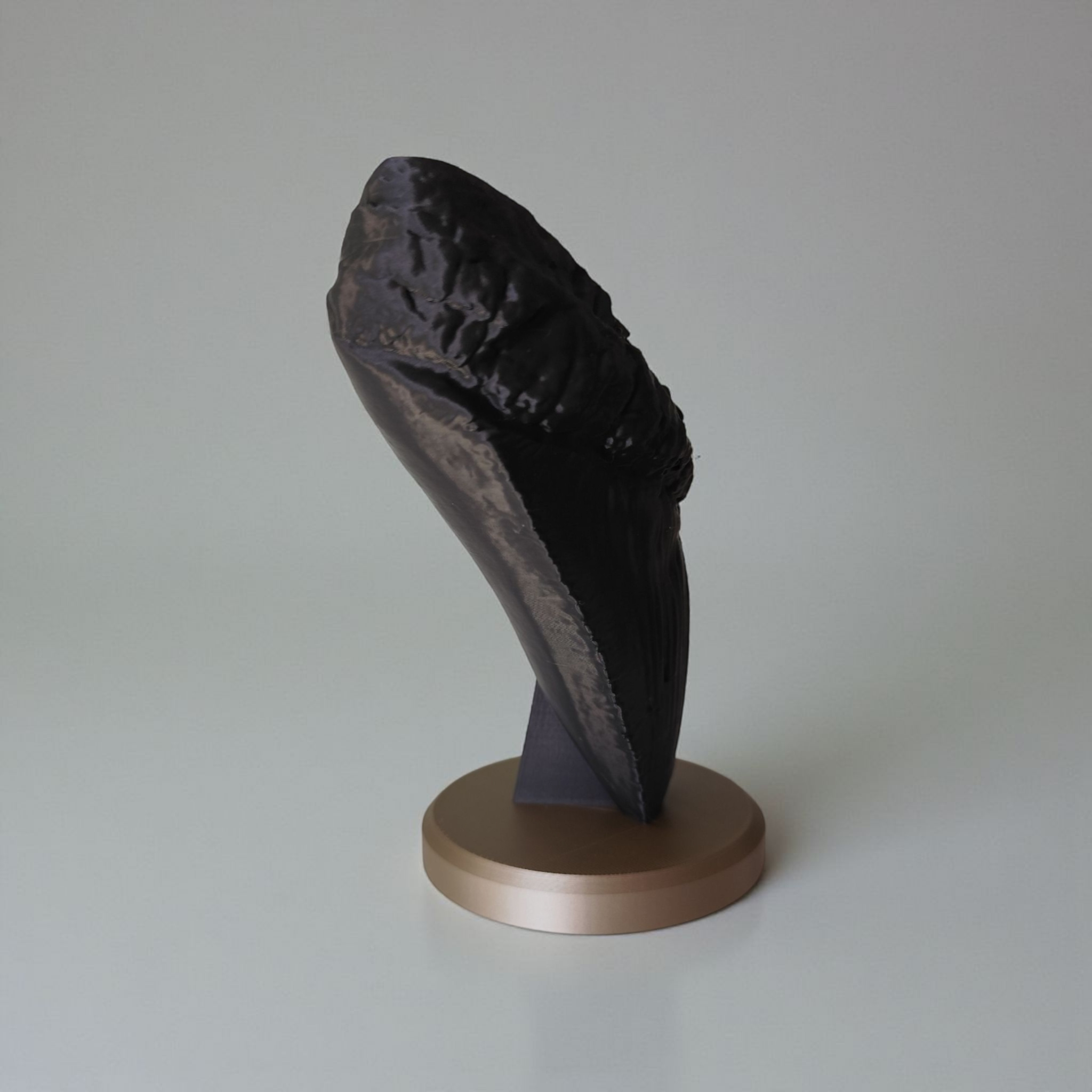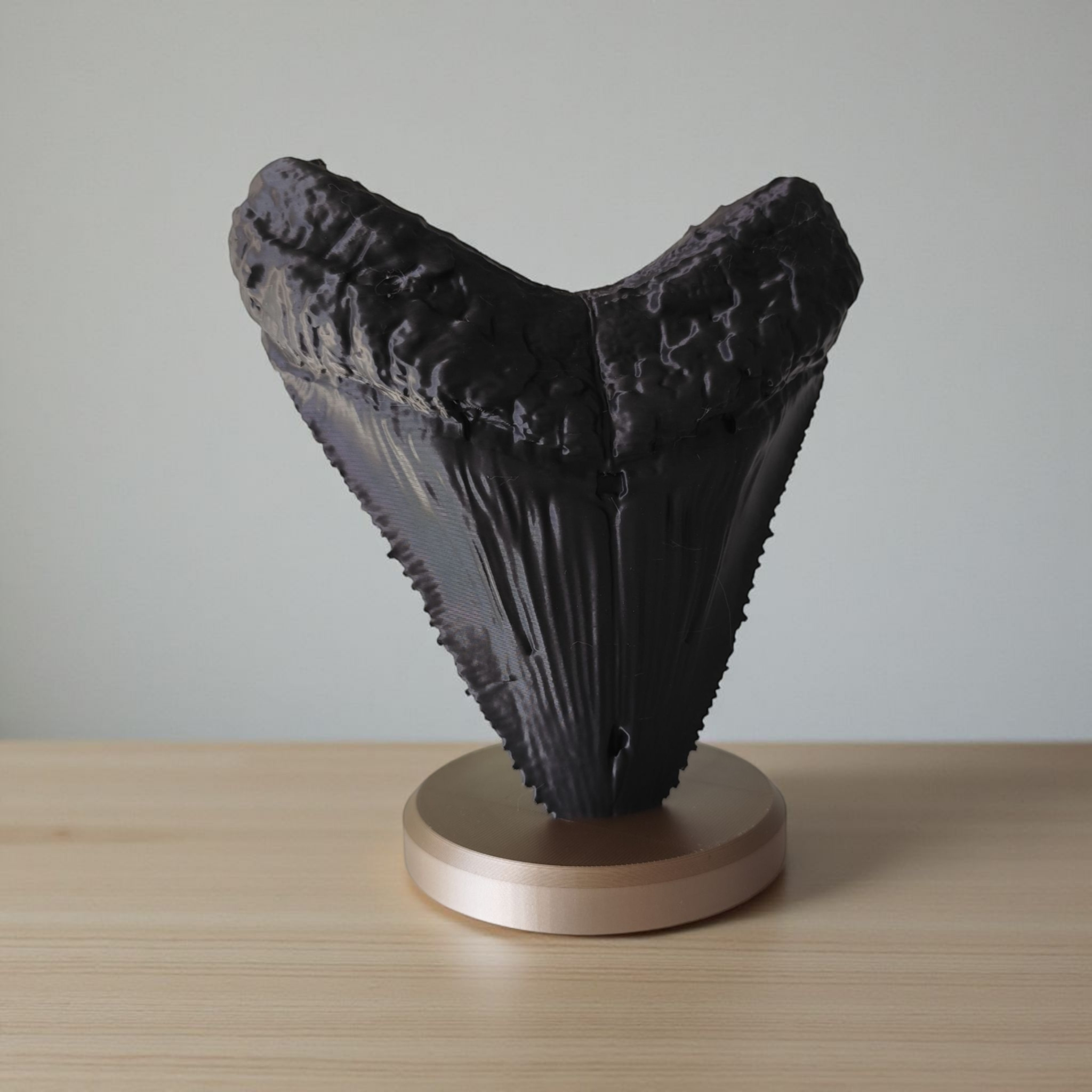 Diese detailgetreue Nachbildung eines Megalodon-Zahns ist ein stilvolles Deko-Fossil für Zuhause oder das Büro. Das fertige Produkt wurde im FDM-3D-Druckverfahren aus PLA gefertigt und überzeugt durch seine realistische Formgebung und die zweifarbige Ausführung (Champagner Metallic und Schwarz) – die Farbe entspricht den Produktbildern.