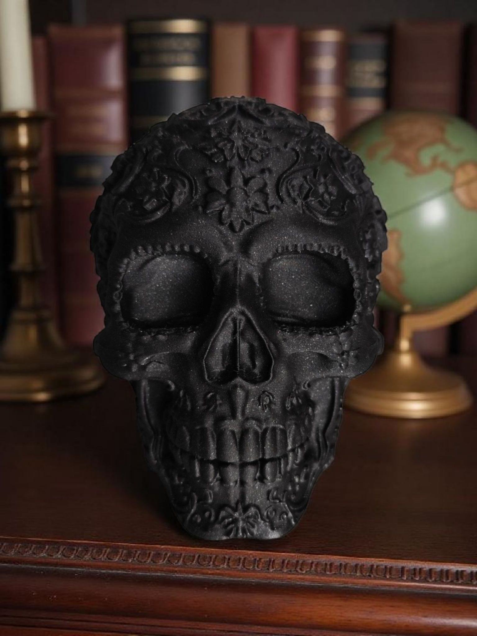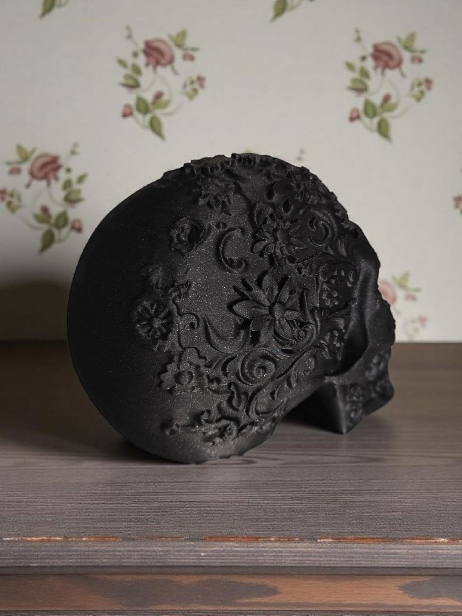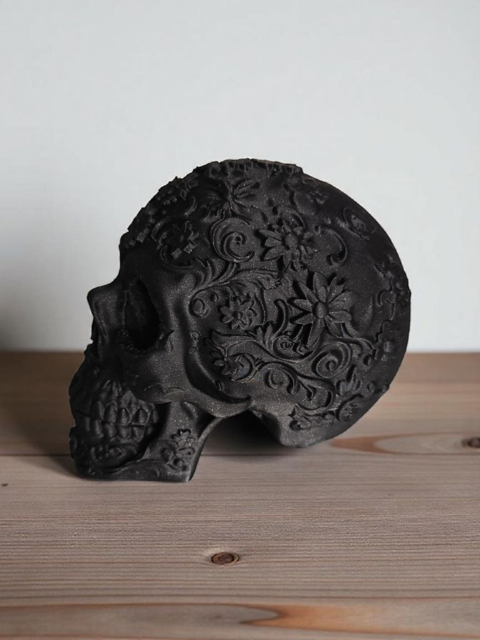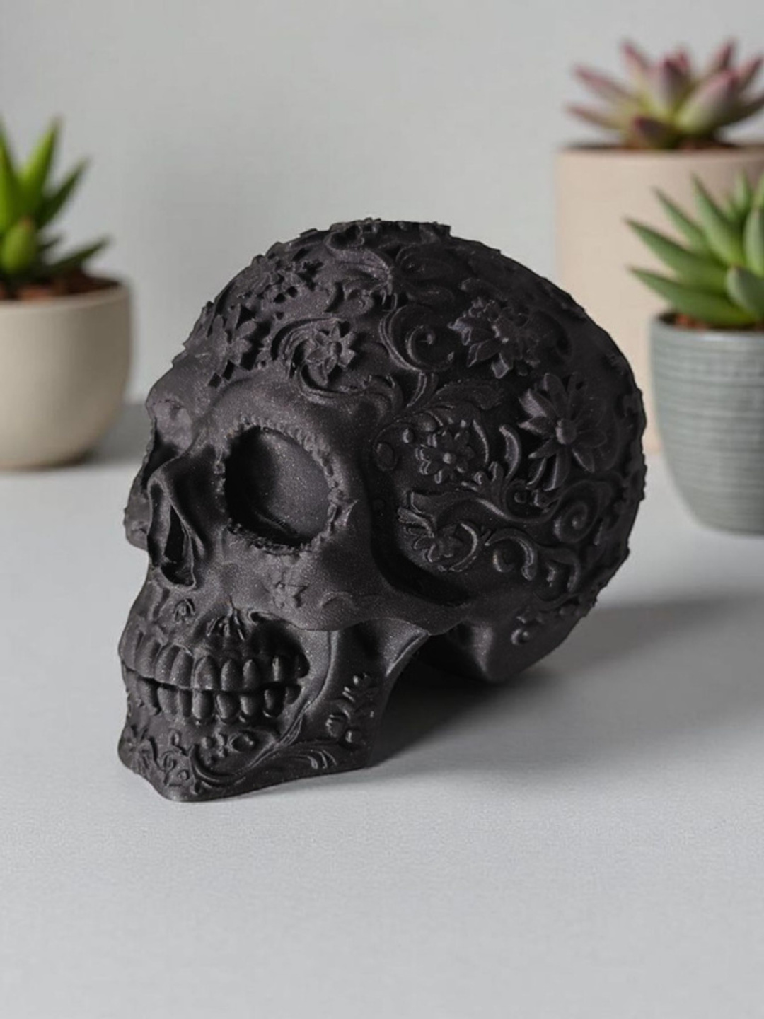 Dieser dekorative mexikanische Ornament-Schädel ist reich verziert und ein echter Blickfang für Zuhause oder Veranstaltungen. Das fertige Objekt wurde im FDM 3D‑Druckverfahren hergestellt und als physisches Dekorstück geliefert.