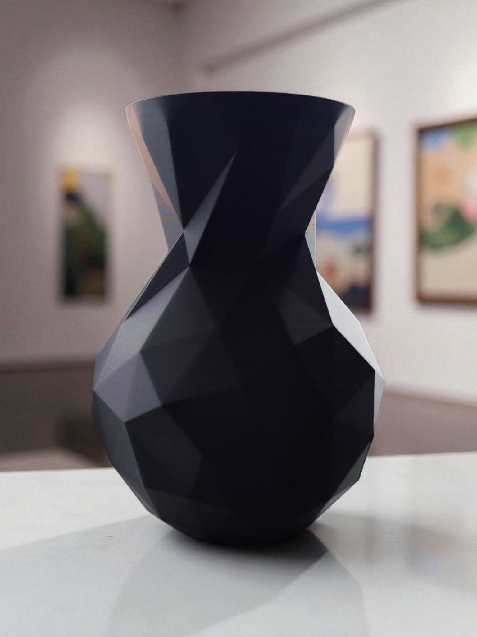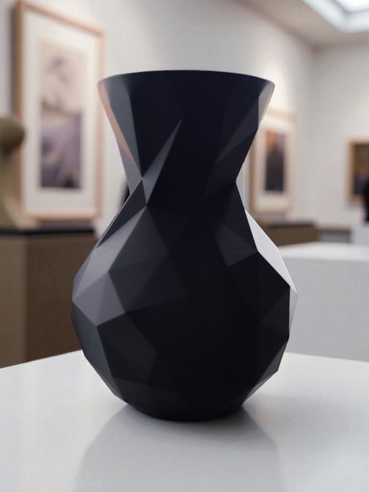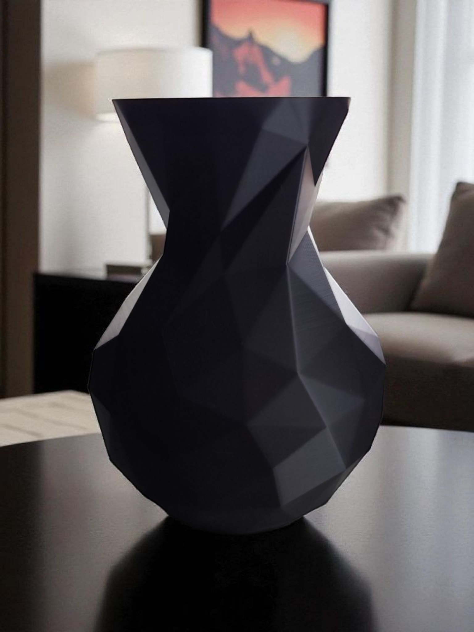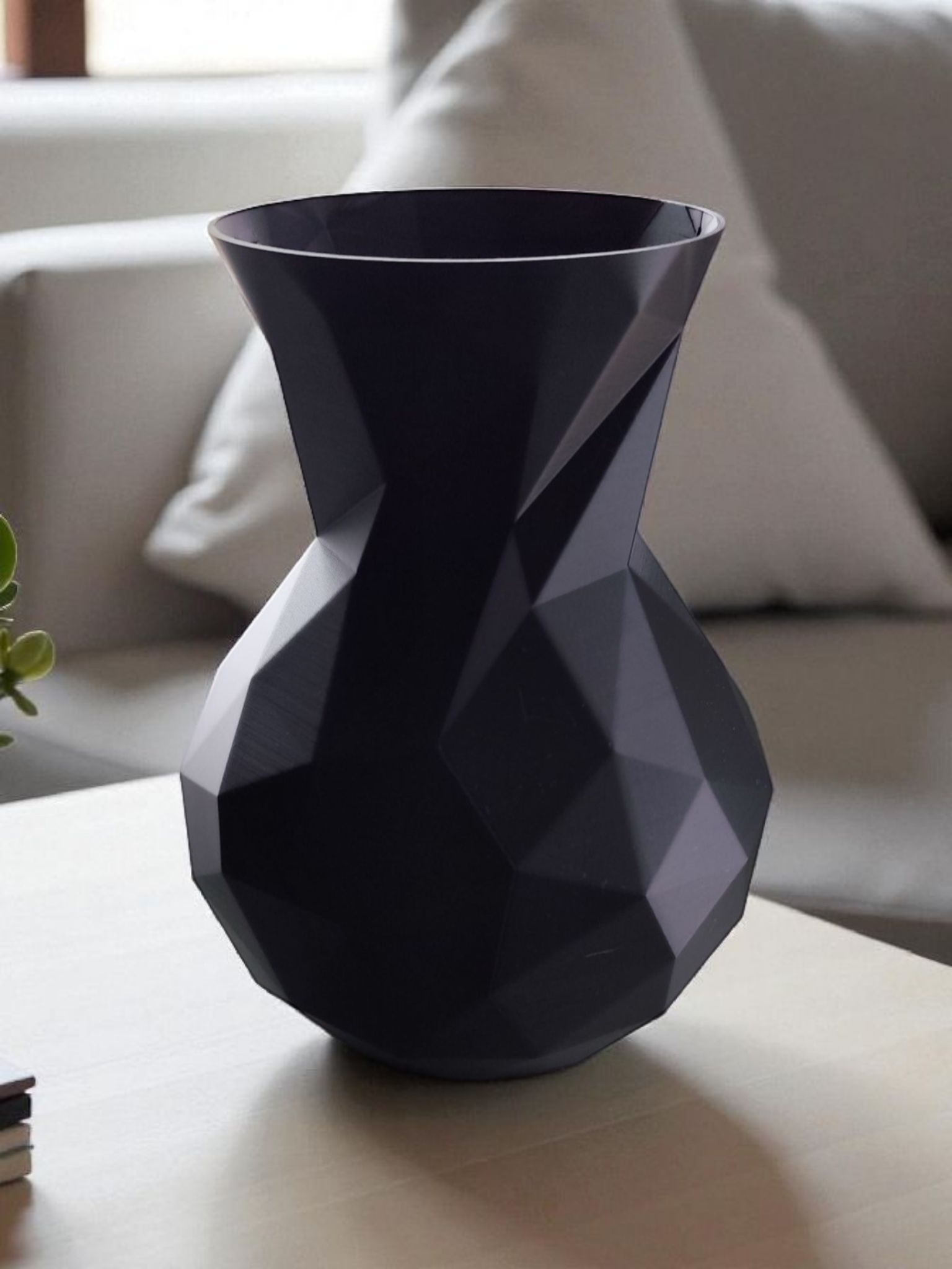 Diese minimalistische Low‑Poly Vase besticht durch ihr facettiertes Design: Licht und Schatten spielen über viele Kanten und Flächen, sodass jede Perspektive ihren eigenen Ausdruck erhält. Die Vase hat die Abmessungen 175 x 127 x 127 mm (H x B x T).