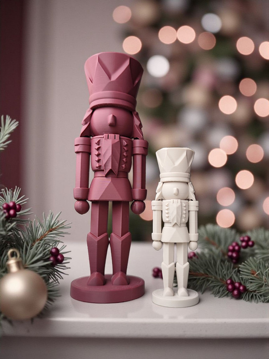 Zeitgemäße Interpretation des klassischen Nussknackers als dekorative Dekofigur. Dieses fertig gefertigte Produkt wurde im FDM 3D-Druckverfahren hergestellt und eignet sich ideal als stilvolle Advents- oder Weihnachtsdekoration für Fensterbank, Regal oder Festtagstisch.