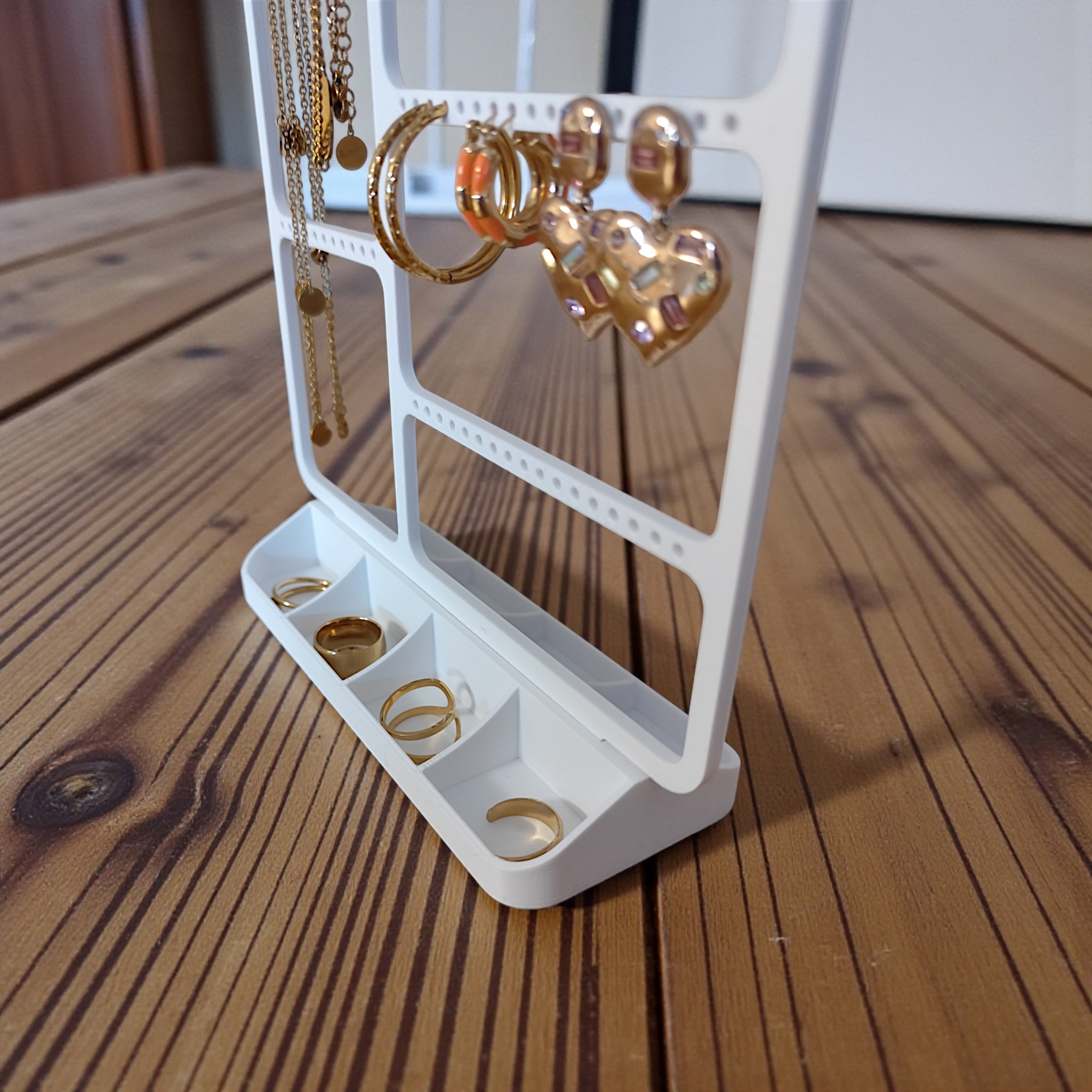Dieser moderne Schmuck-Organizer verbindet klares Design mit praktischer Funktion: Auf kompakter Stellfläche ordnen Sie Ohrringe, Ketten und Ringe sauber und griffbereit. Der Organizer besteht aus zwei Teilen und lässt sich einfach zusammensetzen. Gefertigt im 3D-Druck aus weißem PLA, misst das Modell 200 mm × 200 mm × 70 mm und eignet sich damit ideal für Kommoden, Nachttische oder Badezimmerschränke. Die reduzierte, minimalistische Optik fügt sich unaufdringlich in verschiedene Einrichtungsstile ein. Zur Pflege genügt ein trockenes oder leicht feuchtes Tuch. Ein praktisches Accessoire für alle, die ihre Schmuckstücke stilvoll und übersichtlich aufbewahren möchten.