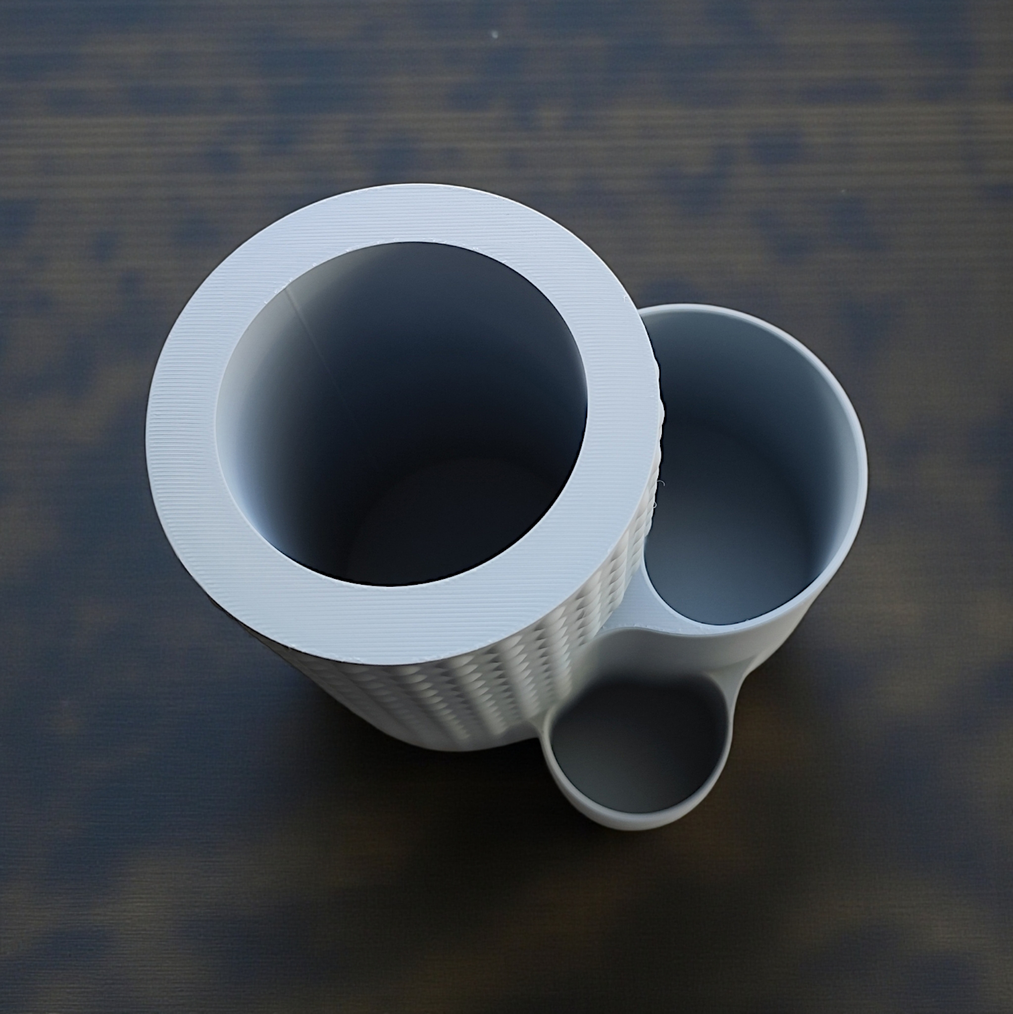 Gefertigt ist das Produkt mittels 3D‑Druck aus PLA‑Material. Die konstruktiv verstärkten Wände sorgen für Stabilität im Alltag; die Oberfläche lässt sich bei Bedarf mit einem feuchten Tuch leicht reinigen. Farbton und Oberfläche können je nach Charge leicht variieren.