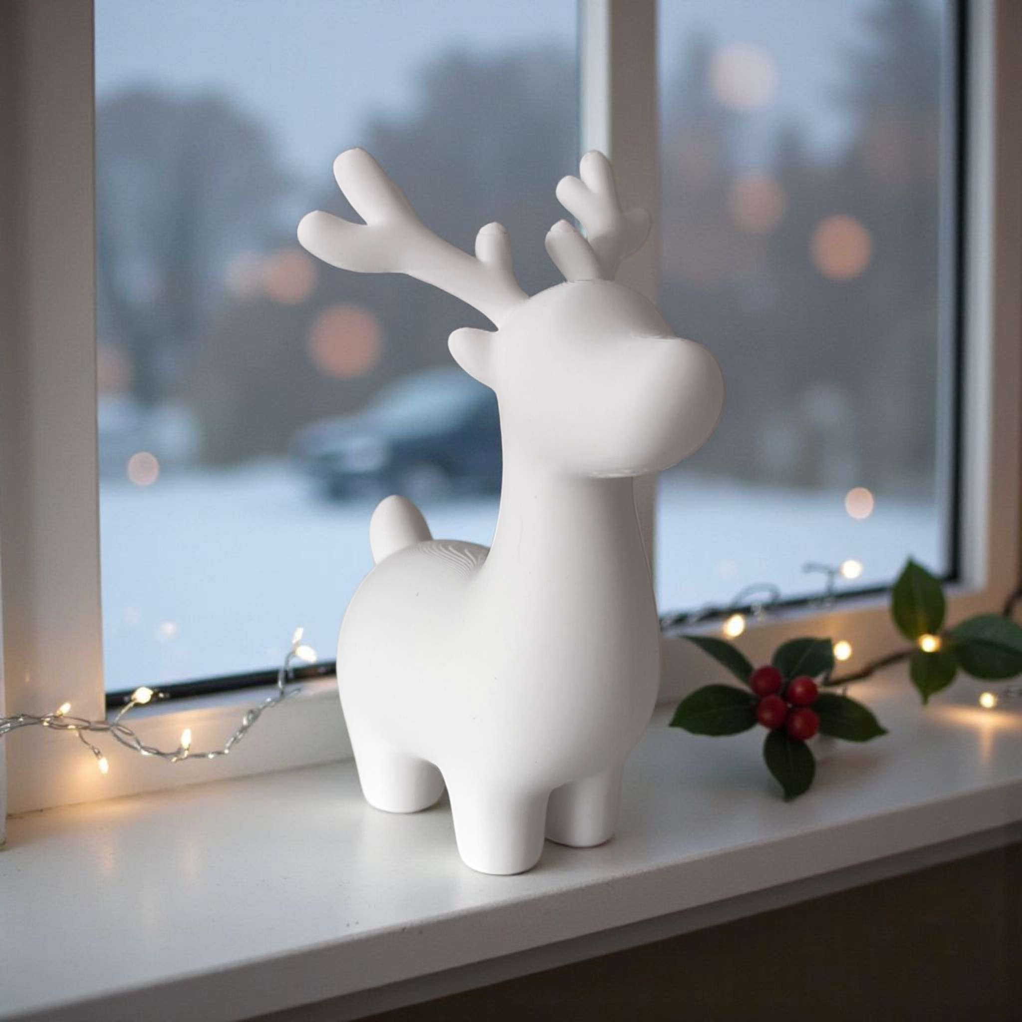 Diese kleine, charmante Rentier‑Dekoration passt perfekt auf Fensterbank, Regal oder als Teil einer festlichen Tischdekoration. Das minimalistische Design wirkt hochwertig und unaufdringlich und fügt sich gut in verschiedene Einrichtungsstile ein. Die hier angegebene Größe beträgt 103 x 79 x 59 mm.