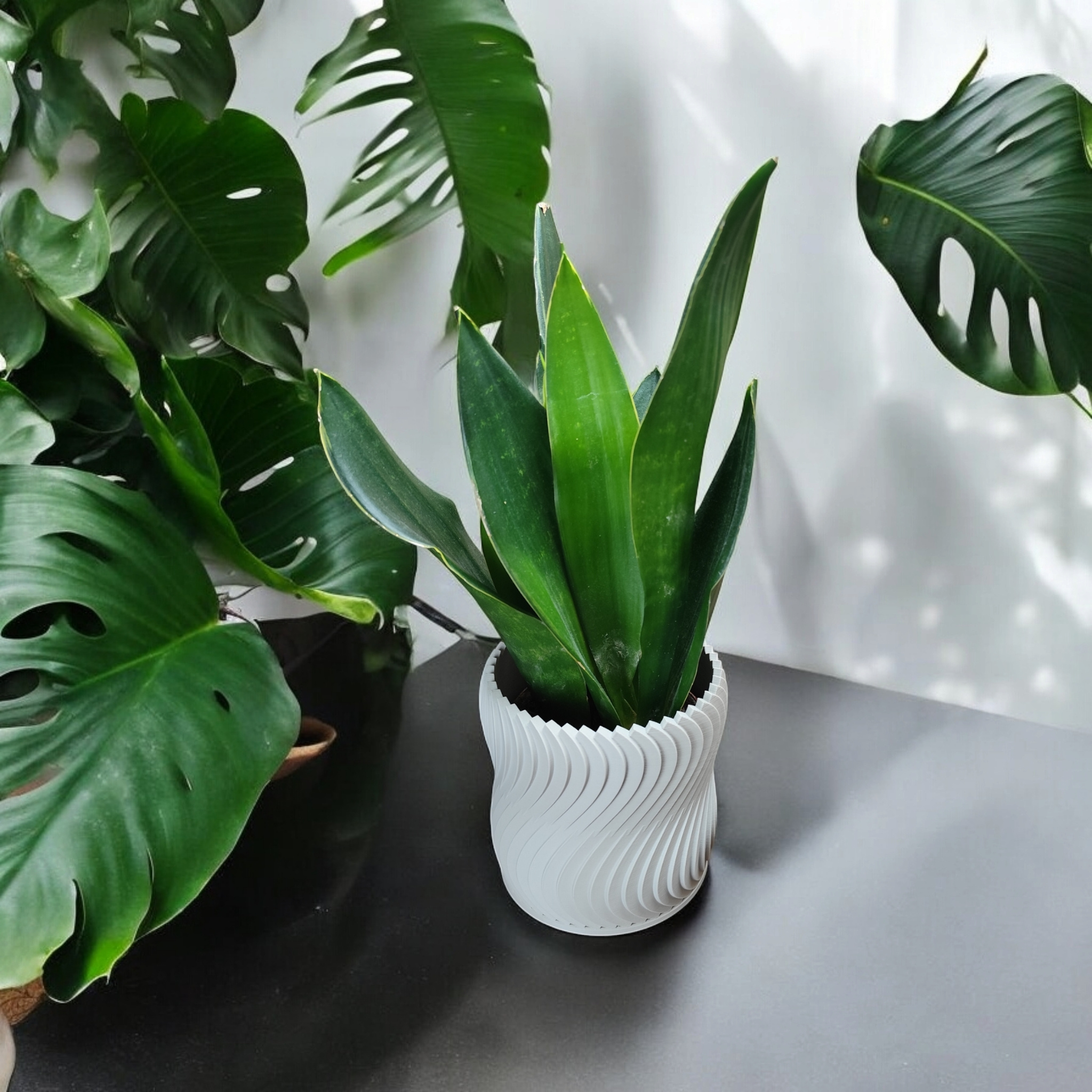 Dieser 3D-gedruckte Blumentopf kombiniert ein industriell inspiriertes, skulpturales Design mit praktischer Funktionalität. Die geschwungenen Linien erzeugen ein lebendiges Spiel aus Licht und Schatten und lassen das Gefäß wie eine kleine, stille Skulptur wirken. Er eignet sich sowohl für Sukkulenten und Kräuter als auch als eigenständiges Dekoelement in Wohnräumen.