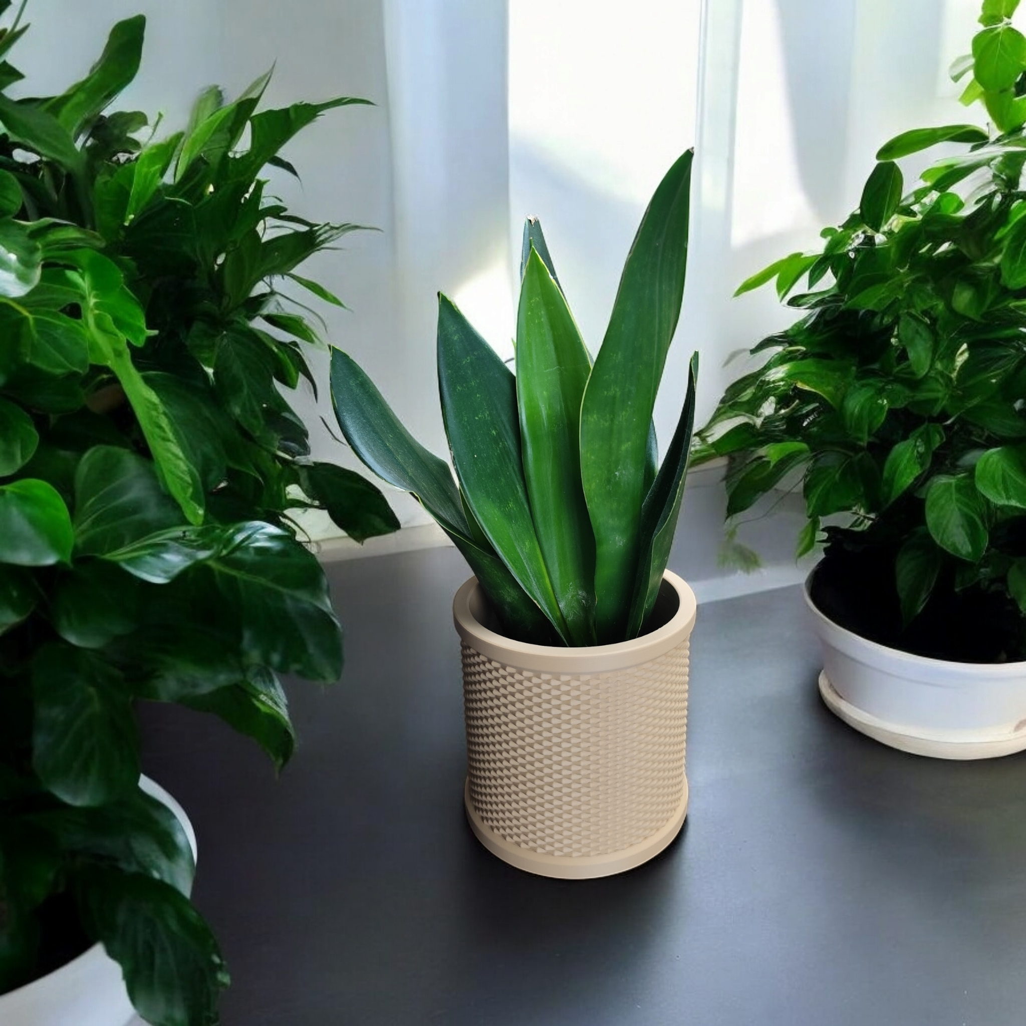 Produktdetails: Lieferumfang ist ein fertig 3D-gedrucktes Blumentopf-Exemplar. Die rattanähnliche Textur schafft Tiefe und Struktur, ohne echtes Geflecht zu verwenden. Pflegehinweis: Mit einem weichen, leicht feuchten Tuch reinigen.