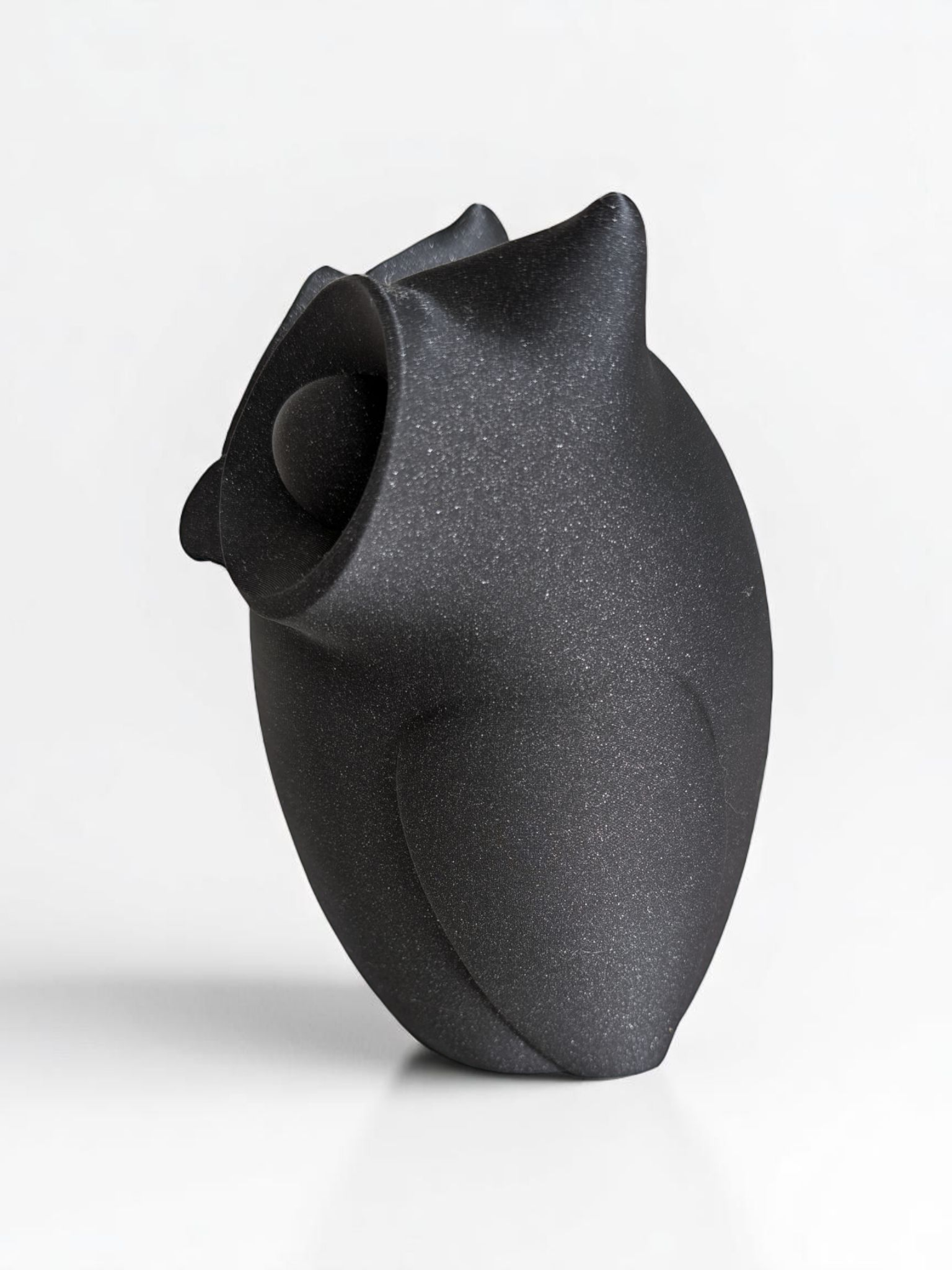 Die Figur wird im FDM-Verfahren 3D-gedruckt. Dadurch sind sehr feine Schichtlinien und kleine Unebenheiten möglich; solche typischen Merkmale des Verfahrens sind kein Reklamationsgrund. Die Form wurde so gestaltet, dass die Skulptur ohne Stützstrukturen gefertigt werden kann und eine saubere, klare Oberfläche erzielt wird.