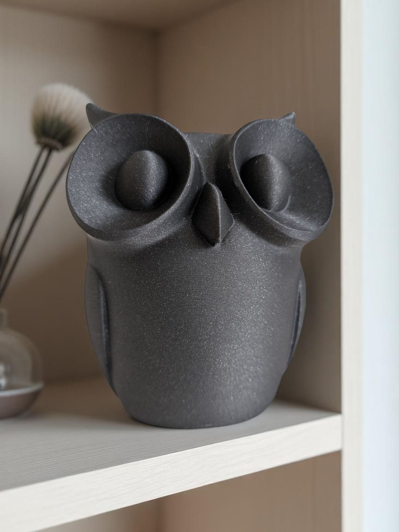 Die minimalistische Eule passt in moderne Wohnumgebungen, Büros oder als Geschenk. Ihr reduziertes Design macht sie zu einem unaufdringlichen, aber ausdrucksstarken Dekoobjekt.