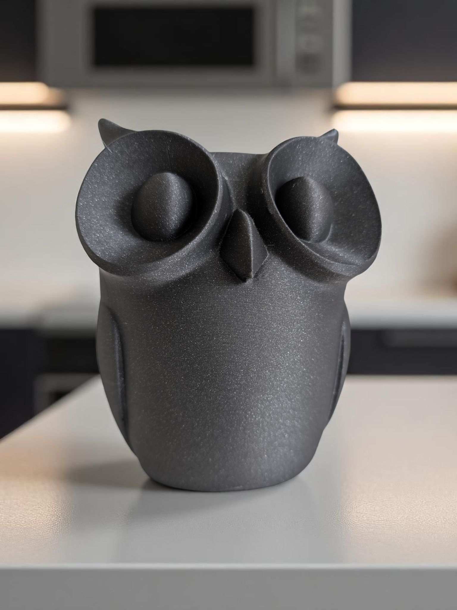 Diese minimalistische Eule konzentriert sich auf Form und Ausdruck: glatte Flächen, weiche Rundungen und zwei große, freundliche Augen verleihen ihr Charakter trotz reduzierter Gestaltung. Die Skulptur wird im FDM-3D-Druck gefertigt und ergibt eine stabile, blickfangende Dekoration für Regal, Schreibtisch oder Fensterbrett.