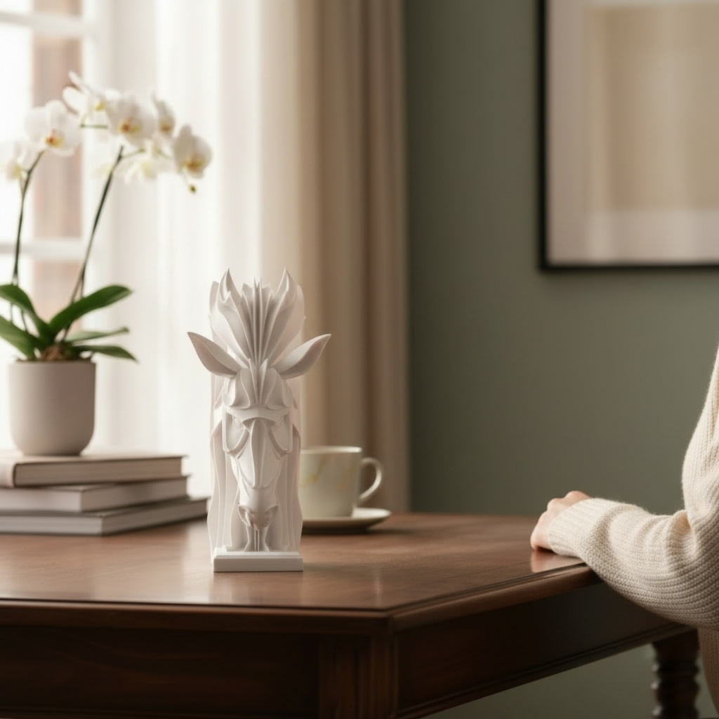 Dank der dreifachen Wandstärke wirkt die Skulptur besonders wertig und solide in der Hand. Als FDM-Druck können leichte Schichtlinien, minimale Unebenheiten oder kleine Druckspuren auftreten; dies ist produktionstypisch und kein Reklamationsgrund.