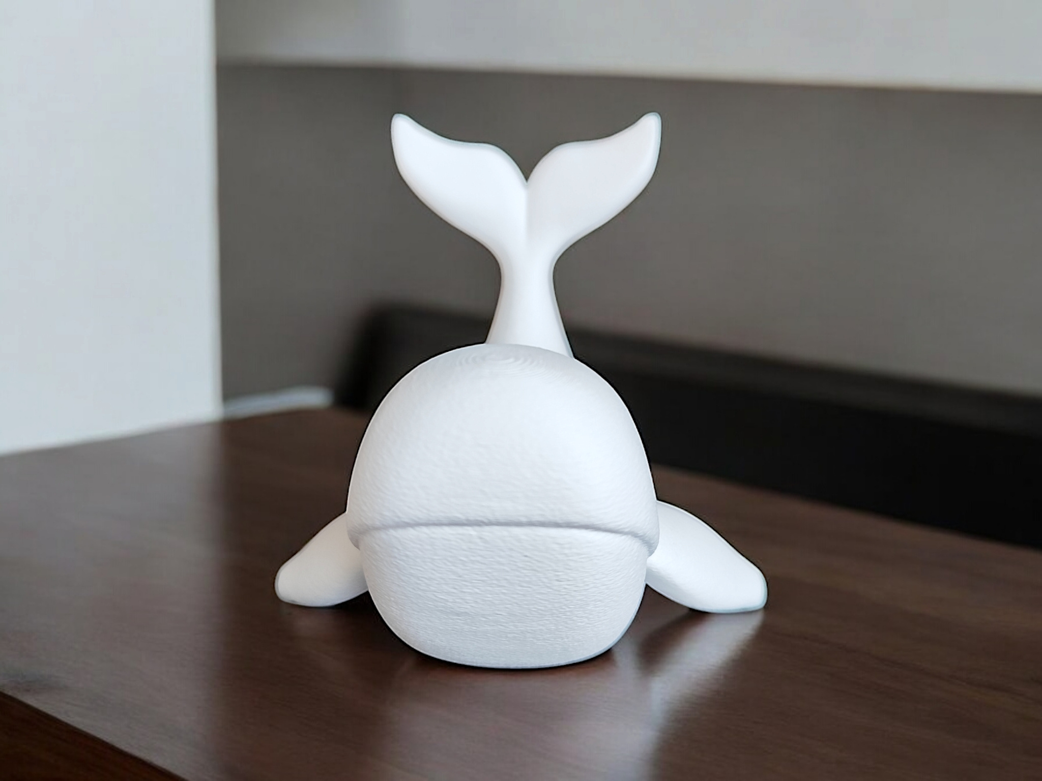 Diese skulpturale Darstellung eines Wals verbindet zeitlose Ruhe mit moderner Fertigungstechnik. Die fertige Skulptur wurde im FDM 3D‑Druckverfahren hergestellt und besticht durch eine leicht strukturierte Oberfläche, die an die natürliche Hautstruktur eines Wals erinnert. Maße: 189 x 127 x 109 mm. Gedrucktes Material: mattes Weißes PLA (Kunststoff). Die Farbe entspricht den Produktbildern.