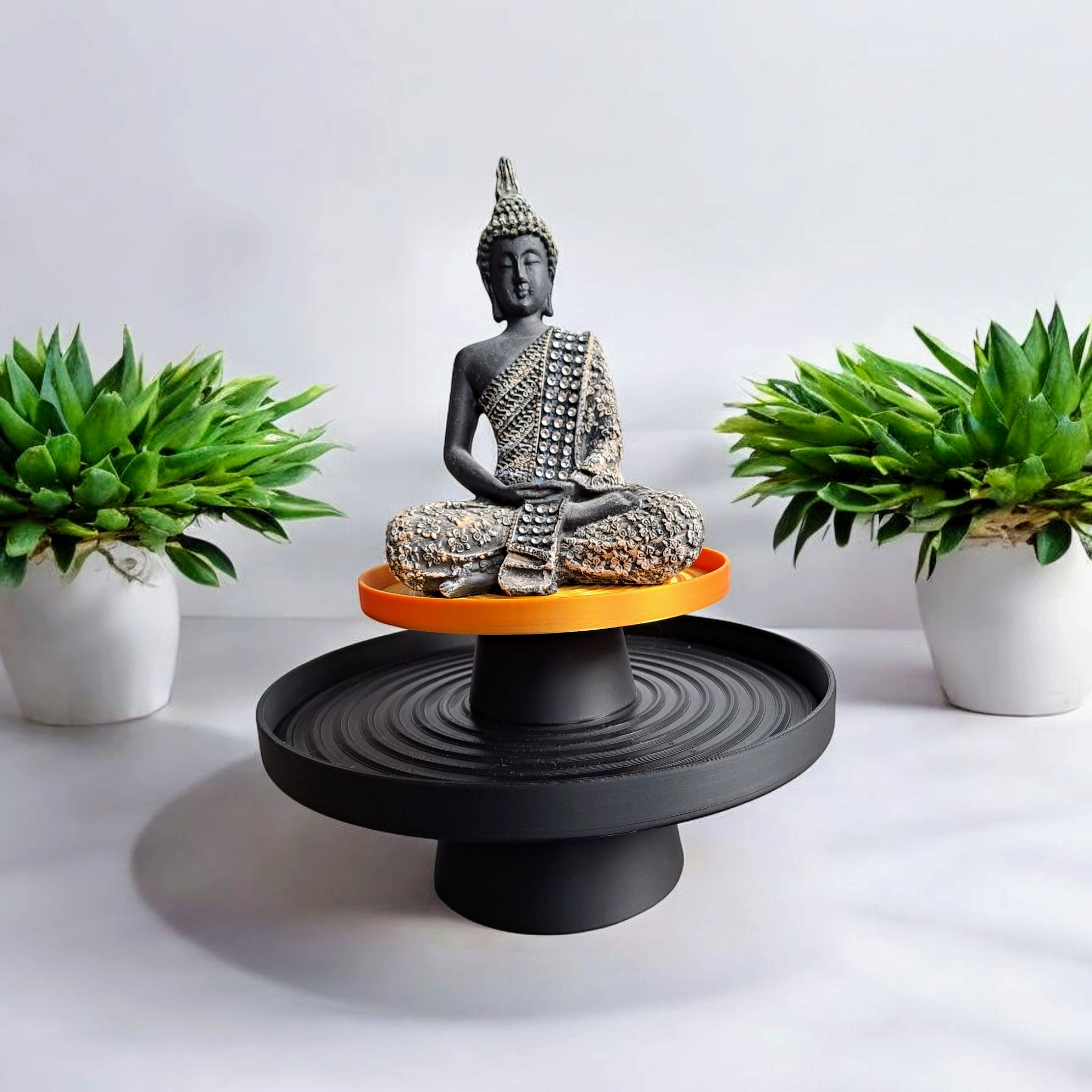 Set bestehend aus: Tray (229 × 229 × 18 mm), Stand / Pedestal (109 × 109 × 72 mm).