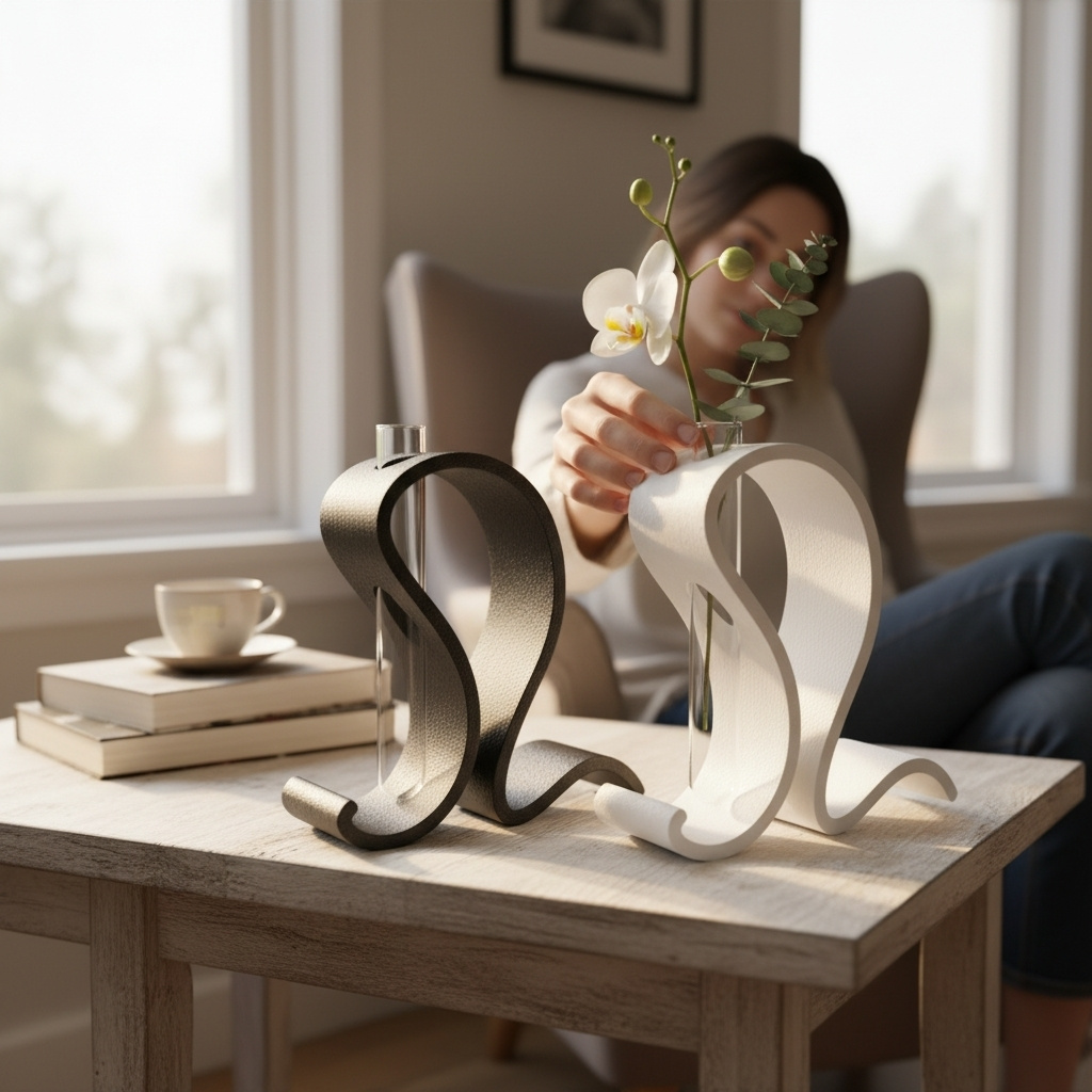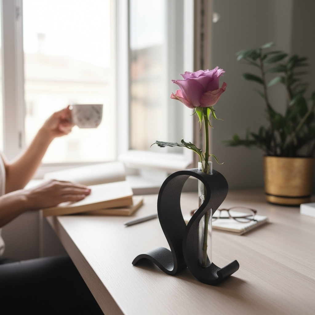 Elegantes Vasen-Set mit 3D-gedrucktem Ständer für dekorative Test-Röhrchen: ideal für einzelne Schnittblumen, kleine Trockenblumen oder als modernes Dekoelement. Der Ständer ist für standardisierte Reagenzgläser mit den Maßen 150 × 20 mm ausgelegt. Reagenzgläser sind nicht im Lieferumfang enthalten.