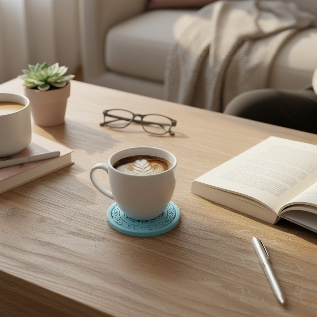 Stilvoller Untersetzer mit keltisch-nordischem Dekor, 3D gedruckt aus PLA. Mit einer kompakten Größe von 76 × 76 × 5 mm eignet sich dieser Untersetzer perfekt für Tassen, Gläser und kleine Gefäße und schützt Ihre Oberflächen vor Flecken und Kratzern. Das filigrane Muster verleiht dem Objekt eine dekorative Note und passt sowohl zu modernen als auch zu klassischen Einrichtungsstilen.