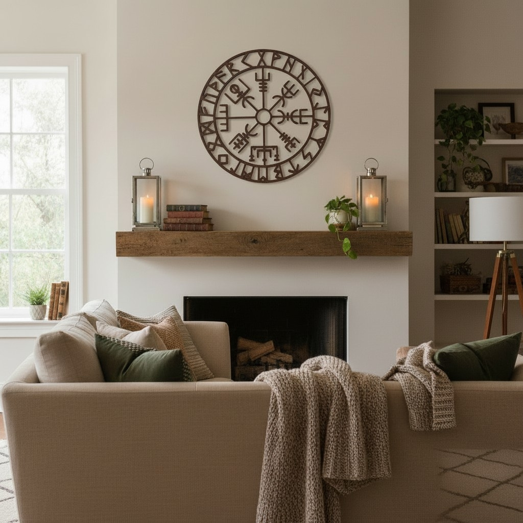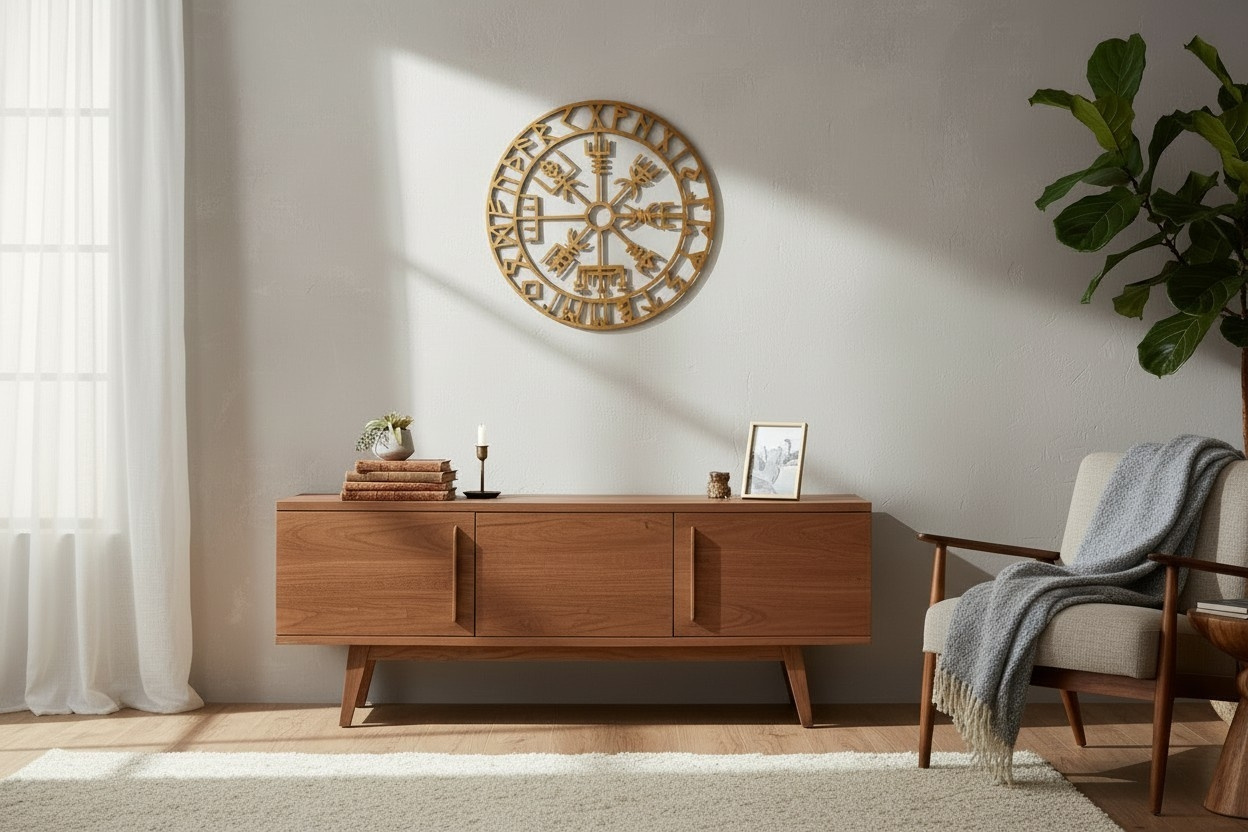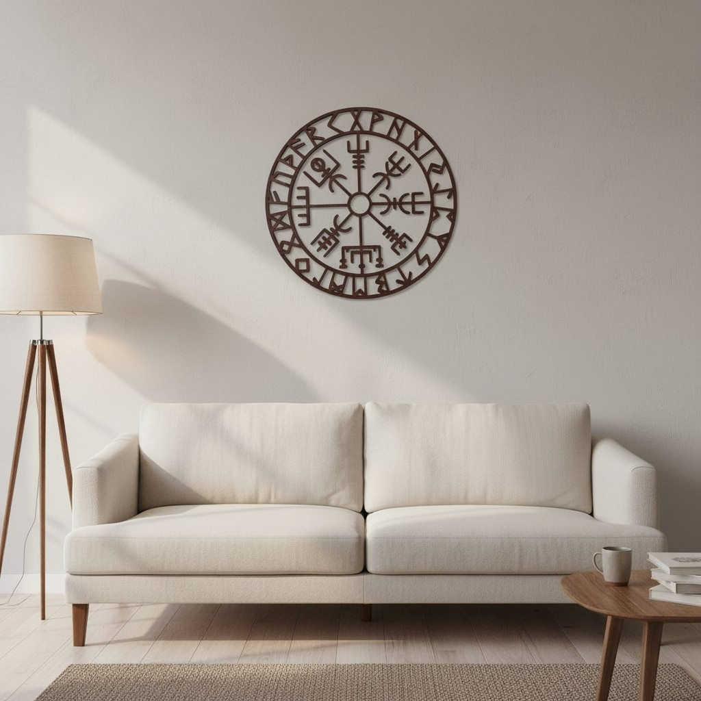 Diese dekorative Wandplatte zeigt den Vegvisir, den traditionellen Wikinger‑Kompass, und setzt als dezentes wie ausdrucksstarkes Motiv in Wohnräumen oder Fluren Akzente. Das angebotene, fertig verarbeitete Produkt hat die Abmessungen 250 x 250 x 6 mm. Es wurde im FDM‑3D‑Druckverfahren gefertigt und besteht aus PLA‑Kunststoff. Verwendete Farben: holzbraun (holzoptik) und schwarz matt, wie auf den Produktbildern dargestellt.
