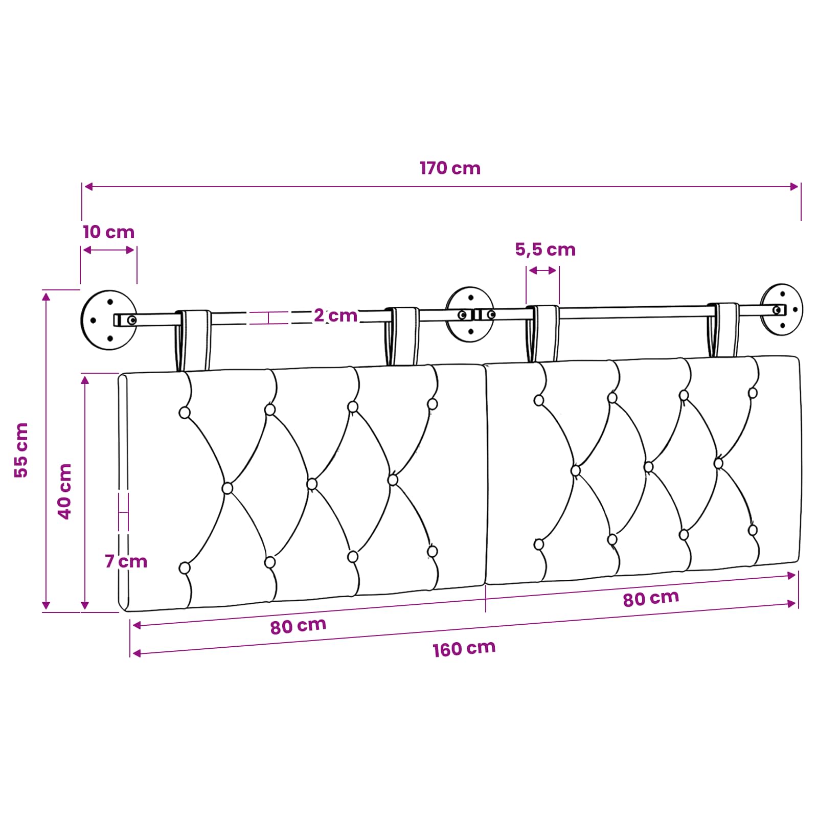 - Gesamtmaße: 170 x 55 x 7 cm (B x T x H)
