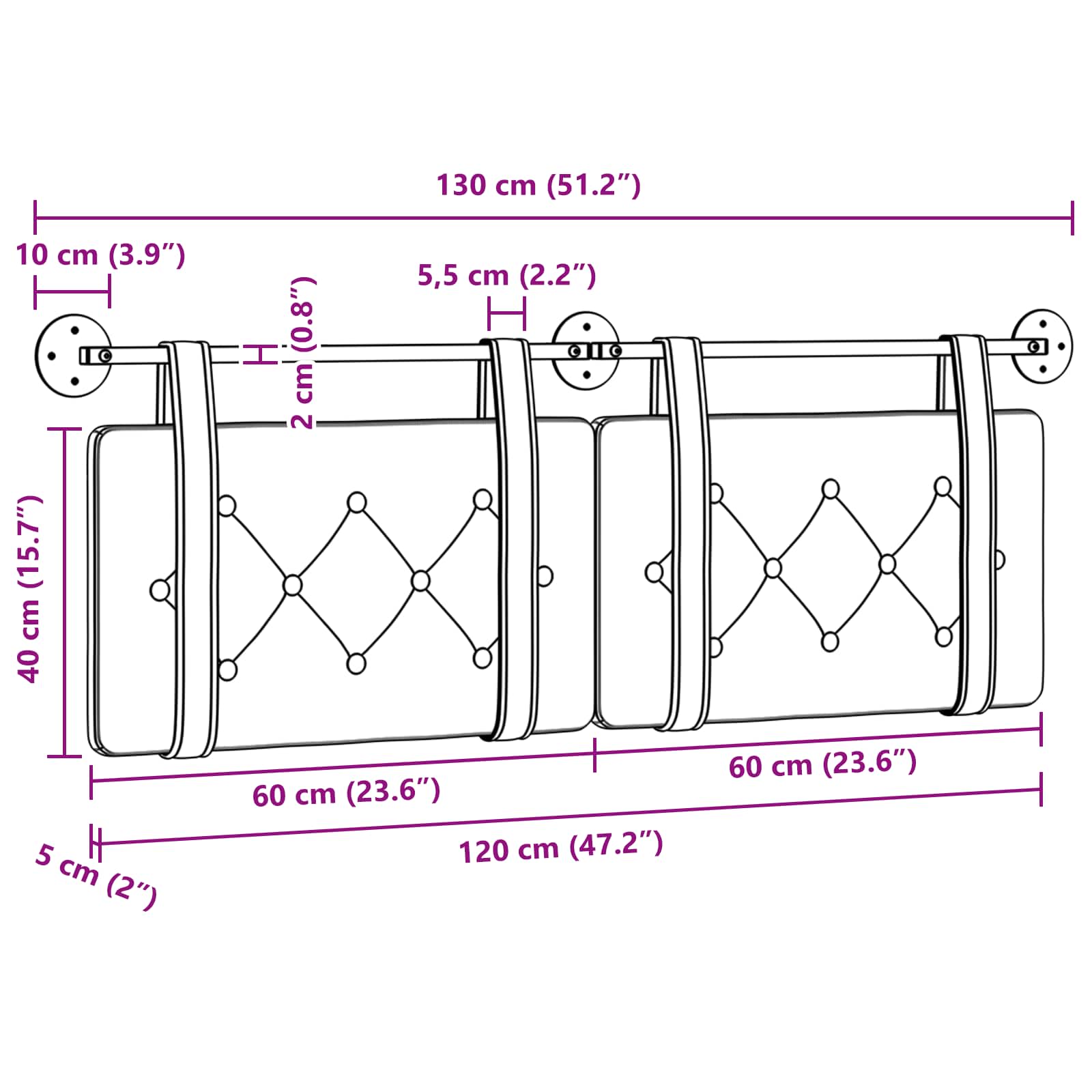 - Gesamtabmessungen: 130 x 55 x 5 cm (B x T x H)