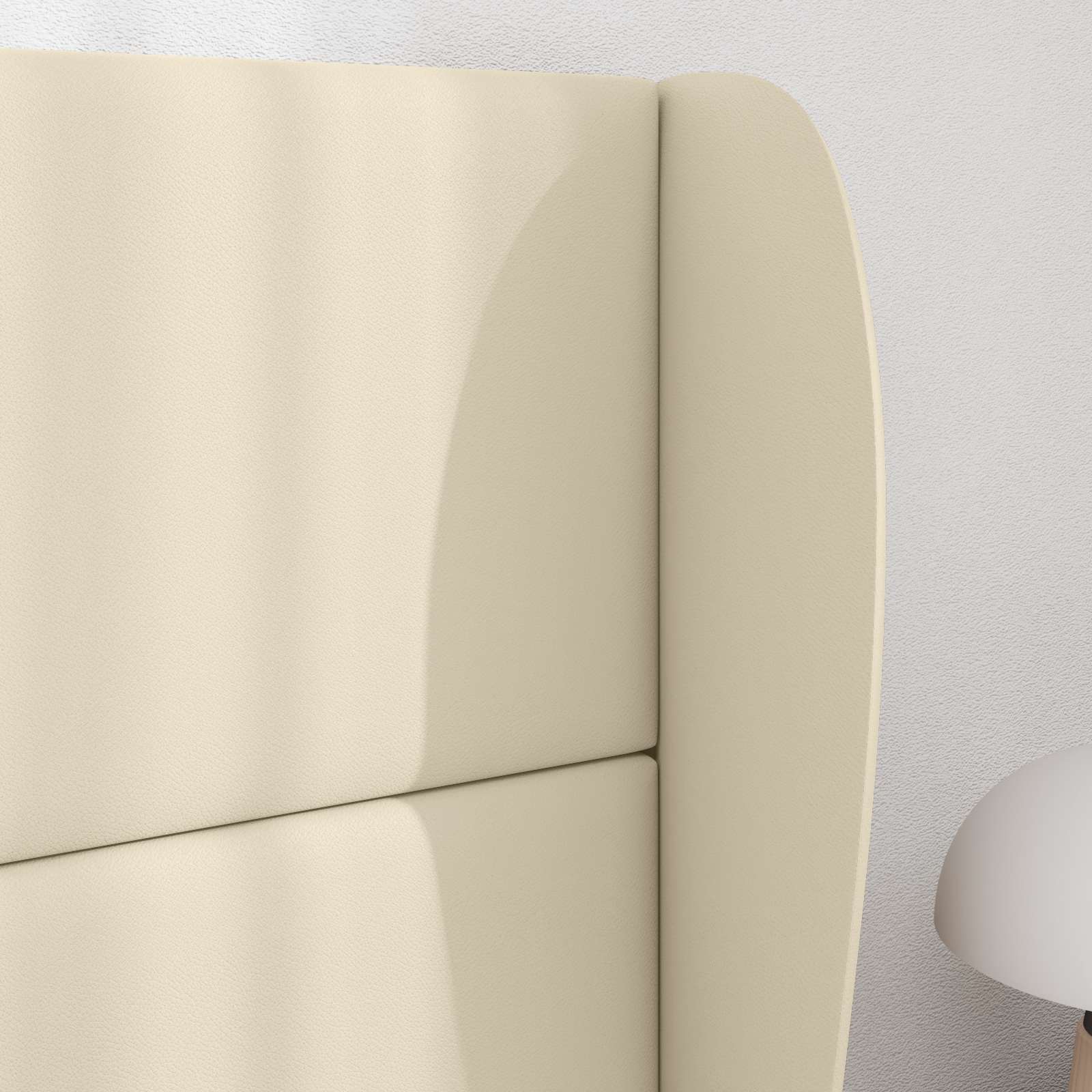 Das Kopfteil Wave Ear ist eine moderne Ergänzung für jedes Schlafzimmer. Es hat klare Linien und ein schlankes Design, das zu vielen Stilrichtungen passt. Die cremefarbene Farbe bringt einen Hauch von Raffinesse und schafft eine einladende Atmoshphäre, perfekt zum Relaxen. Das hochwertige PVC ist langlebig und fühlt sich super an, ideal für alle, die Stil und Komfort suchen. Egal, ob in einer modernen Wohnung oder einem klassischen Zuhause, dieses Kopfteil passt leicht rein und macht dein Schlafzimmer besser. Hochwertiges PVC-Material Das Kopfteil ist aus PVC, das für seine Langlebigkeit und weichen Eigenschaften bekannt ist. Es sorgt für ein tolles Nutzungserlebnis und lässt sich easy reinigen. Robuster Holzrahmen Das Kopfteil hat einen stabilen Holzrahmen, der für seine Stärke und Stabilität gewählt wurde. So bleibt alles über die Jahre schön in Form. Schaumfüllung für Komfort Die Schaumfüllung sorgt dafür, dass es bequem ist, wenn du im Bett sitzt, und gibt dir ein entspanntes Gefühl. Schlankes modernes Design Das Wave Ear Design bringt einen modernen Touch und ist einfach gehalten, was es vielseitig macht und gut in verschiedene Stile passt. Benutzerfreundliche Pflege Wisch es einfach mit einem feuchten Tuch ab, um den schönen Look zu behalten – so bleibt die Pflege super einfach.