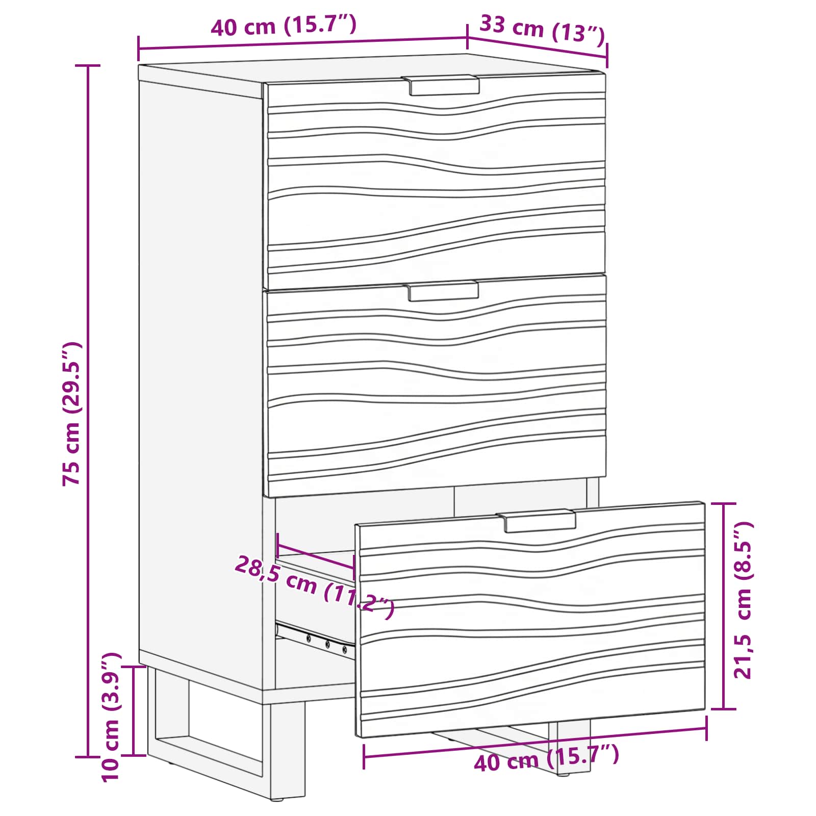 - Gesamtabmessungen: 40 x 33 x 75 cm (L x B x H)
