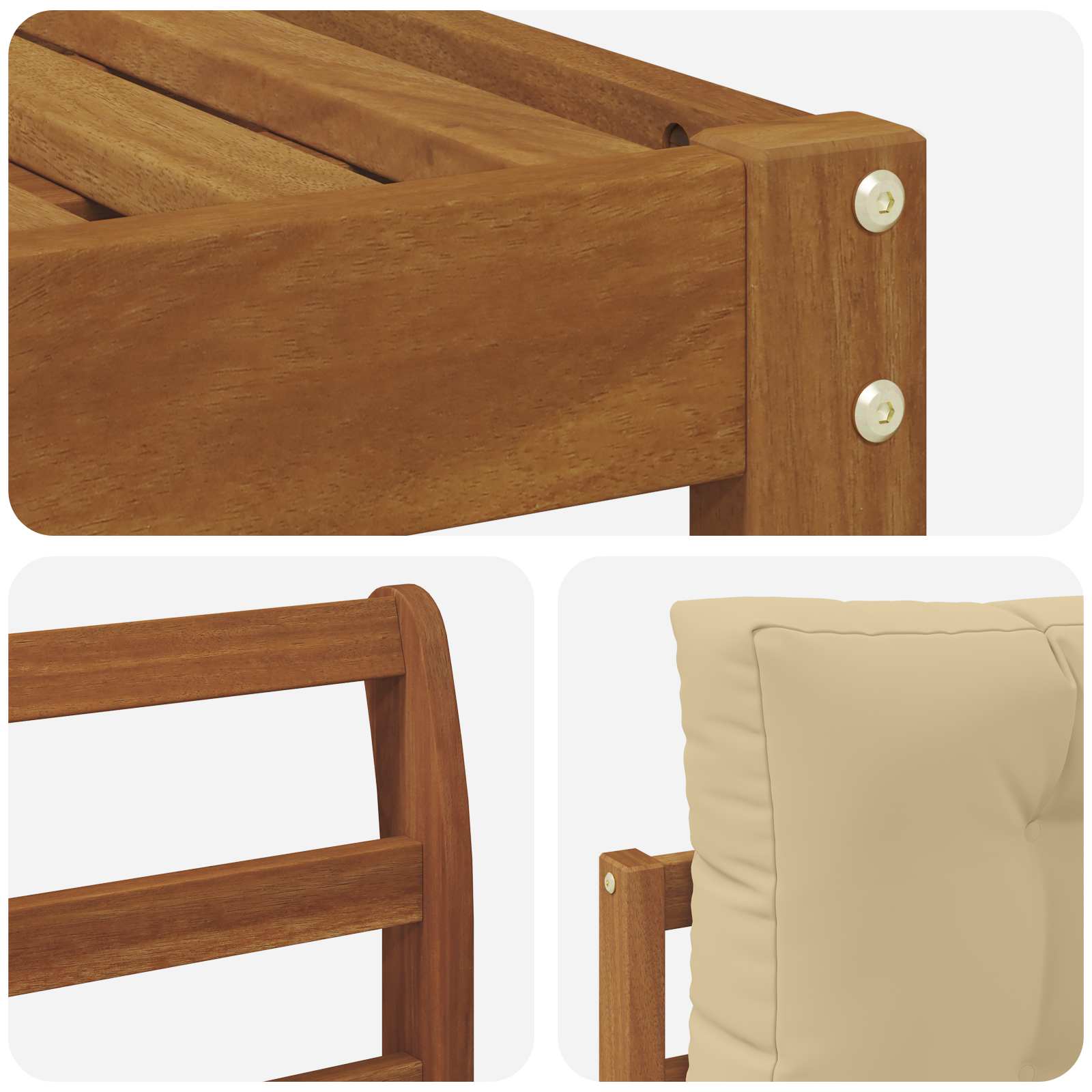 - Material: Massives Akazienholz und Polyester
