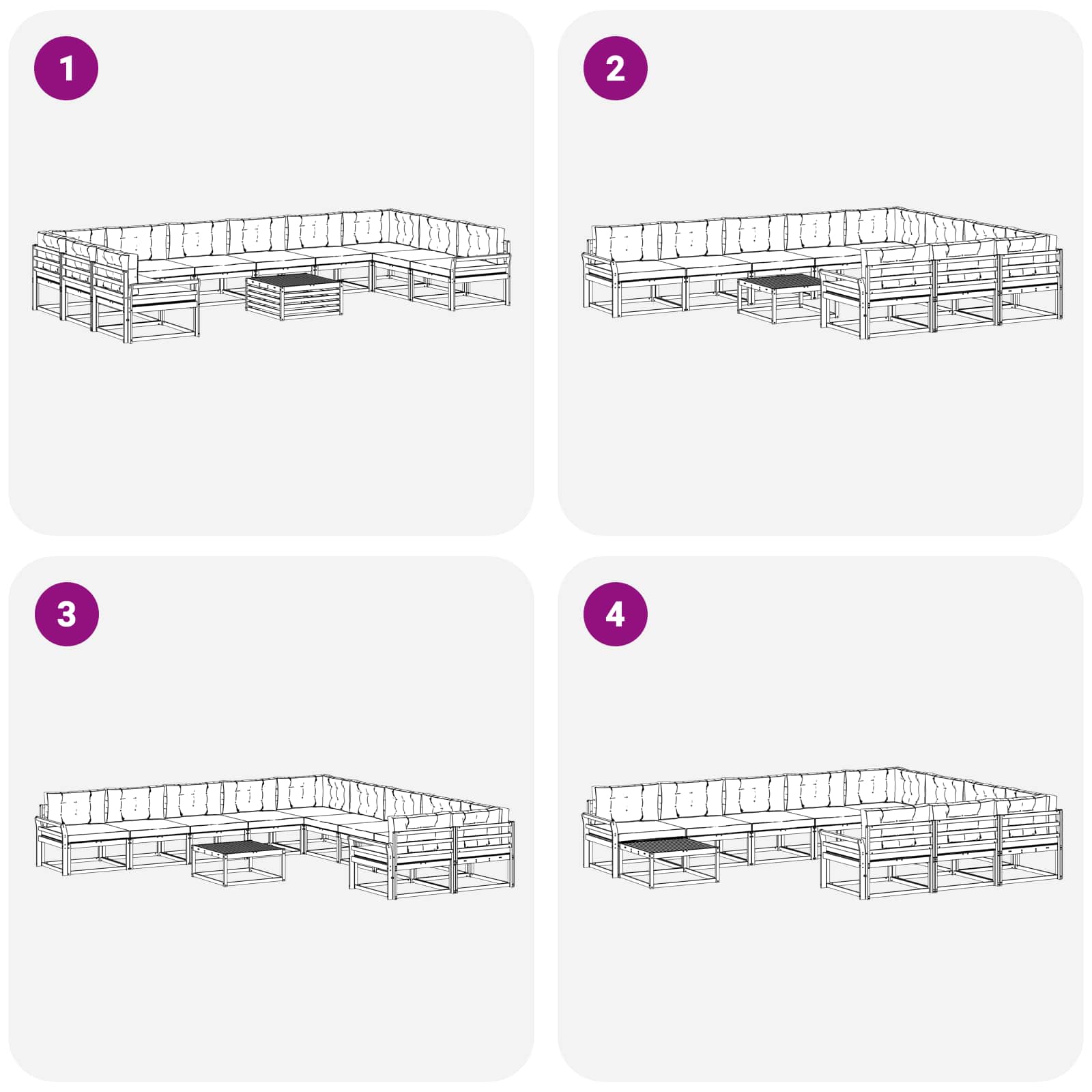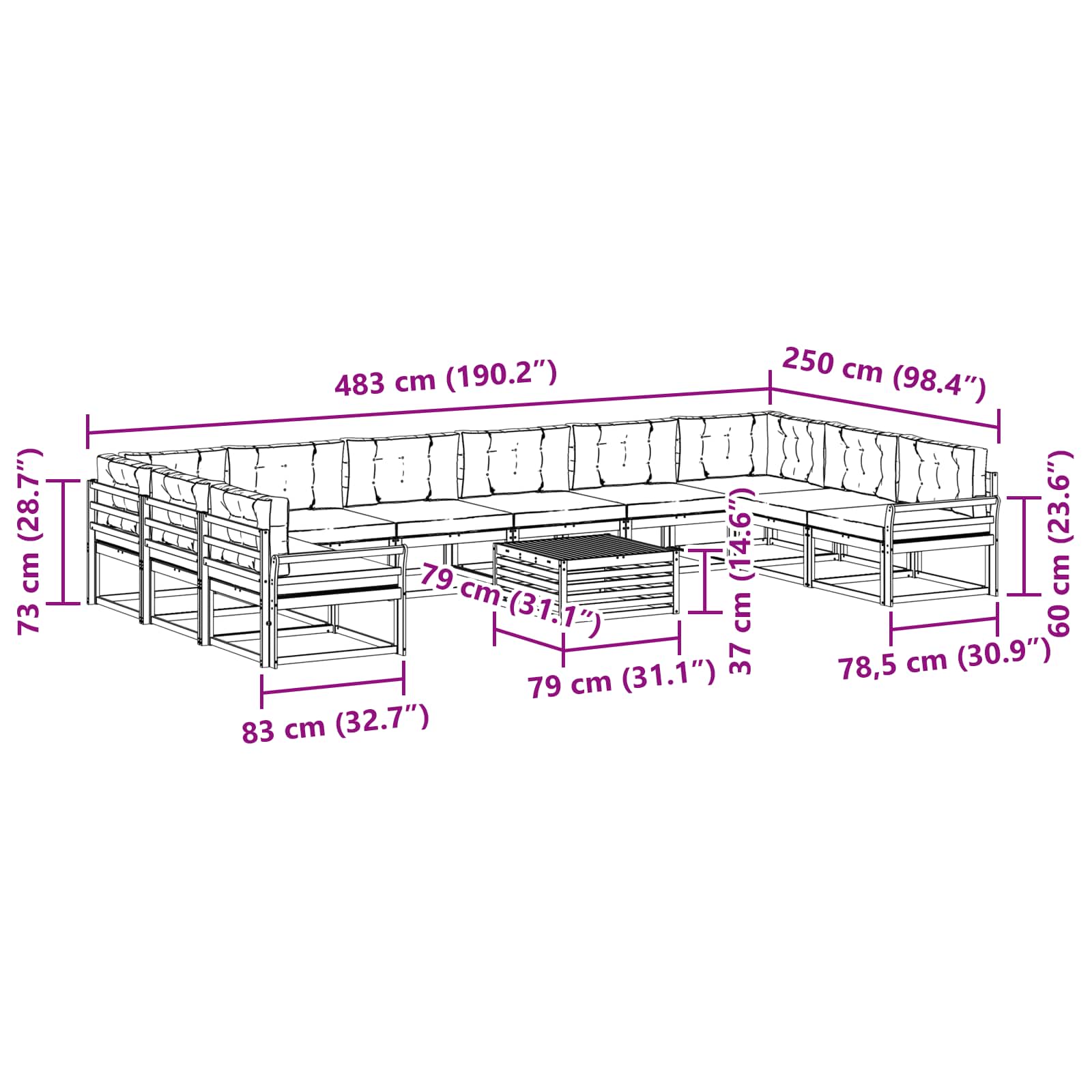 - 8 x Mittelsofa: 79 x 83 x 73 cm (LxBxH)