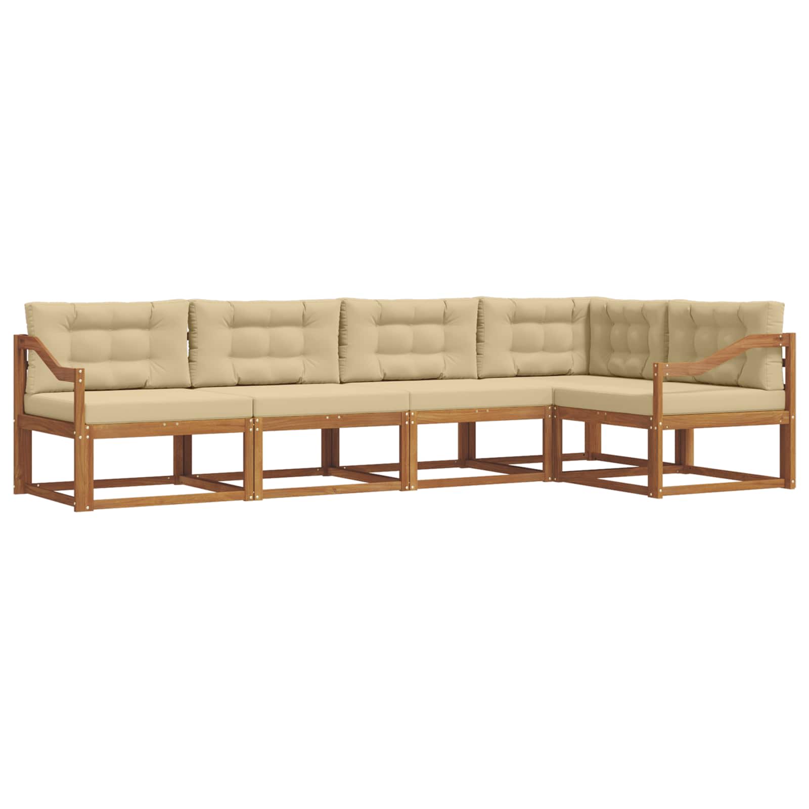Dieses Outdoor-Sofa-Set bringt schickes Design und optimale Funktionalität zusammen und macht deinen Garten, deine Terrasse oder jeden Außenbereich zum perfekten Ort zum Entspannen und Feiern. Saubere Linien und minimaler Schnickschnack prägen seinen modernen Look, der ideal für sonnige Morgen oder gemütliche Nächte ist. Der natürliche Braunton fügt sich total gut in verschiedene Umgebungen ein und sorgt für eine coole Optik, die deine Gäste einlädt, sich richtig zu entspannen. Premium Akazienkonstruktion Das hochwertige, massive Akazienholz sorgt für eine super Leistung und viel Langlebigkeit, damit dein Außenbereich immer einladend und stylish bleibt. Die stabile Bauweise ist zuverlässig, auch bei wechselhaftem Wetter. Lattenrücken-Design Genieß den Komfort des durchdachten Lattenrücken-Styles, der Eleganz und Praktikabilität vereint. Die clever platzierten Latten geben guten Halt und sorgen dafür, dass das Sitzen auch bei warmem Wetter angenehm ist. Funktionale Armlehnen Praktische Armlehnen aus massivem Akazienholz geben diesem Set zusätzlichen Komfort und Halt und machen das Entspannen noch besser. Die stabilen Armlehnen sind ergonomisch gestaltet, um dich beim Lesen oder Quatschen zu unterstützen. Modulare Flexibilität Dank seines modularen Designs kann das Sofa-Set easy an verschiedene Anordnungen und Raumanforderungen angepasst werden. Stell die Teile nach Bedarf um, um verschiedene soziale Szenarien abzudecken, von intimen Gesprächen bis zu fröhlichen Feiern. Umfassende Pflege Halte das Set sauber, indem du es mit einem feuchten Tuch abwischst. Schütze es vor direkter Sonne und benutze eine Abdeckung, wenn es nicht gebraucht wird, um die Lebensdauer zu verlängern und sicherzustellen, dass dieses schicke Stück über Jahre der Mittelpunkt deines Außenbereichs bleibt.