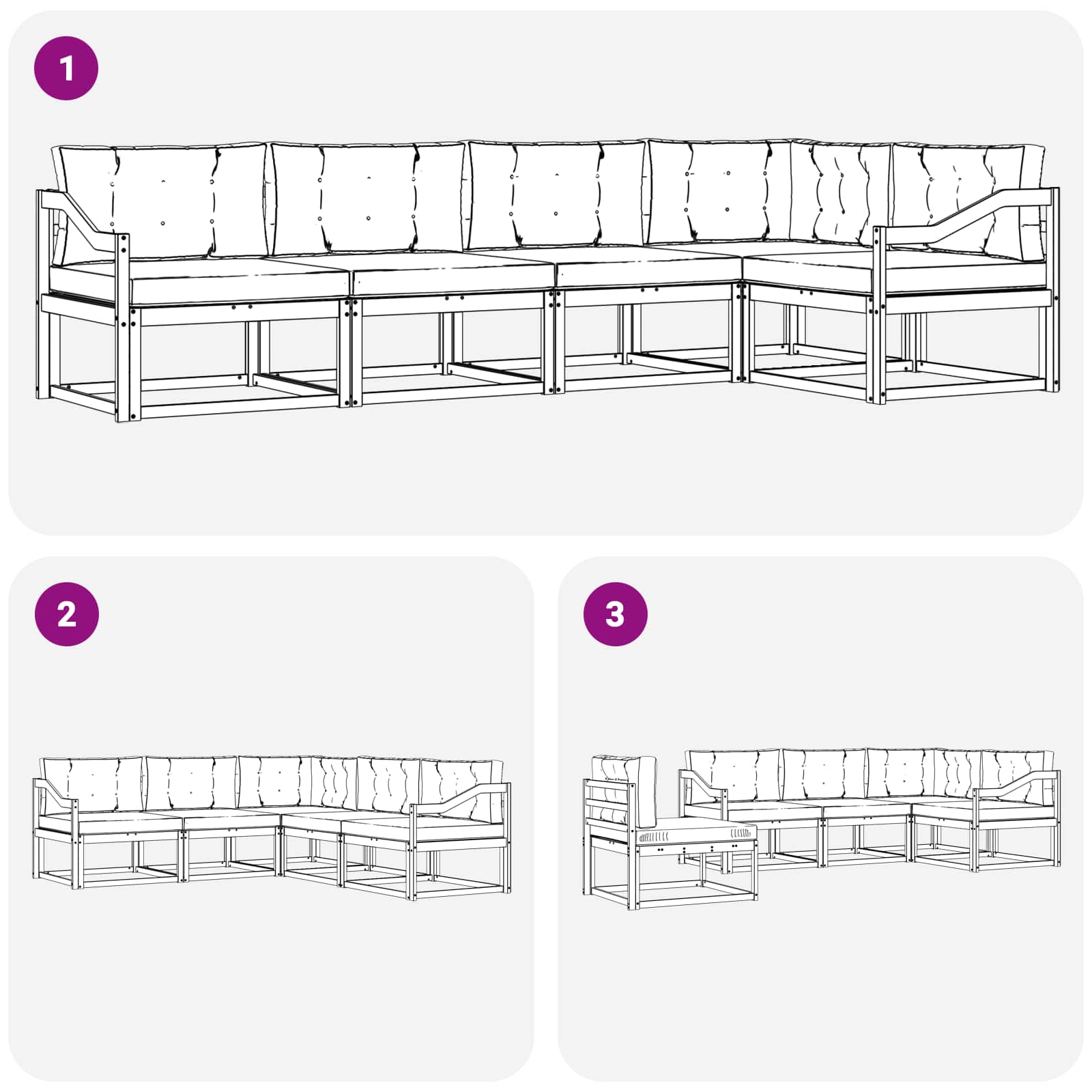 - 5 x Sitzkissen: 80 x 80 x 8 cm (LxBxH)