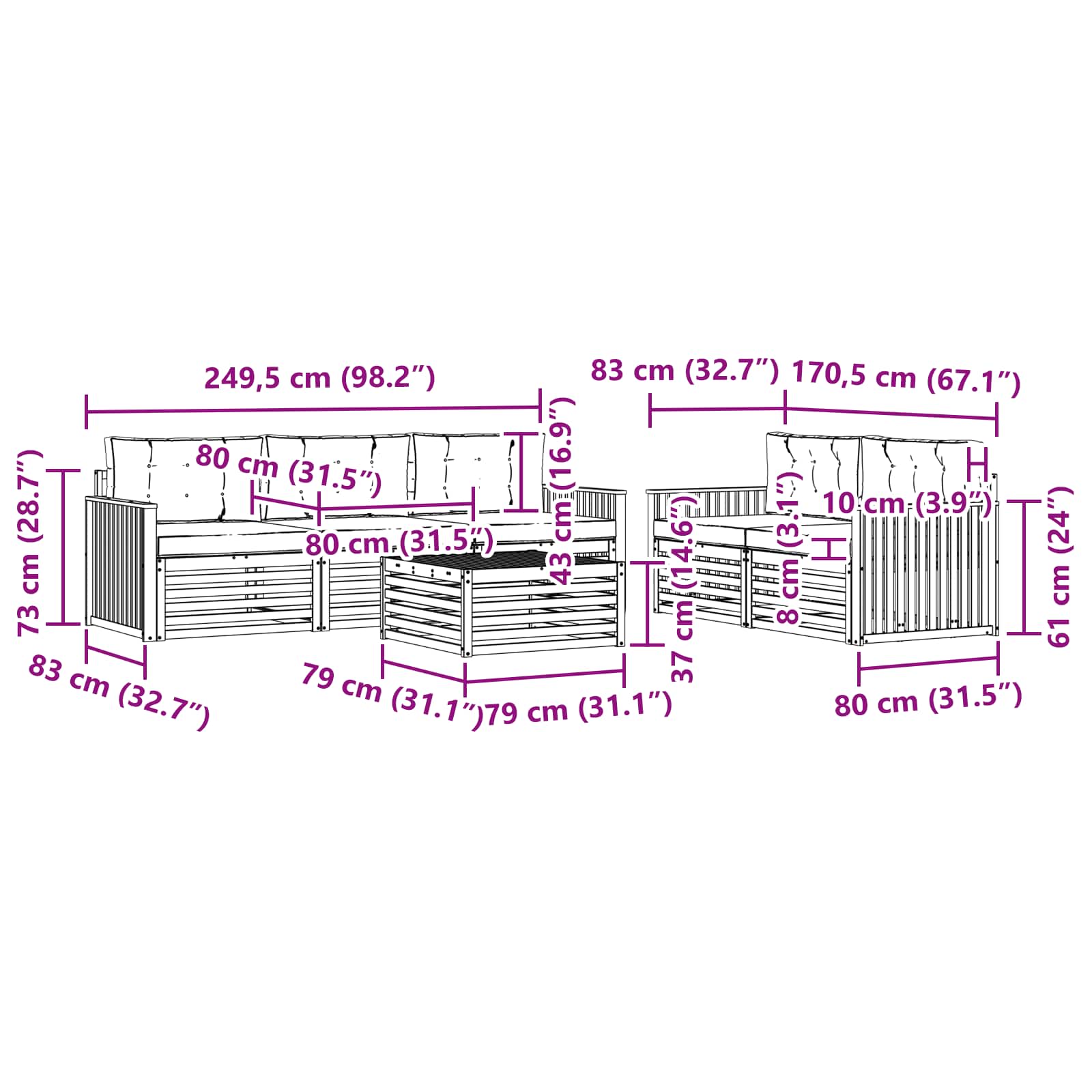 - 5 x Sitzkissen: 80 x 80 x 8 cm (LxBxH)