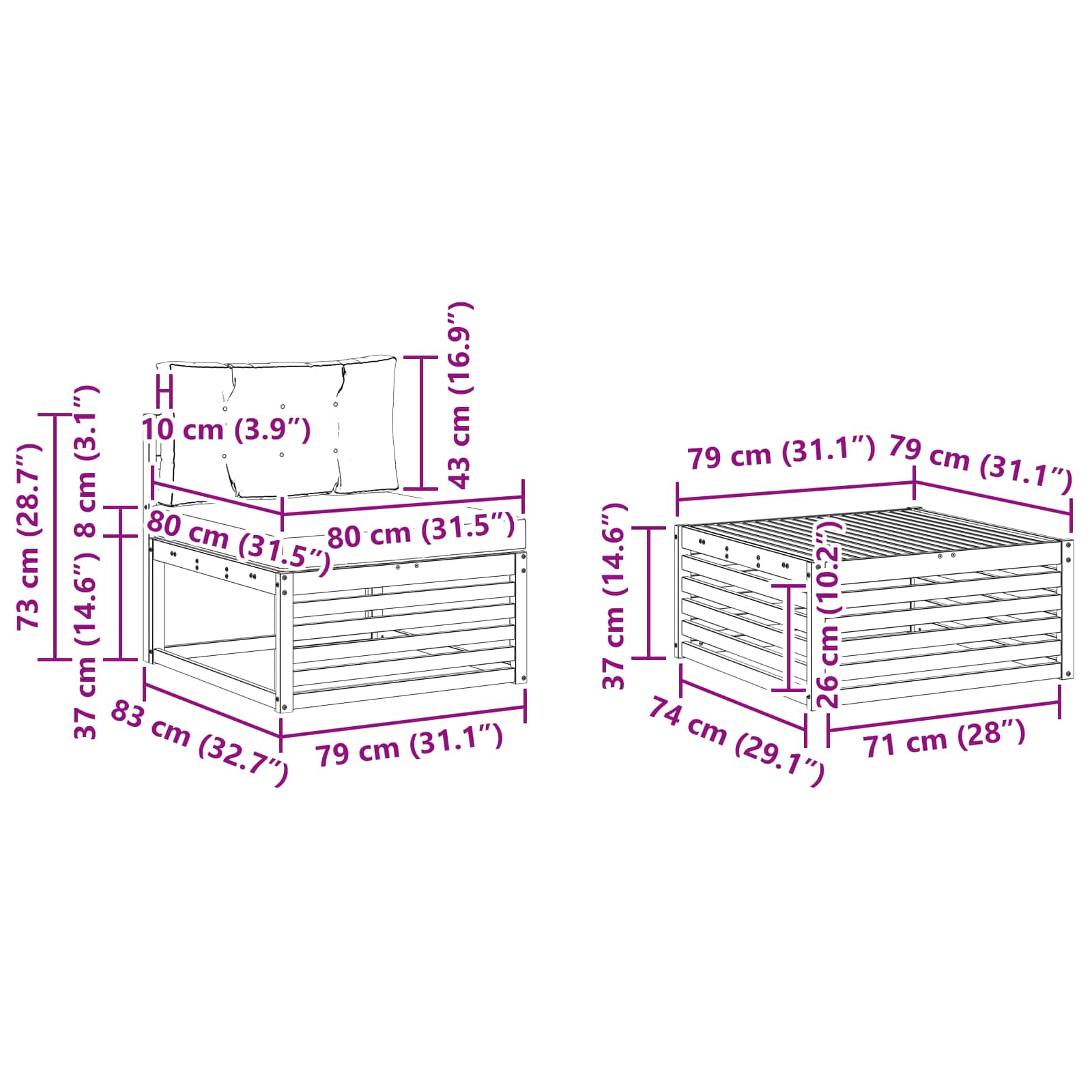 - Gesamtabmessungen: 79 x 79 x 37 cm (L x B x H)