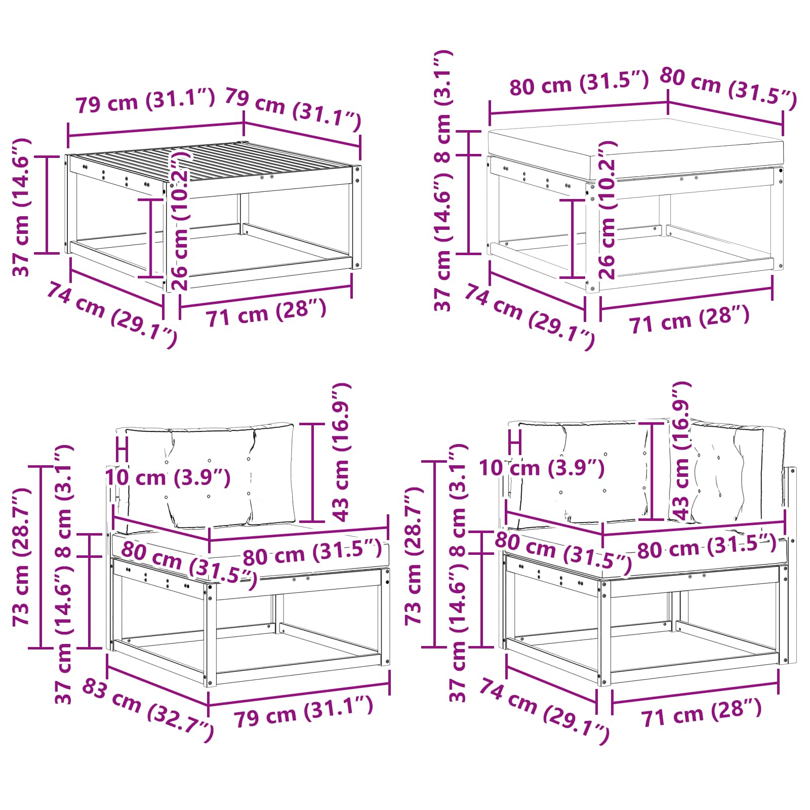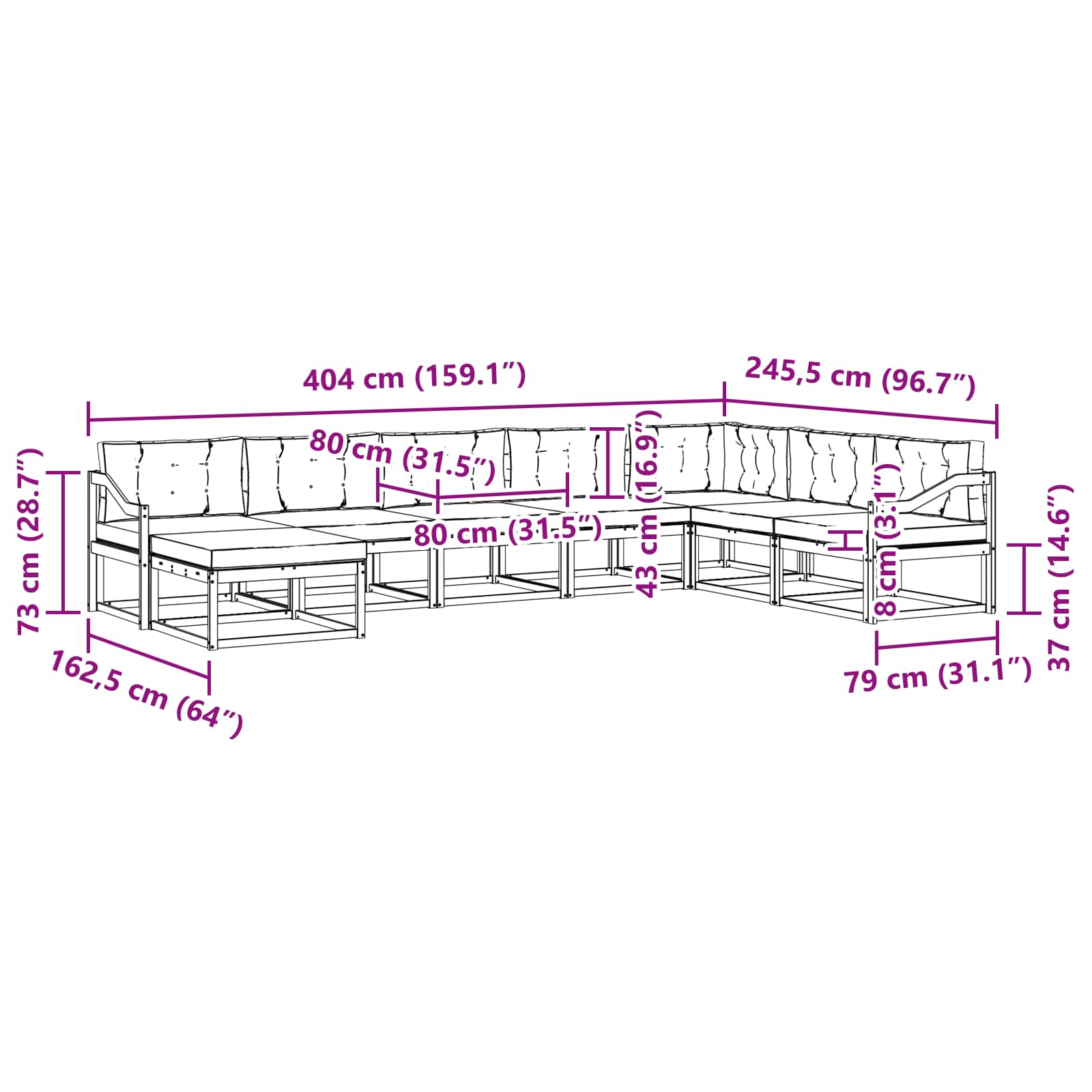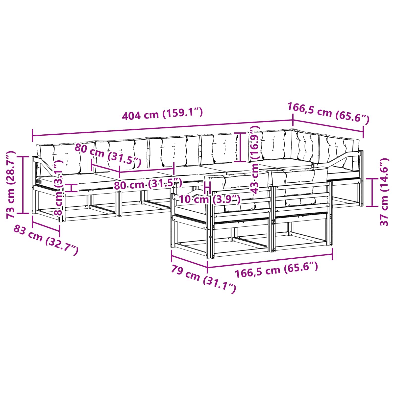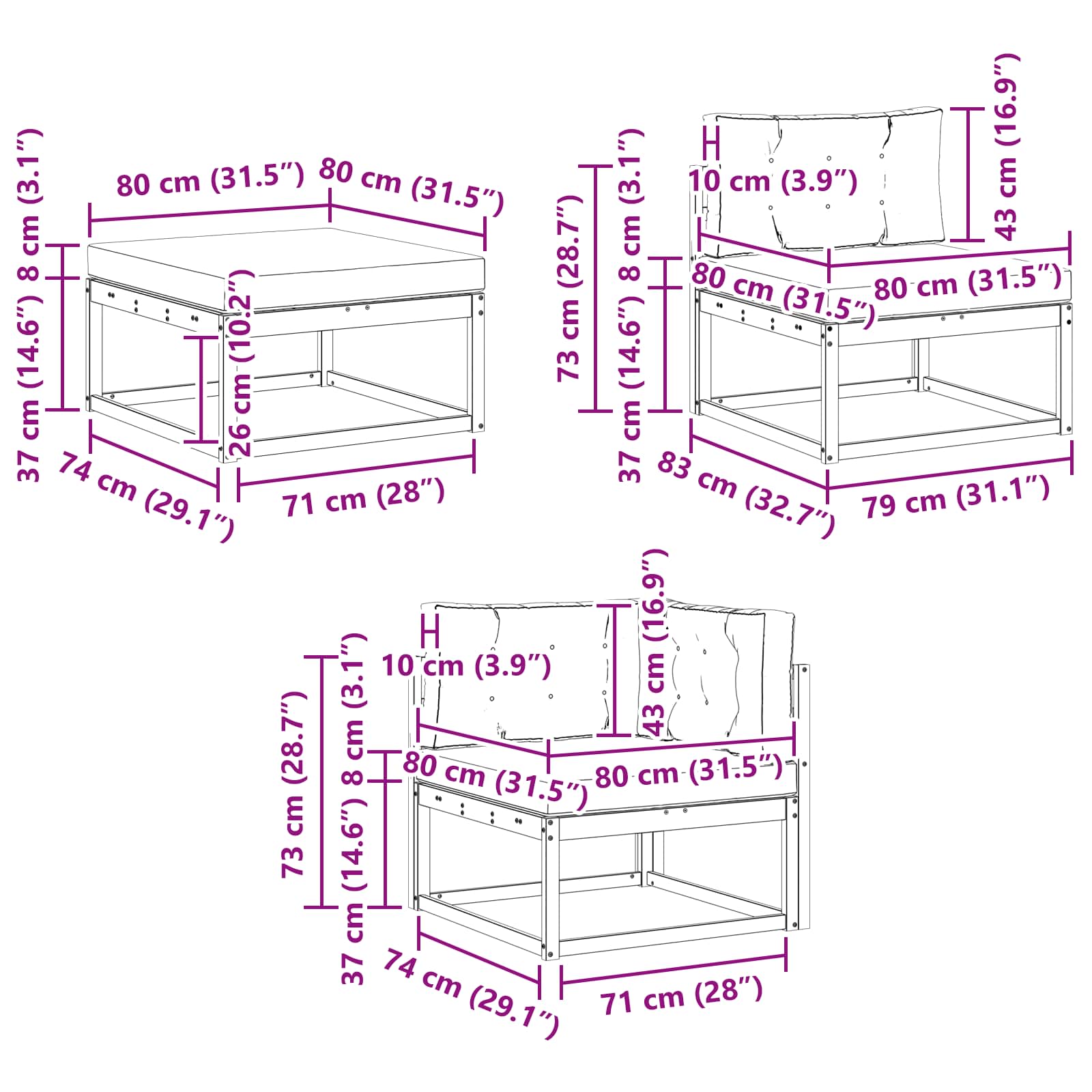 - 8 x Sitzkissen: 80 x 80 x 8 cm (LxBxH)