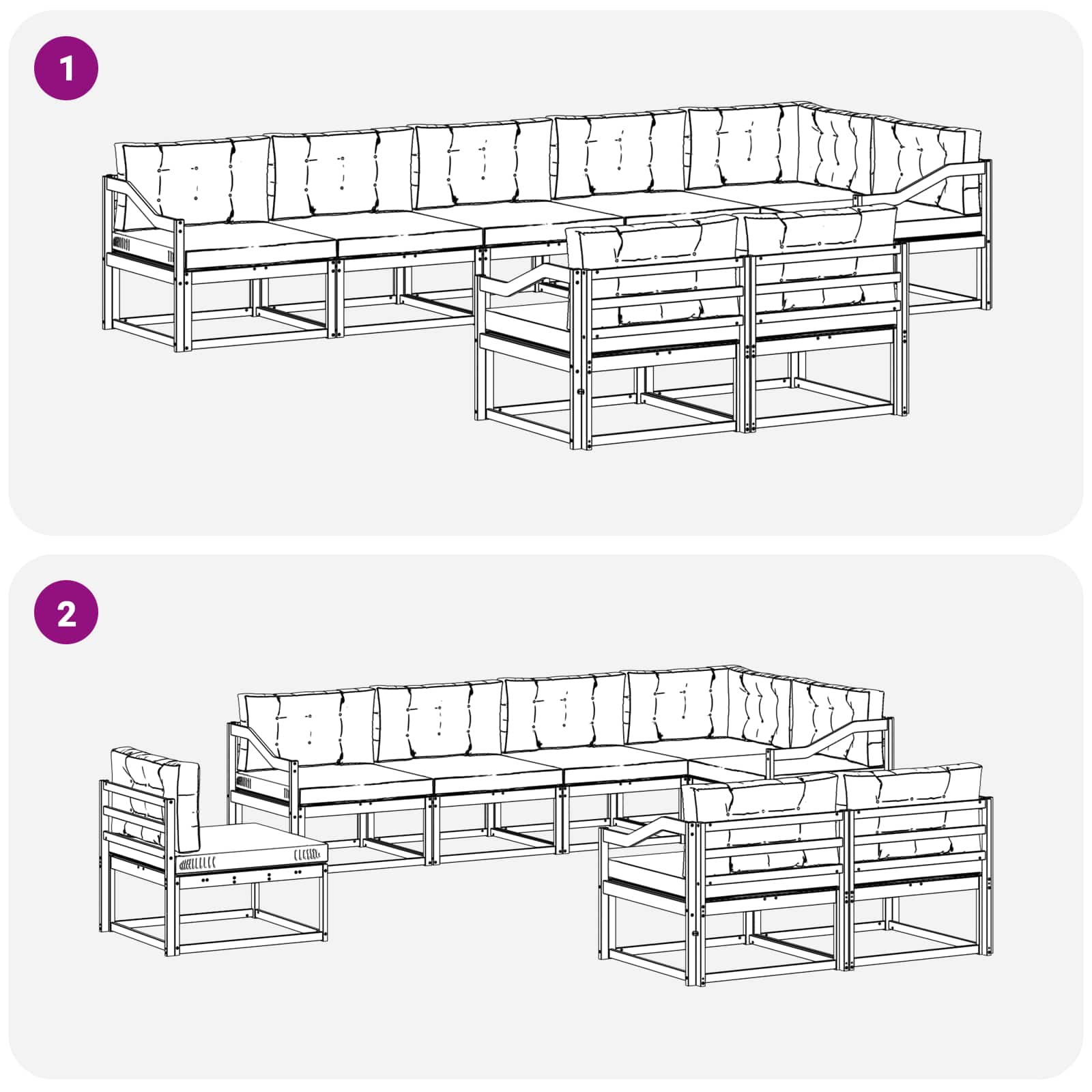 Dieses modulare Outdoor-Sofa-Set ist das perfekte Beispiel für modernes Design. Mit klaren Linien und praktischem Aufbau wertet es jeden Außenbereich auf. Das schicke Design in Kombination mit der Modularität bietet unendlich viele Aufstellmöglichkeiten, die sowohl stilvoll als auch flexibel sind. Ob beim Essen im Freien oder beim Relaxen am Pool – dieses Sofa-Set sorgt immer für ein komfortables und elegantes Erlebnis. Hochwertiges massives Akazienholz: Das Sofa-Set ist aus solidem Akazienholz gefertigt, das für seine Langlebigkeit und die schöne dunkelbraune Farbe bekannt ist. So bleibt das Set wetterfest und behält über die Jahre sein gutes Aussehen und seine Stabilität. Perfekt für Gärten, denn die natürliche Optik des Holzes fügt sich super in jede Umgebung ein und bringt Ästhetik und Funktionalität zusammen. Lattenrücken und Armlehnen: Mit dem Lattenrücken bleiben Sie an heißen Tagen kühl. Die stützenden Rückenlehnen und bequemen Armlehnen laden zum Entspannen ein. Diese durchdachten Details machen das Set noch luxuriöser und zur idealen Wahl für längere Entspannung. Genießen Sie relaxte Momente in diesem ergonomischen Sitzbereich. Modularität: Das modulare Design gibt dir die Freiheit, das Set je nach Bedarf neu anzuordnen. Ob für verschiedene Anlässe oder unterschiedliche Wetterbedingungen, du kannst die Sitzmöglichkeiten ganz flexibel anpassen. So passt es sich jedem Raum an und bleibt dabei stilvoll und komfortabel. Pflegeleicht: Die Pflege des Sets ist spielend einfach. Wisch einfach die Holzoberflächen mit einem feuchten Tuch ab und vermeide direkte Sonneneinstrahlung. In der Nebensaison oder bei schlechtem Wetter helfen Schutzhüllen, damit du das Set top erhalten bleibst und es lange schön aussieht. Breite Anwendung: Ideal für Gärten, Terrassen, Hinterhöfe und Poolbereiche – dieses modulare Set passt super in jede Umgebung. Das moderne Design ergänzt alle Außenbereiche und sorgt sowohl bei geselligen Treffen als auch bei ruhigen Momenten für eine angenehme Atmosphäre. Es ist die perfekte Wahl für Hausbesitzer und Gastronomiebetriebe!