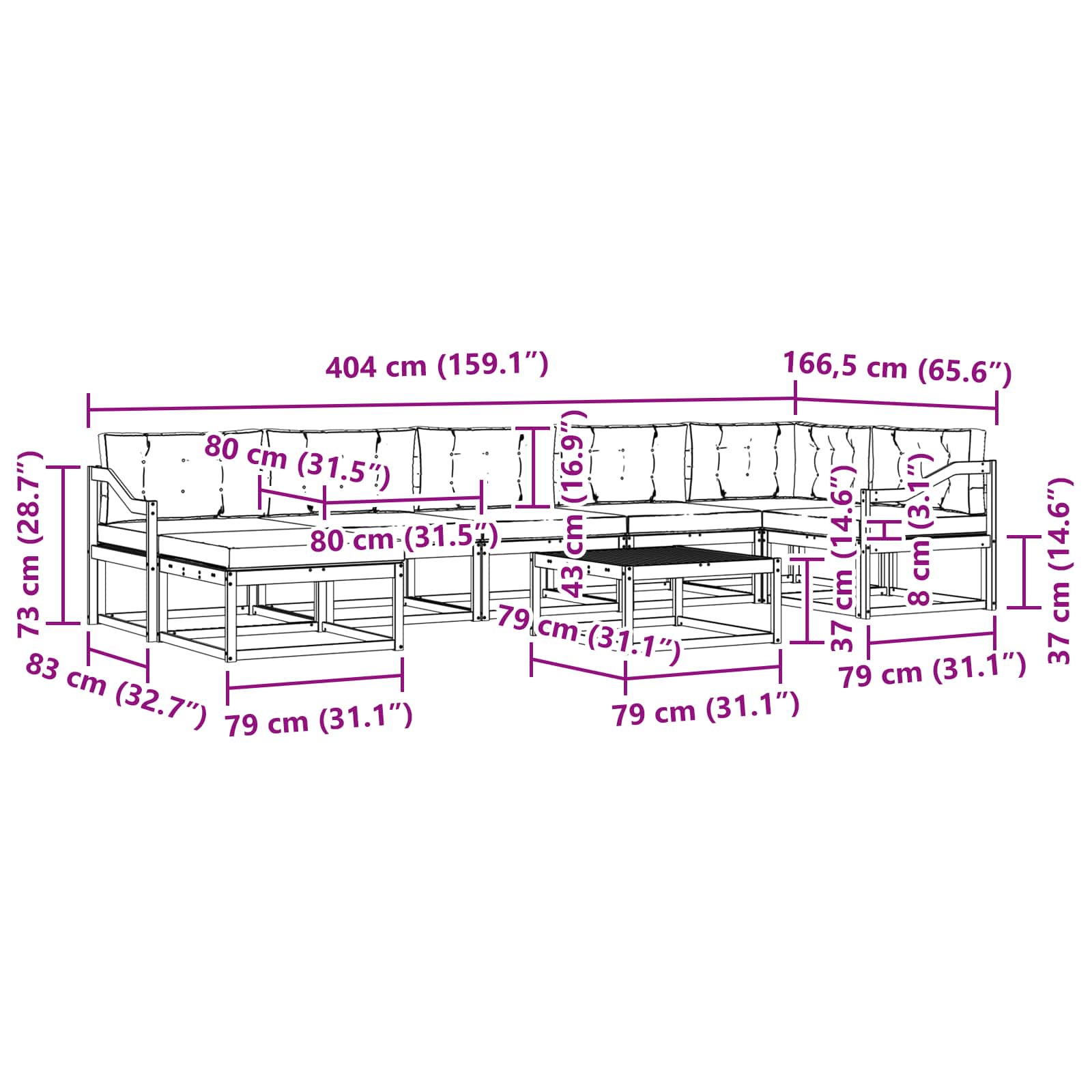 - 9 x Rückenkissen: 80 x 43 x 10 cm (LxBxH)