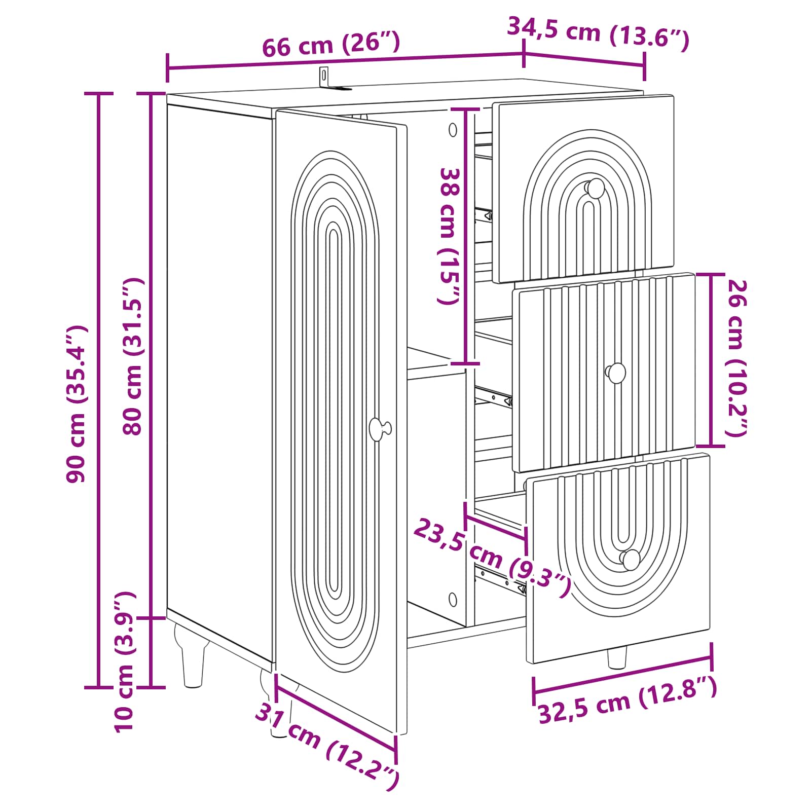 - Gesamtmaße: 66 x 34,5 x 90 cm (L x B x H)