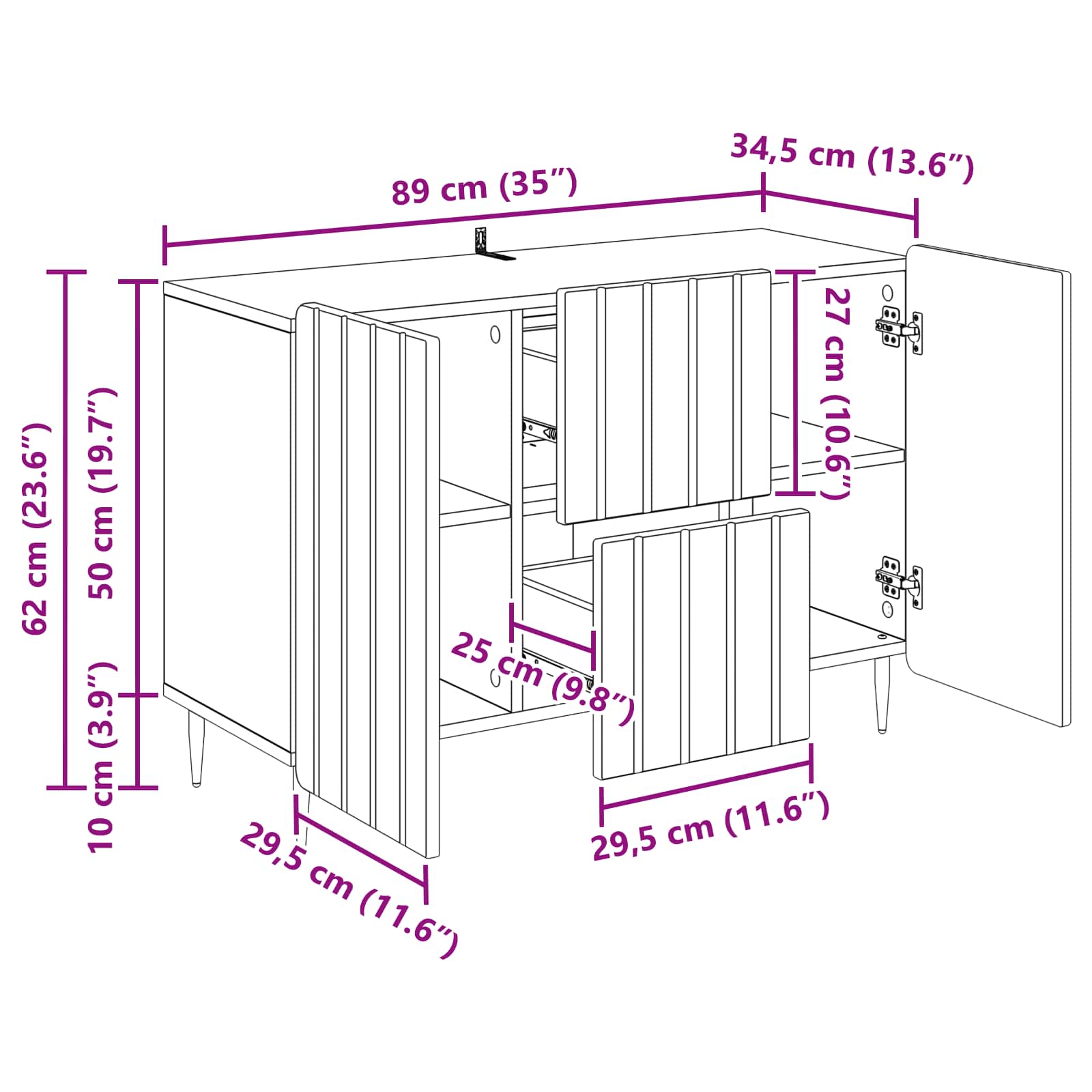 - Gesamtmaße: 89 x 34,5 x 62 cm (L x B x H)