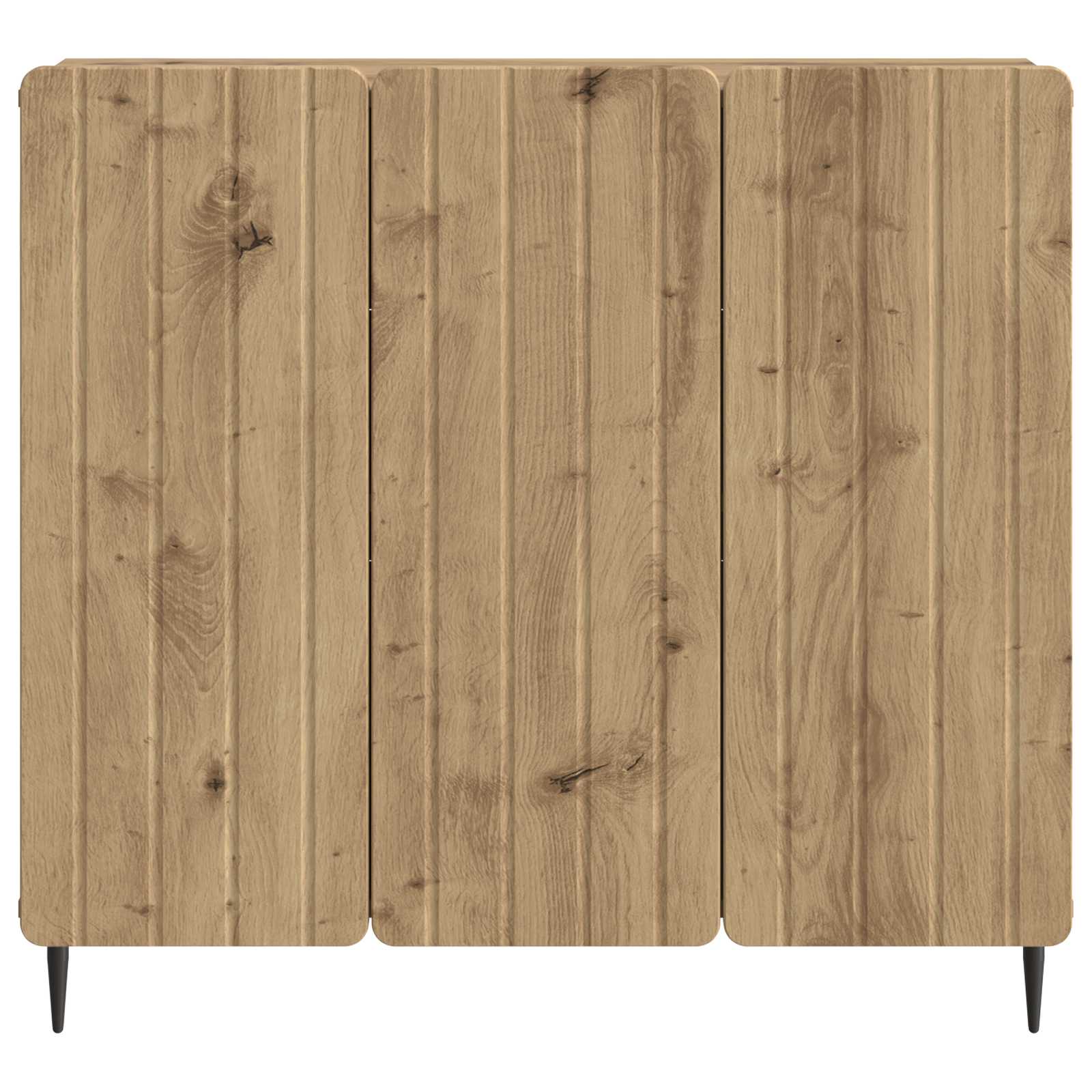 Dieses moderne Sideboard bringt einen coolen und funktionalen Stauraum in moderne Wohnungen. Es wurde für das Wohnzimmer oder den Essbereich entworfen und überzeugt mit seiner schlanken rechteckigen Form und den klaren Linien, die zu verschiedenen Einrichtungsstilen passen. Der Holzwerkstoff macht das Sideboard robust und zuverlässig – perfekt für alle, die eine Mischung aus Ästhetik und Zweckmäßigkeit suchen. Stell dir vor, wie du mit diesem Möbelstück deine dekorativen Sachen präsentierst oder z.B. Alltägliches cool und bequem aufbewahrst. Materialien: Aus Holzwerkstoff, der für seine Festigkeit bekannt ist. Dies garantiert, dass das Sideboard langlebig ist und elegant bleibt, auch mit dem täglichen Gebrauch. Die subtile Textur ergänzt das moderne Design, ohne den Raum zu überladen. Enthaltene Komponenten: Mit Regalen und 90°-Pendeltüren hast du einfachen Zugang und kannst deine Sachen gut organisieren. Die Stahlbeine sorgen für Stabilität und bringen einen coolen industriellen Look. Funktionen/Funktionalität/Design: Es bietet genug Stauraum für Geschirr, Bücher oder Elektronik, sodass alles verstaut aber leicht zugänglich ist. Das vielseitige Design passt in legere und formelle Bereiche und verbessert die Funktionalität sowie die Optik deines Zimmers. Empfohlene Verwendung: Ideal für Wohnzimmer und Essbereiche, perfekt für alle, die auf Stil und Platzoptimierung wertlegen. Die Maße passen super in kompakte Räume und werten jedes Zimmer auf, ohne es zu überfrachten. Pflege und Wartung: Halte die Oberfläche einfach sauber, indem du sie mit einem feuchten Tuch abwischst. So bleibt es makellos und langlebig – eine wertvolle Ergänzung für dein Zuhause.