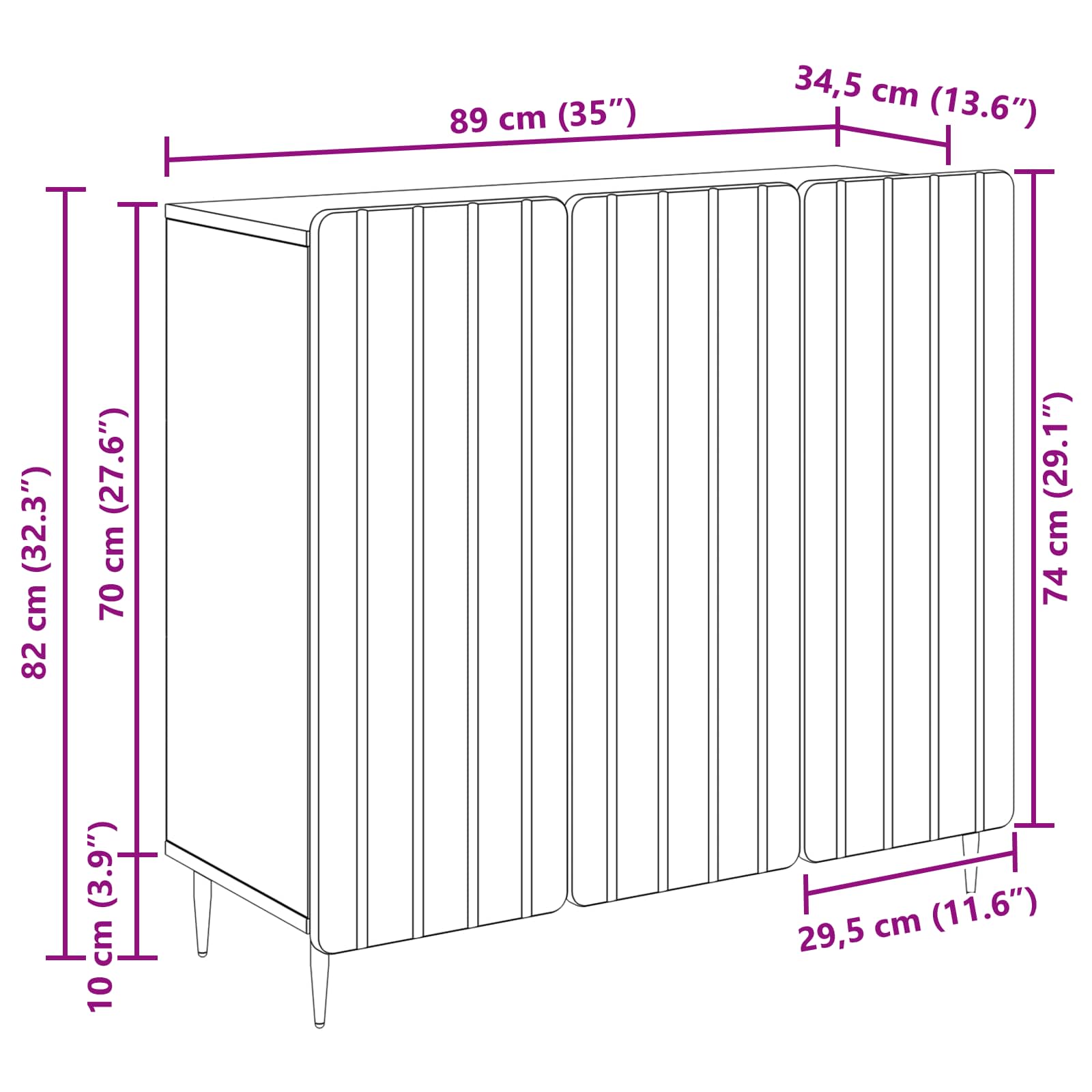 - Gesamtmaße: 89 x 34,5 x 82 cm (L x B x H)