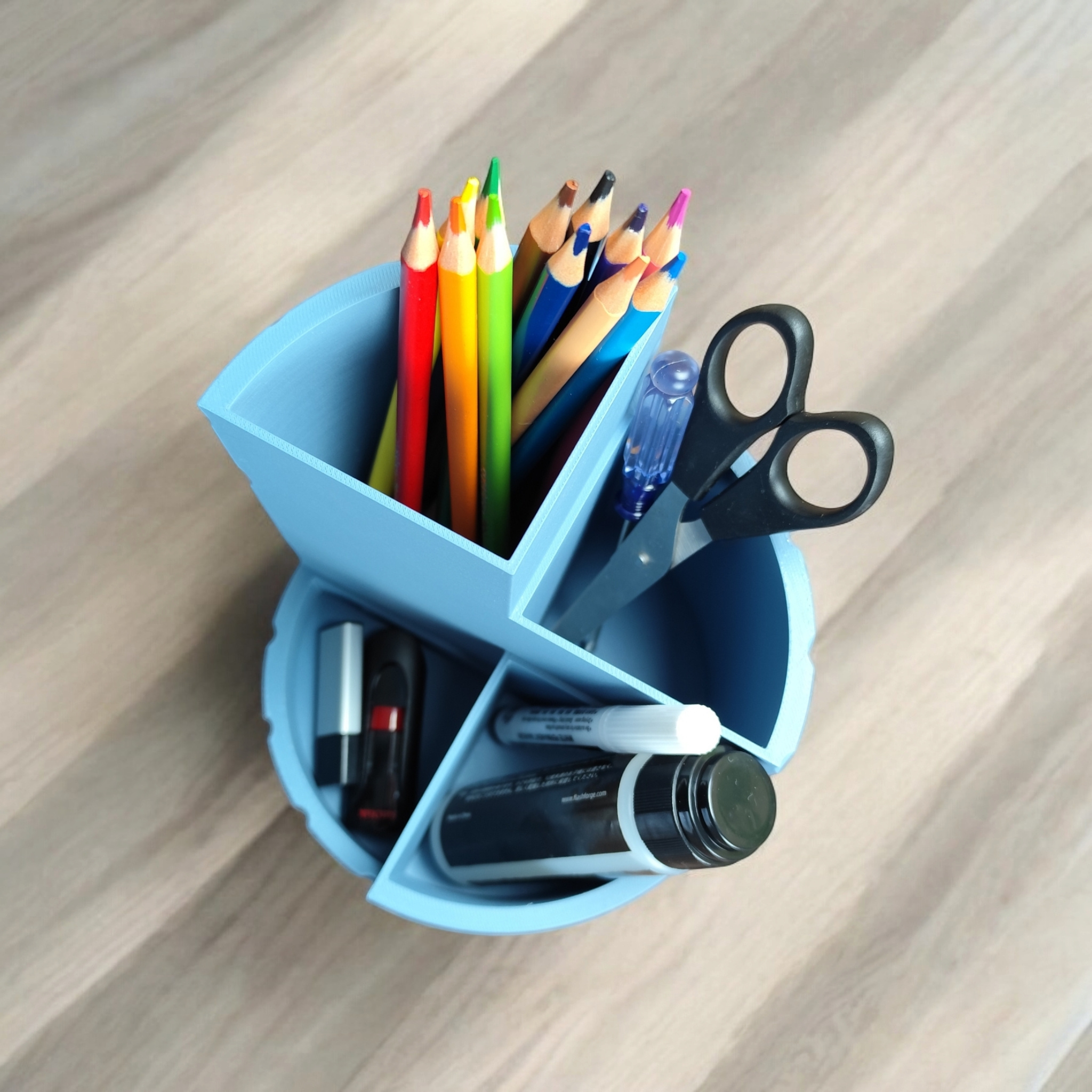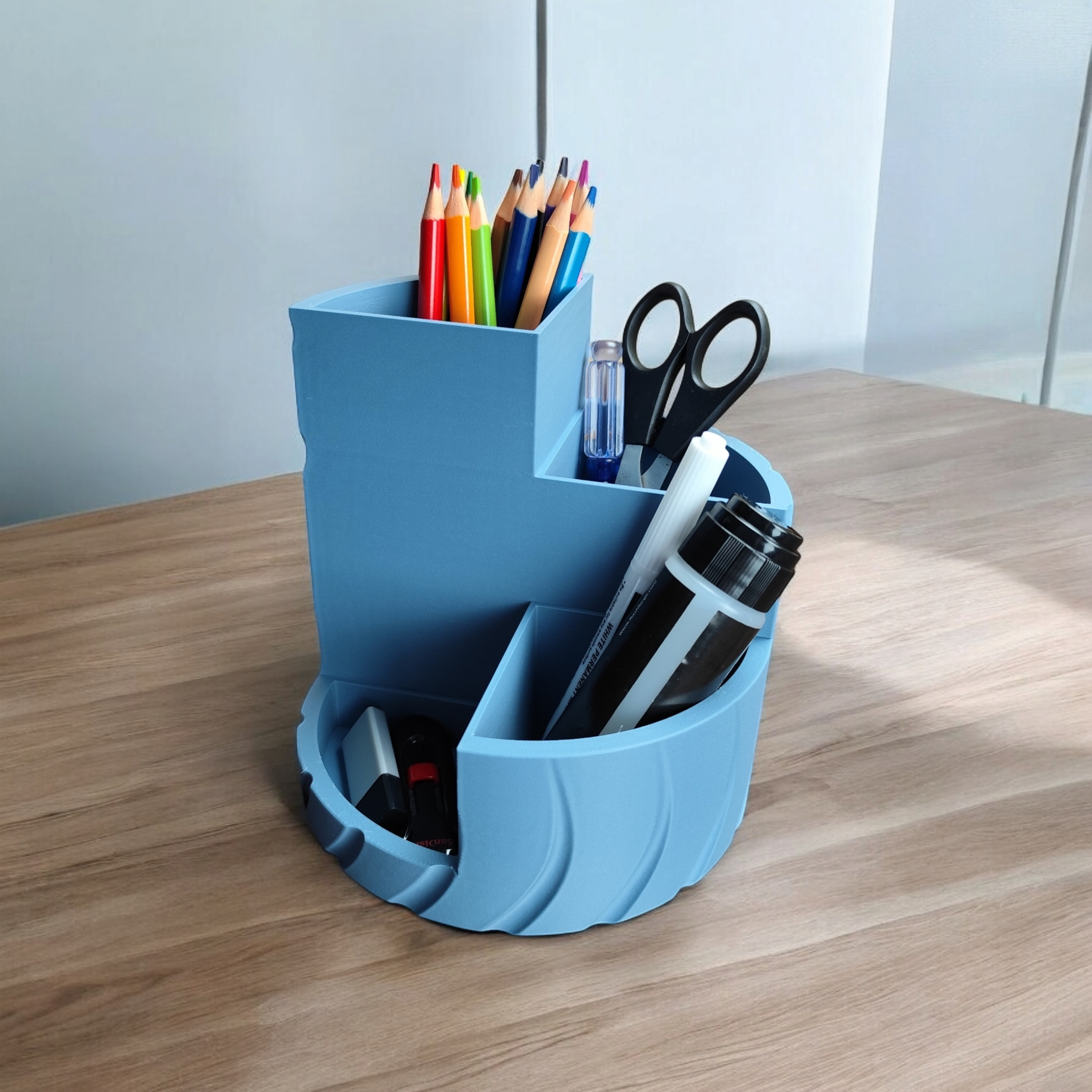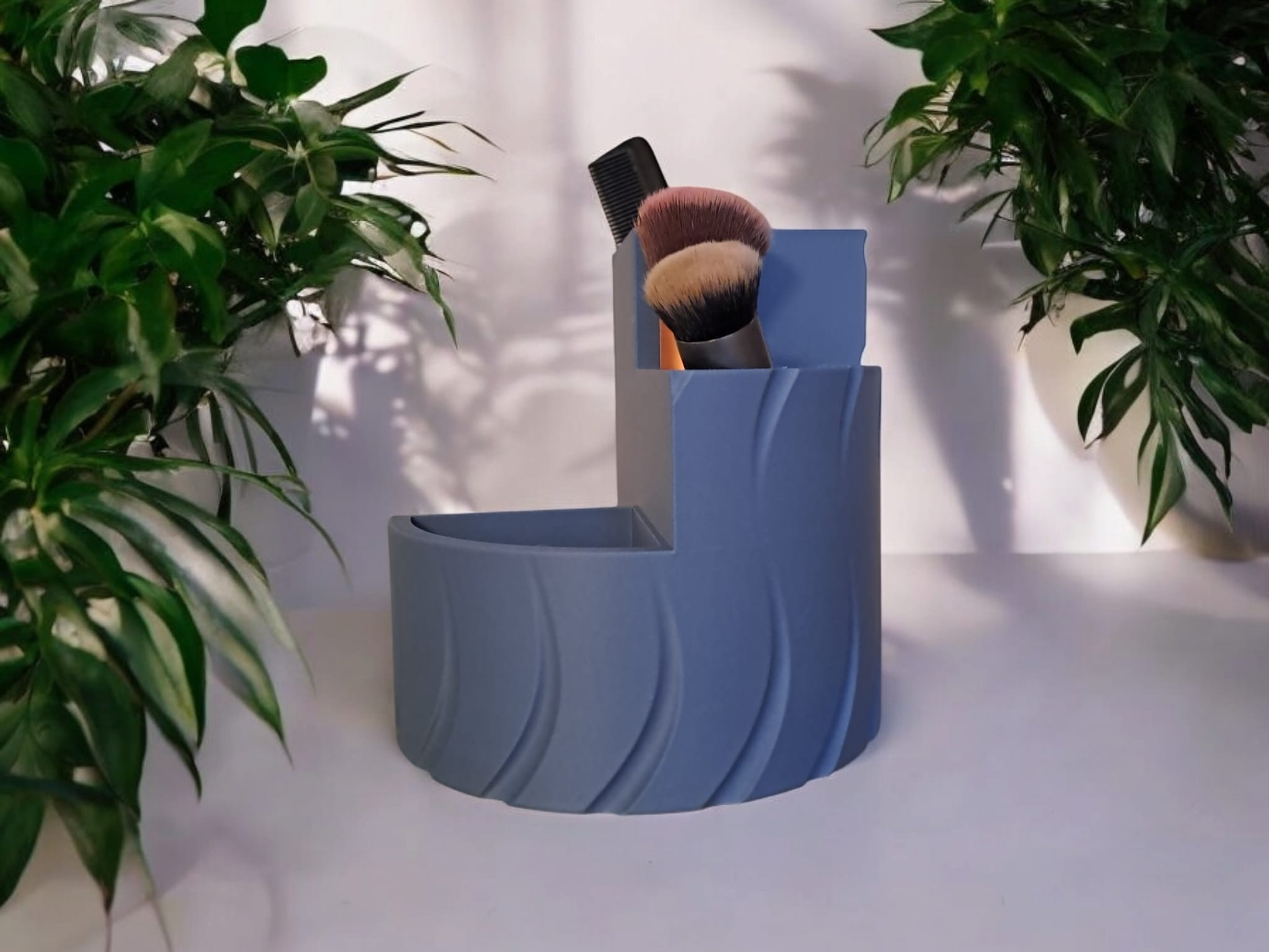 Praktischer und vielseitiger Organizer im modernen Look. Der Wavy Mehrzweck-Organizer wurde 3D gedruckt und bietet auf kleinem Raum eine ordentliche Ablage für Alltagsgegenstände. Mit einem kompakten Fußabdruck von 140 x 140 mm passt er auf die meisten Schreibtische, Ablagen und Fensterbänke, ohne viel Platz zu beanspruchen.
