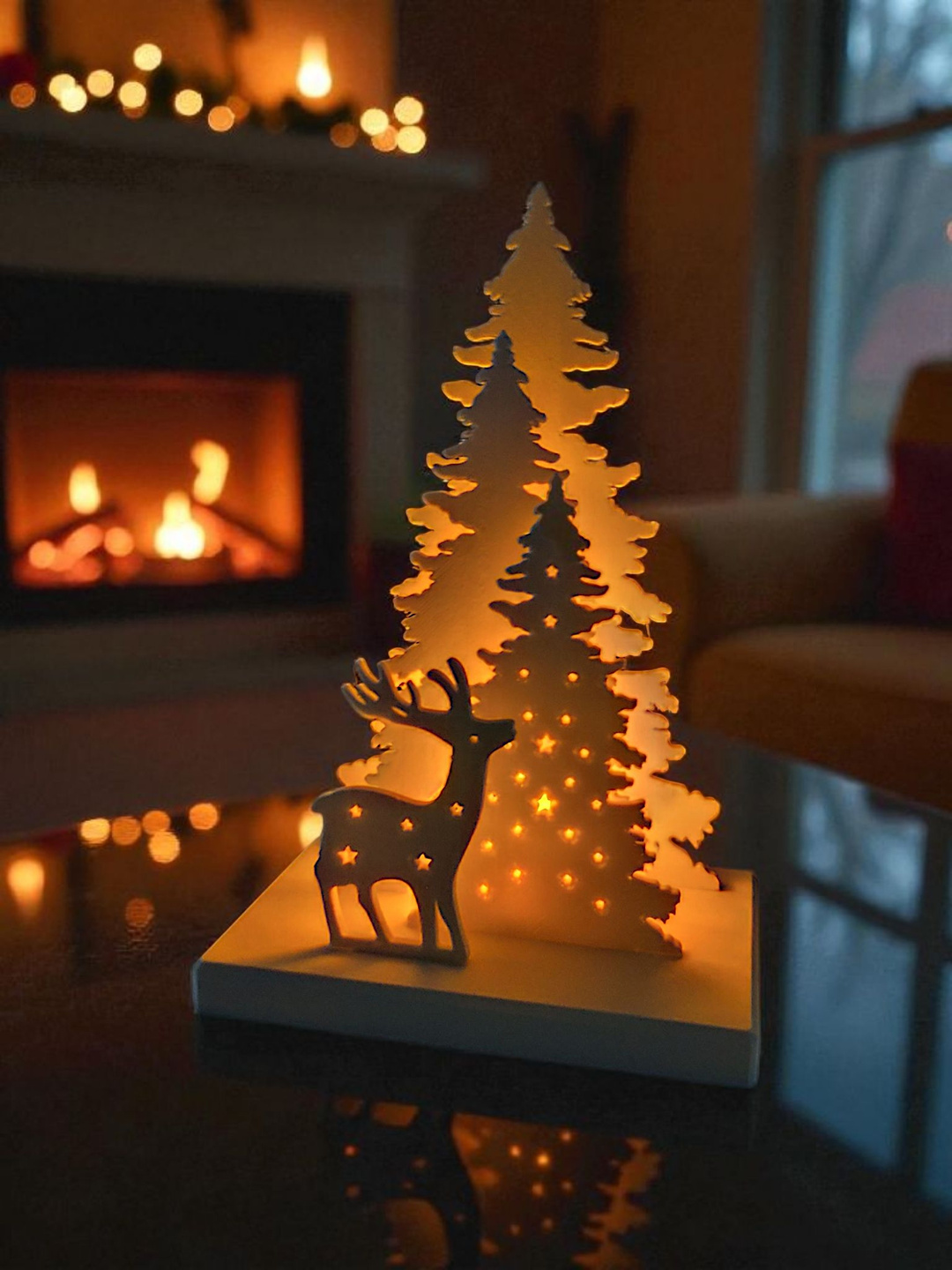 Stimmungsvolle Weihnachtsdekoration im handlichen Format: Diese 3D-gedruckte Szene bringt warmes Licht und weihnachtliche Atmosphäre in Ihr Zuhause. Auf der Rückseite befindet sich ein Halter für ein kleines batteriebetriebenes LED-Teelicht, das die Szene dezent von hinten beleuchtet (LED-Teelicht nicht im Lieferumfang). Die angegebenen Maße beziehen sich auf das zusammengesetzte Produkt: ca. 200 × 125 × 80 mm (Breite × Tiefe × Höhe). Gedruckt wurde das Objekt in PLA (weiß) — die Farbe entspricht den Produktbildern. PLA ist ein leichtes Kunststoffmaterial; bitte vor direkter Sonneneinstrahlung und Dauerhitze schützen, da PLA unter Hitze erweichen kann. Hinweis zur Fertigung: Es handelt sich um einen FDM 3D-Druck; dadurch können feine Schichtlinien, kleine Unebenheiten oder leichte Druckspuren sichtbar sein. Solche typischen Druckmerkmale sind kein Reklamationsgrund. Durch die dezente Beleuchtung eignet sich die Dekoration ideal für Fensterbänke, Regale oder als Tischdekoration in der Adventszeit.